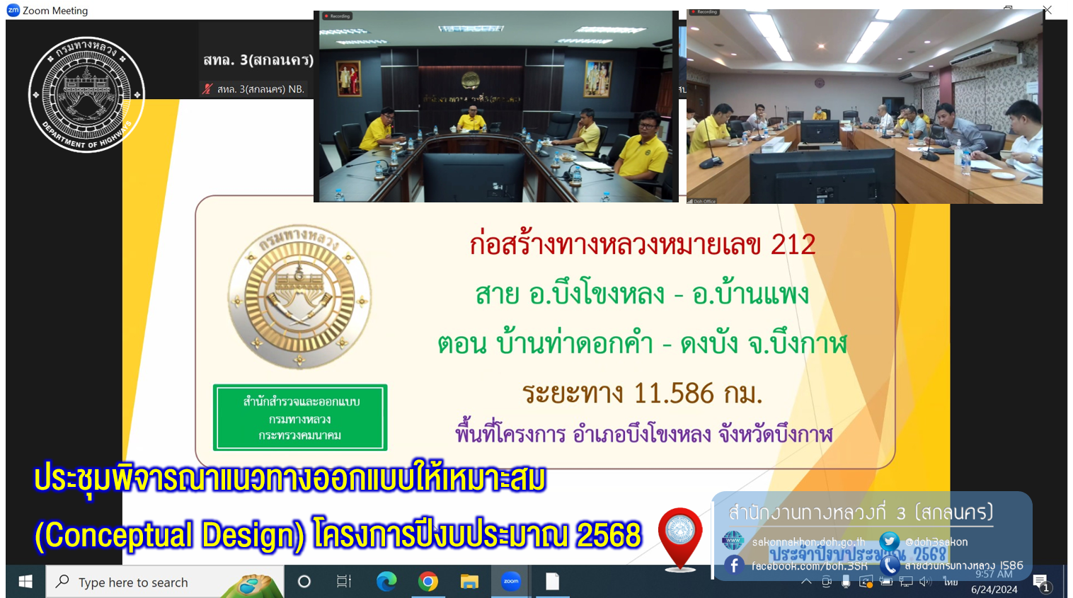 ประชุมพิจารณาแนวทางออกแบบให้เหมาะสม (Conceptual Design) โครงการปีงบประมาณ 2568 ทล. 212 สาย อ.บึงโขงหลง-อ.บ้านแพง ตอน บ้านท่าดอกคำ-ดงบัง ระหว่าง กม.197+446 - กม.209+032