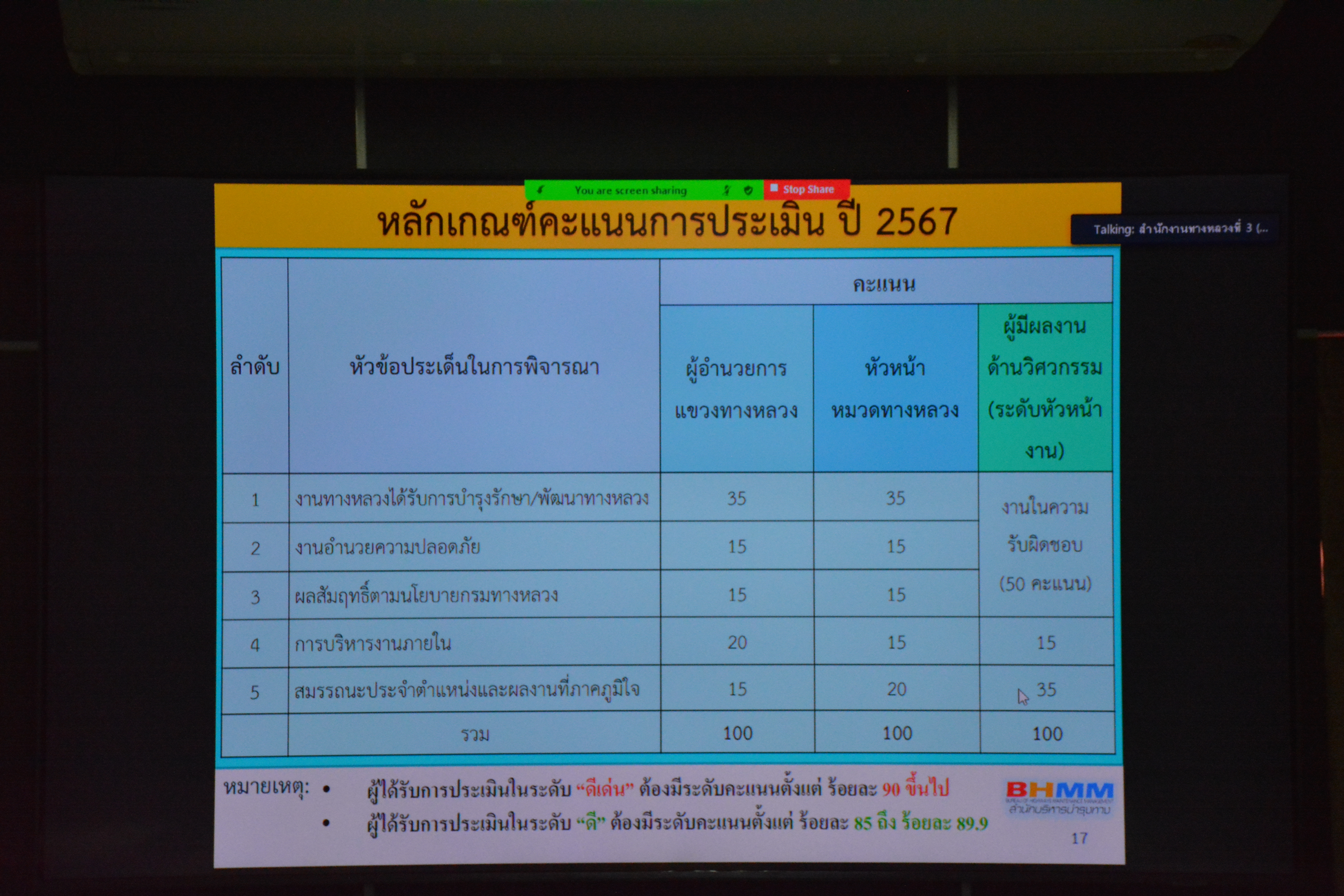 ประชุมคณะกรรมการประเมินผลงานบำรุงทาง งานอำนวยความปลอดภัย ประจำปี 2567 สำนักงานทางหลวงที่ 3 (สกลนคร) ครั้งที่ 1/2567