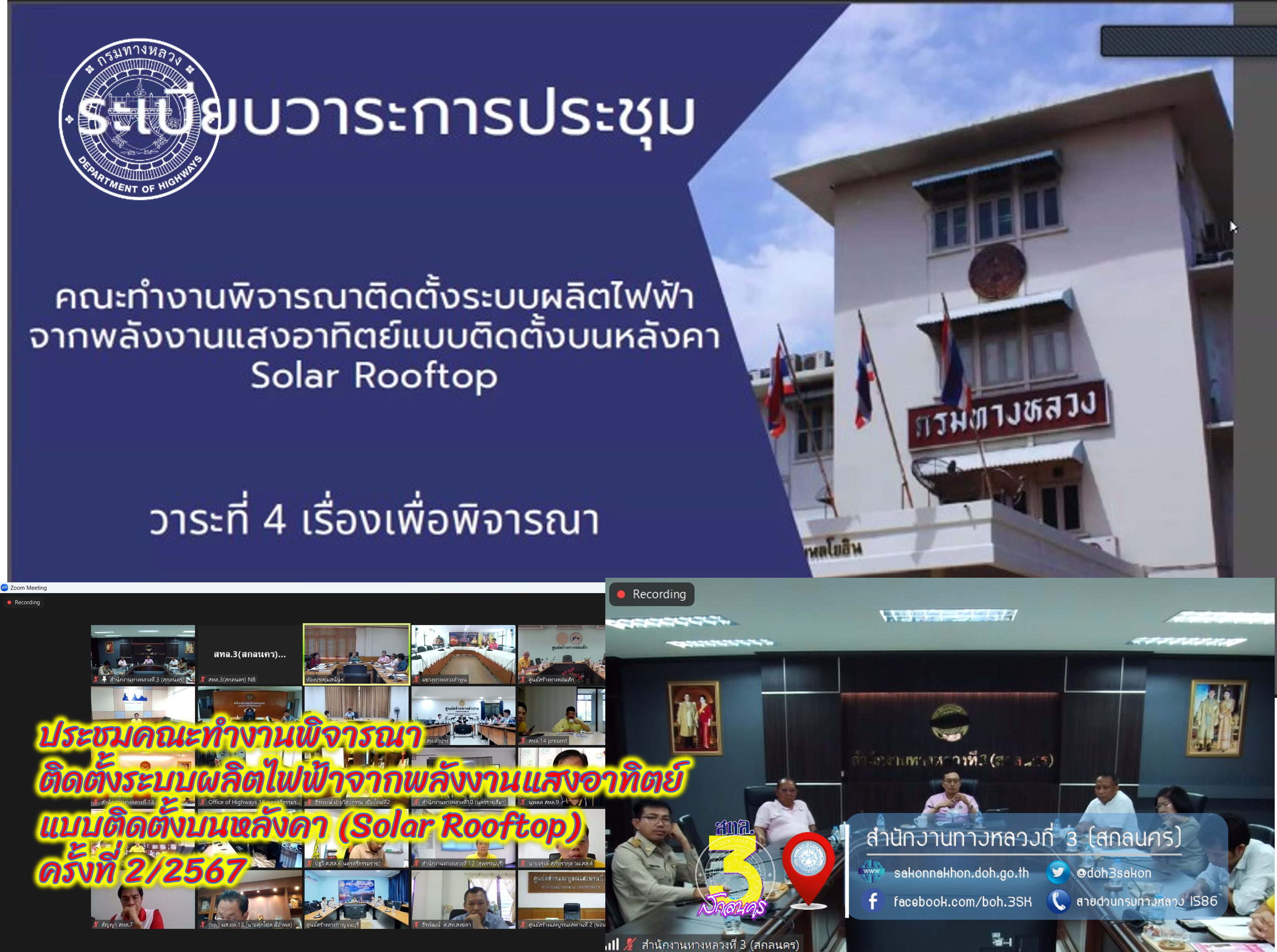 ประชุมคณะทำงานพิจารณาติดตั้งระบบผลิตไฟฟ้าจากพลังงานแสงอาทิตย์แบบติดตั้งบนหลังคา (Solar Rooftop) ครั้งที่ 2/2567