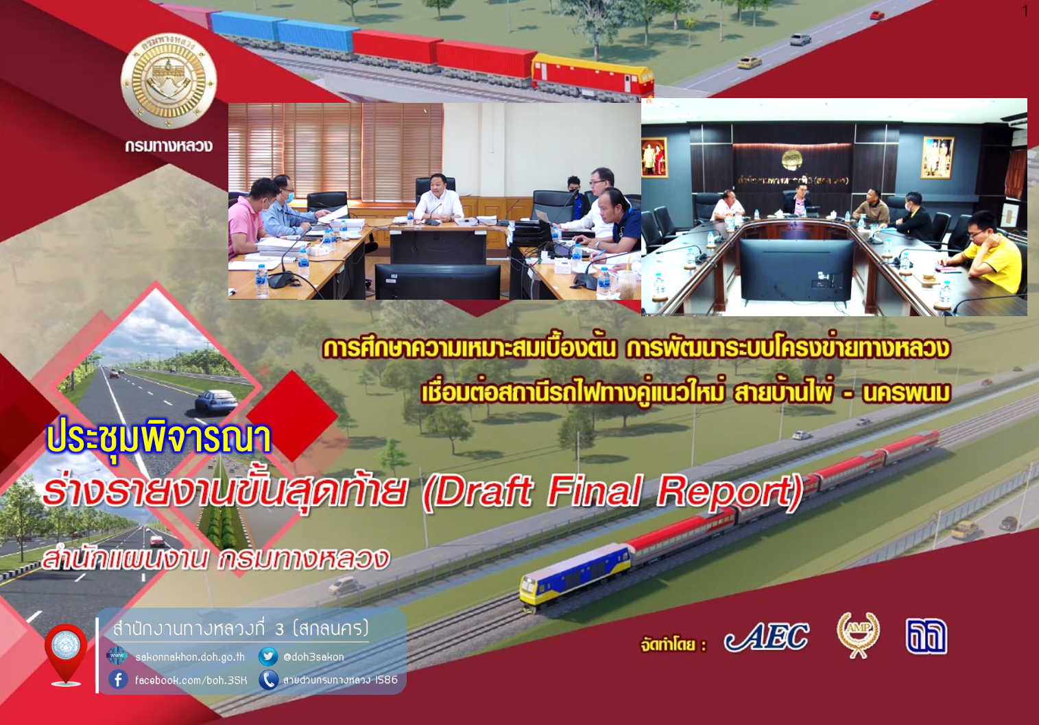 ประชุมพิจารณาร่างรายงานขั้นสุดท้าย (Draft Final Repost) การศึกษาความเหมาะสมเบื้องต้น การพัฒนาระบบโครงข่ายทางหลวงเชื่อมต่อสถานีรถไฟทางคู่แนวใหม่ สายบ้านไผ่ – นครพนม