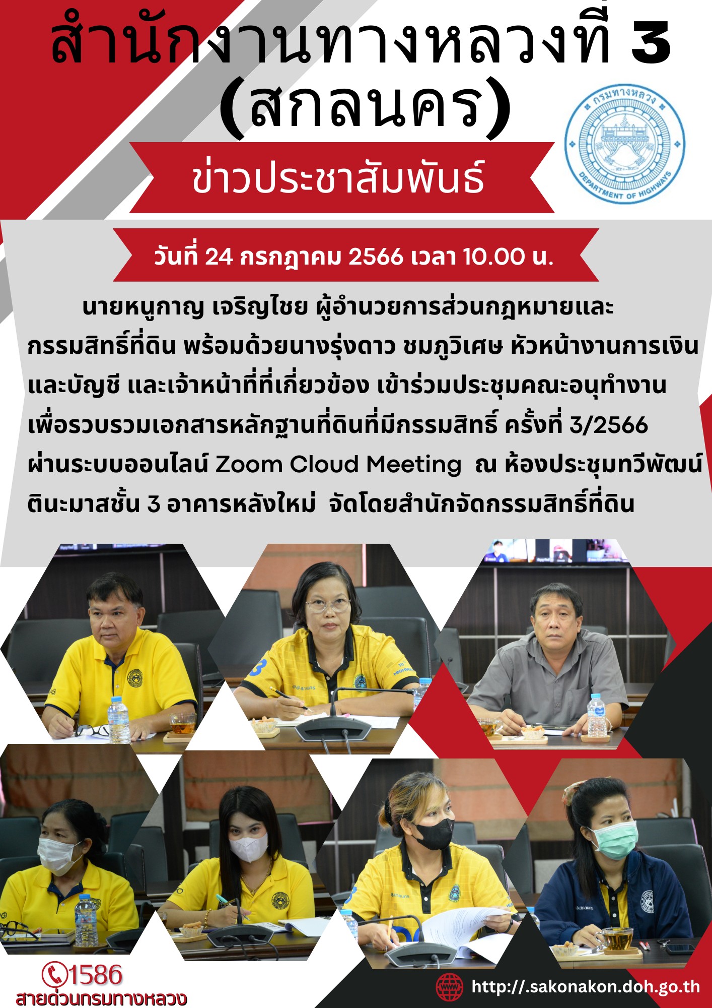 ประชุมติดตามผลการดำเนินงานของสำนักงานทางหลวงที่ 3 (สกลนคร)ครั้งที่ 4/2566