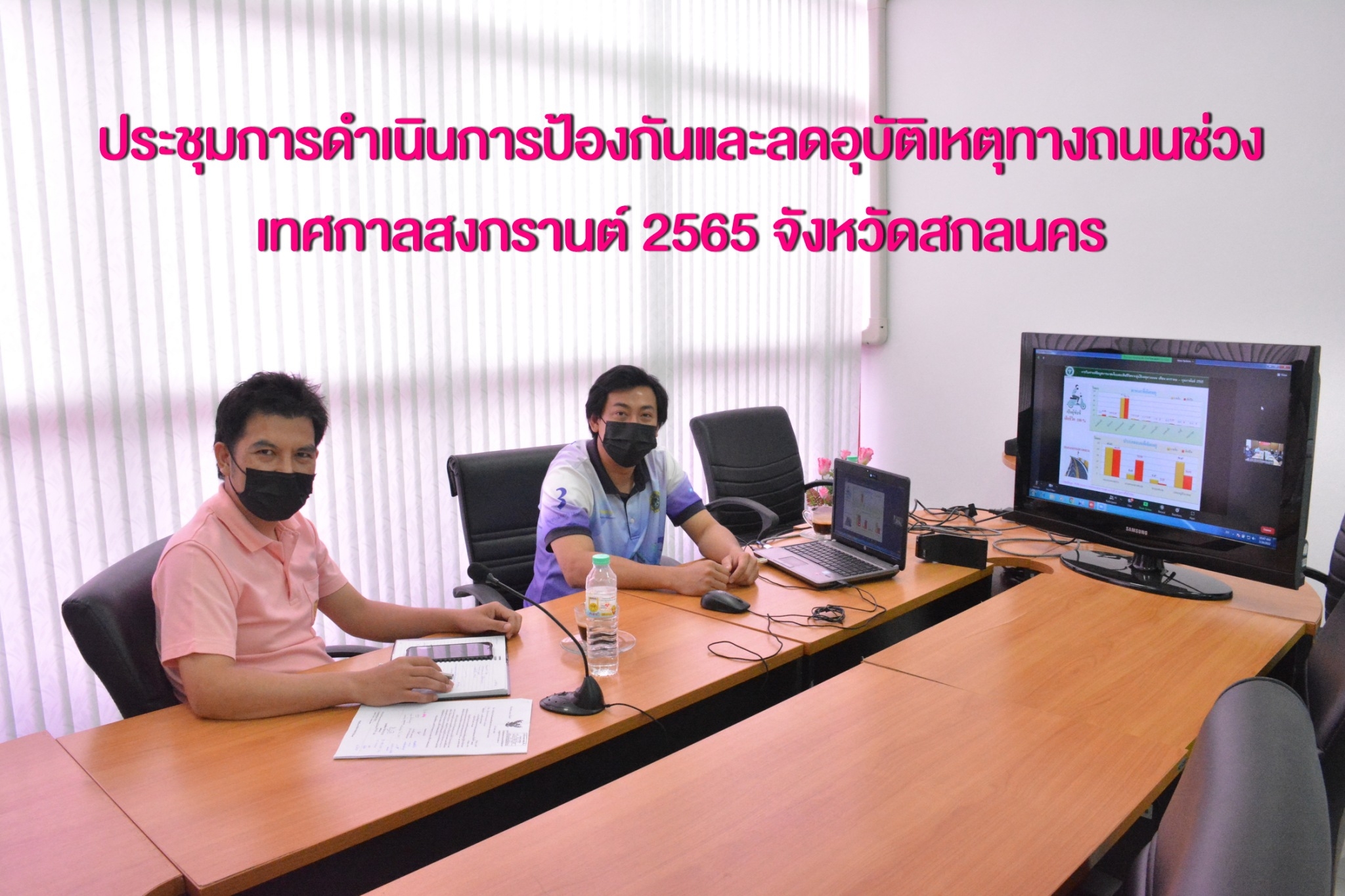 ประชุม เรื่อง การดำเนินการป้องและลดอุบัติเหตุทางถนนช่วงเทศกาลสงกรานต์ 2565 จังหวัดสกลนคร