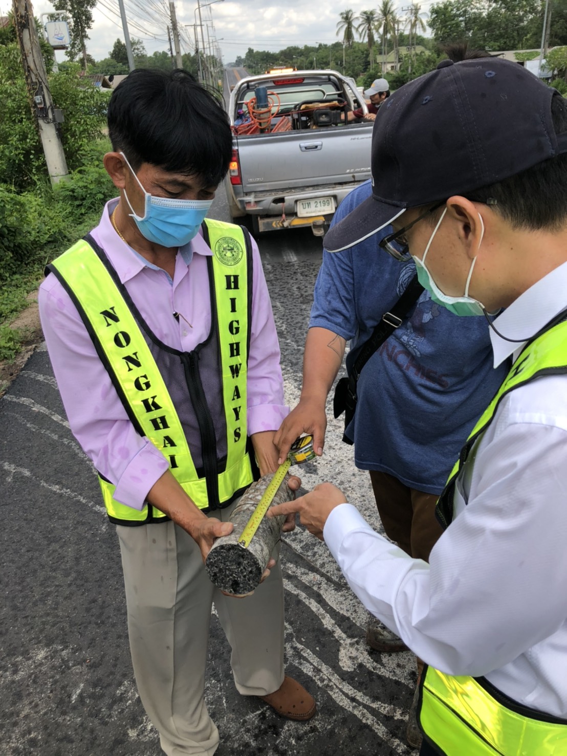 นายวุฒิพงศ์ คำภูแสน รองผู้อำนวยการ สำนักงานทางหลวงที่ 3 (สกลนคร) ลงพื้นที่เข้าดูงานโครงการก่อสร้างทางหลวง ของแขวงทางหลวงหนองคาย