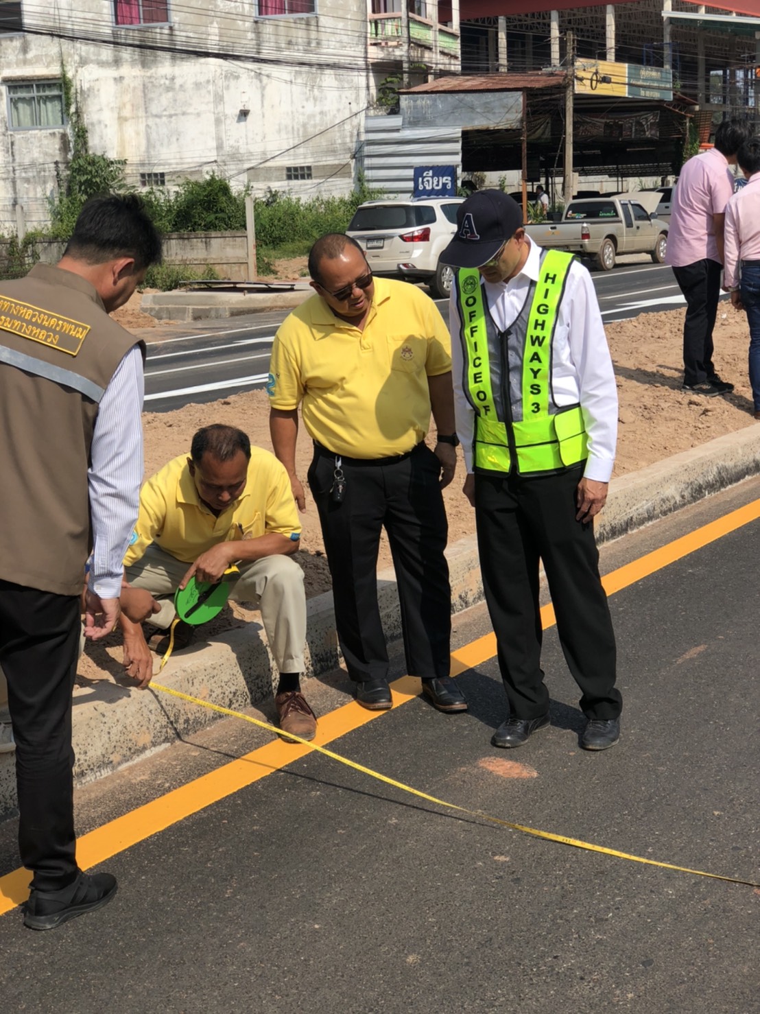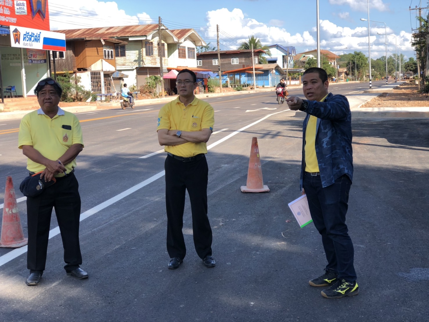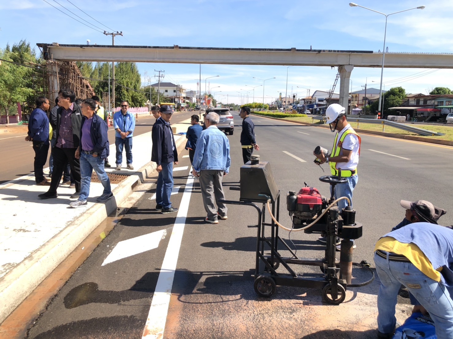 นายพัลลภ จันทร์งามปภากูล ผู้อำนวยการสำนักงานทางหลวงที่ 3 พร้อมคณะกรรมการตรวจรับพัสดุ ลงพื้นที่ดูงานโครงการก่อสร้างทางหลวงหมายเลข 222 CS.0101 ตอน พังโคน-เดื่อศรีคันไชย ระหว่าง กม.4+150-กม.5+100