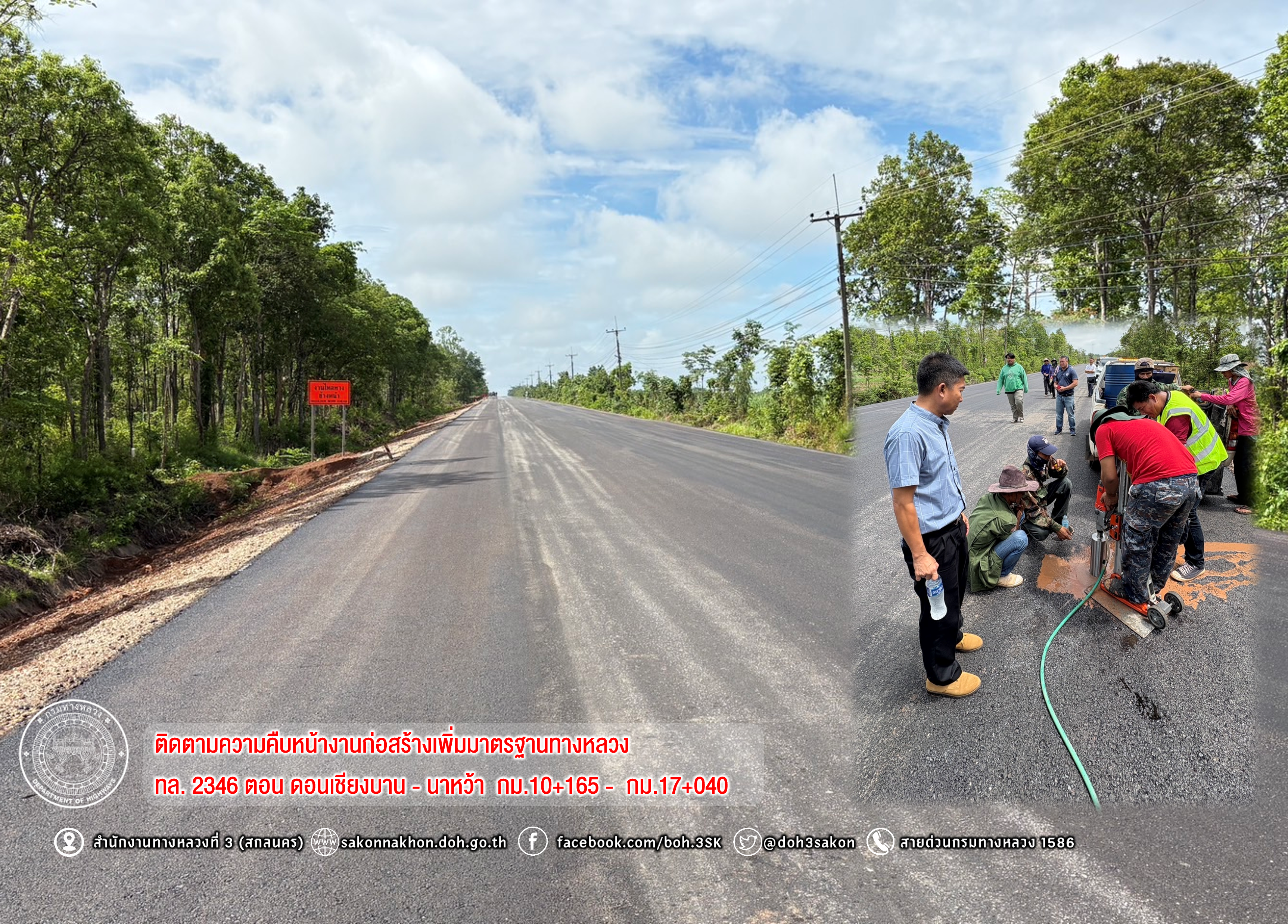ติดตามความคืบหน้างานก่อสร้างเพิ่มมาตรฐานทางหลวง ทล.2346 ตอน ดอนเชียงบาน - นาหว้า ระหว่าง กม.10+165 - กม.17+040