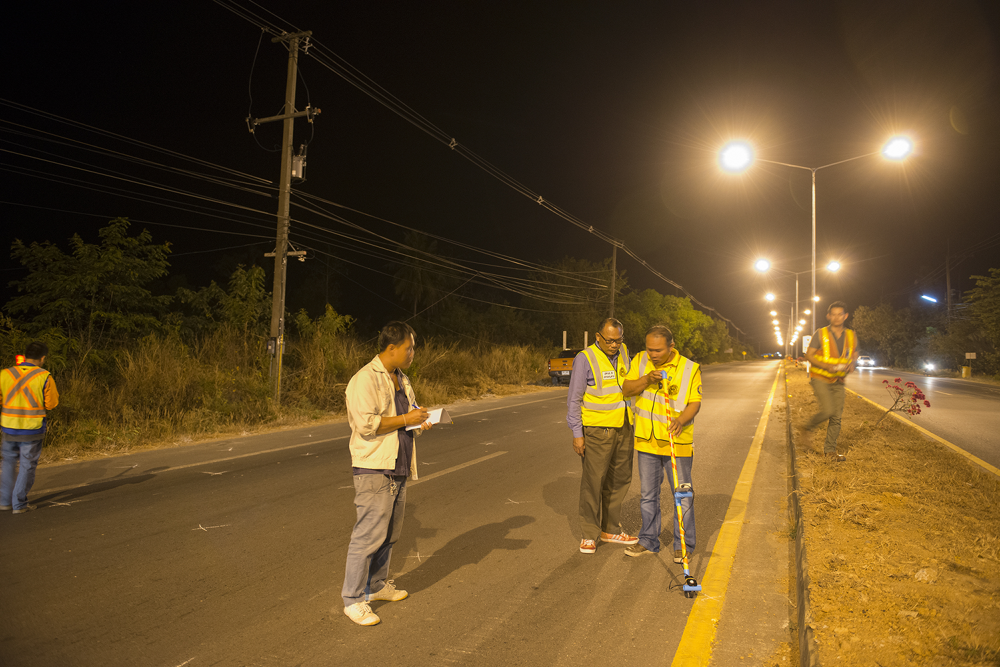 ตรวจวัดค่าความสว่างในโครงการติดตั้งไฟฟ้าแสงสว่างบนทางหลวงหมายเลข 212