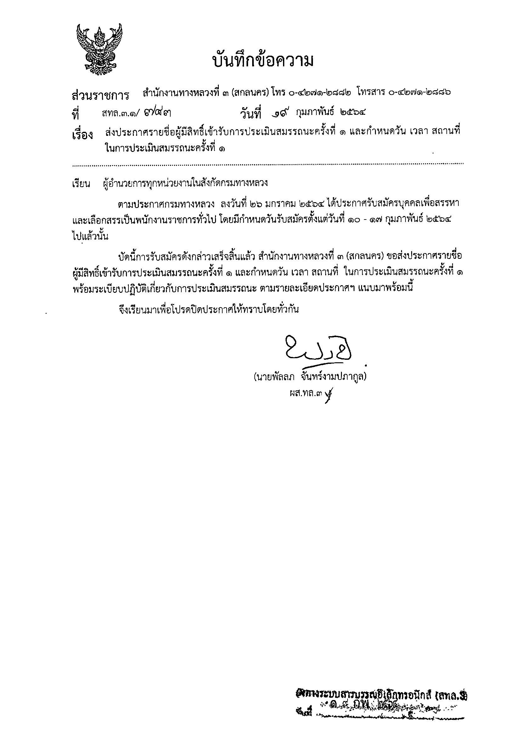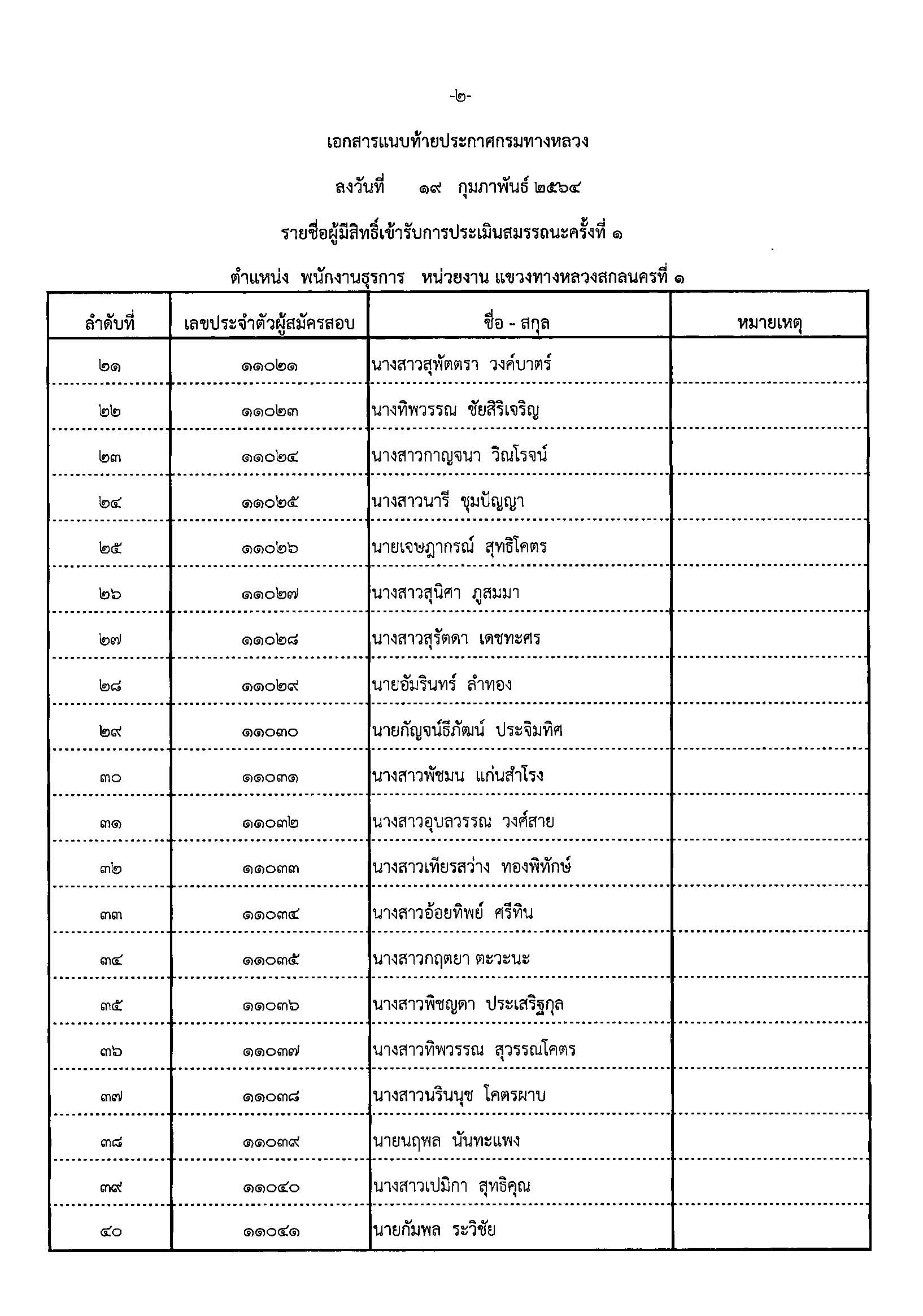 ประกาศรายชื่อผู้มีสิทธิ์สอบพนักงานราชการ2564