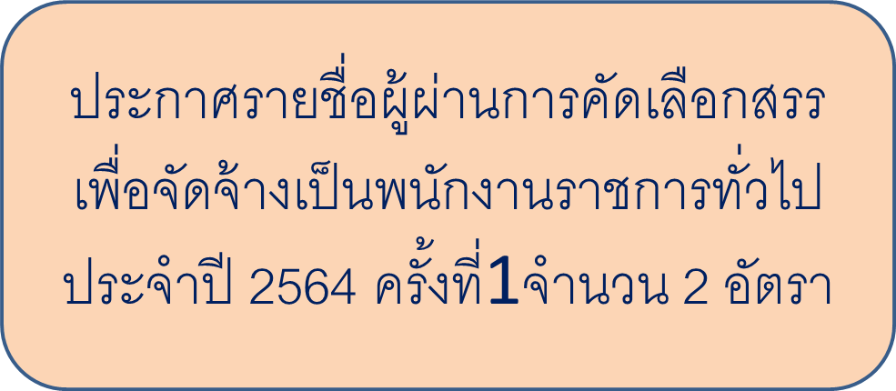 ประกาศรายชื่อผู้ผ่านการคัดเลือกสรรเพื่อจัดจ้างเป็นพนักงานราชการทั่วไปประจำปี 2564 ครั้งที่1จำนวน 2 อัตรา