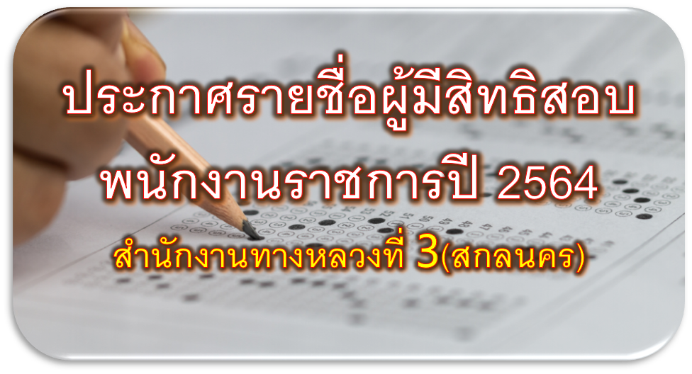 ประกาศรายชื่อผู้มีสิทธิสอบพนักงานราชการปี2564 ของสำนักงานทางหลวงที่ 3 (สกลนคร) จำนวน 5 อัตรา