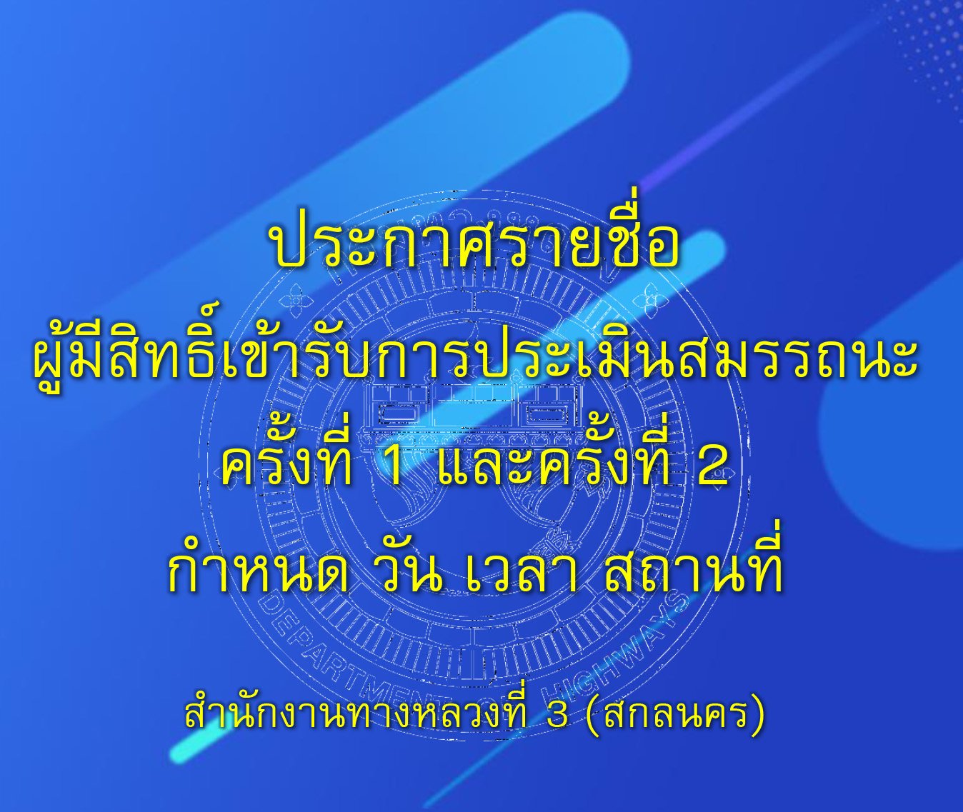 ประกาศรายชื่อผู้มีสิทธิ์เข้ารับการประเมินสมรรถนะ ครั้งที่ 1 และครั้งที่ 2 ของ สทล.3(สกลนคร)