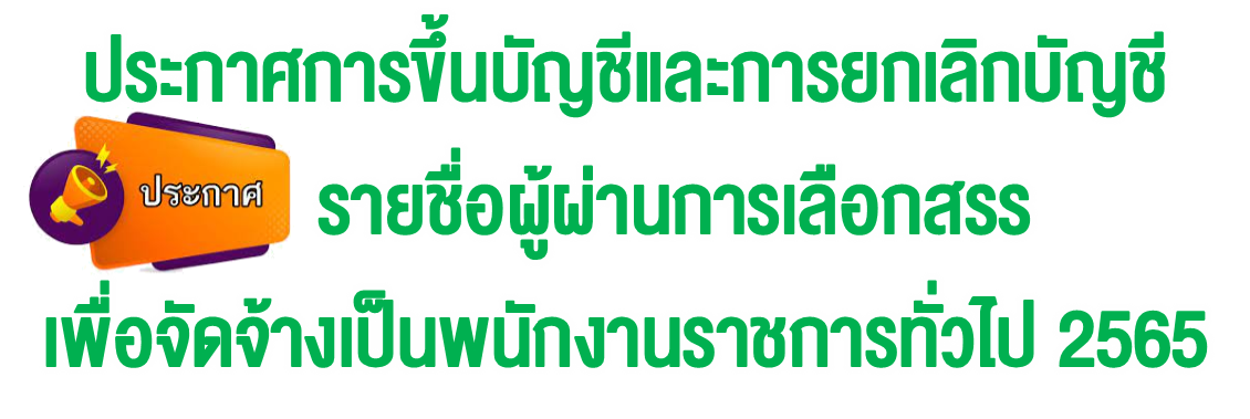 ประกาศการขึ้นบัญชีและการยกเลิกบัญชีรายชื่อผู้ผ่านการเลือกสรร เพื่อจัดจ้างเป็นพนักงานราชการทั่วไป 2565