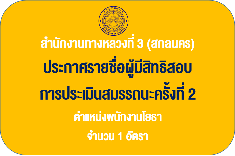 ข้อมูลประกาศรับสมัครพนักงานราชการ : ประกาศรายชื่อผู้มีสิทธิสอบ การประเมินสมรรถนะครั้งที่ 2 ตำแหน่งพนักงานโยธา จำนวน 1 อัตรา