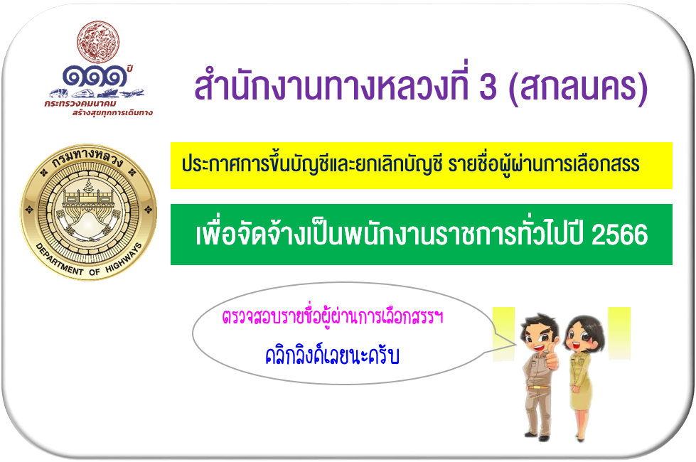 ประกาศการขึ้นบัญชีและยกเลิกบัญชี รายชื่อผู้ผ่านการเลือกสรรเพื่อจัดจ้างเป็นพนักงานราชการทั่วไปปี 2566