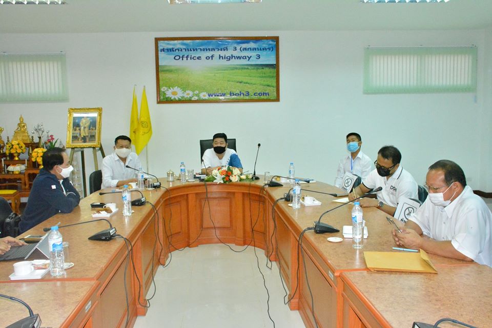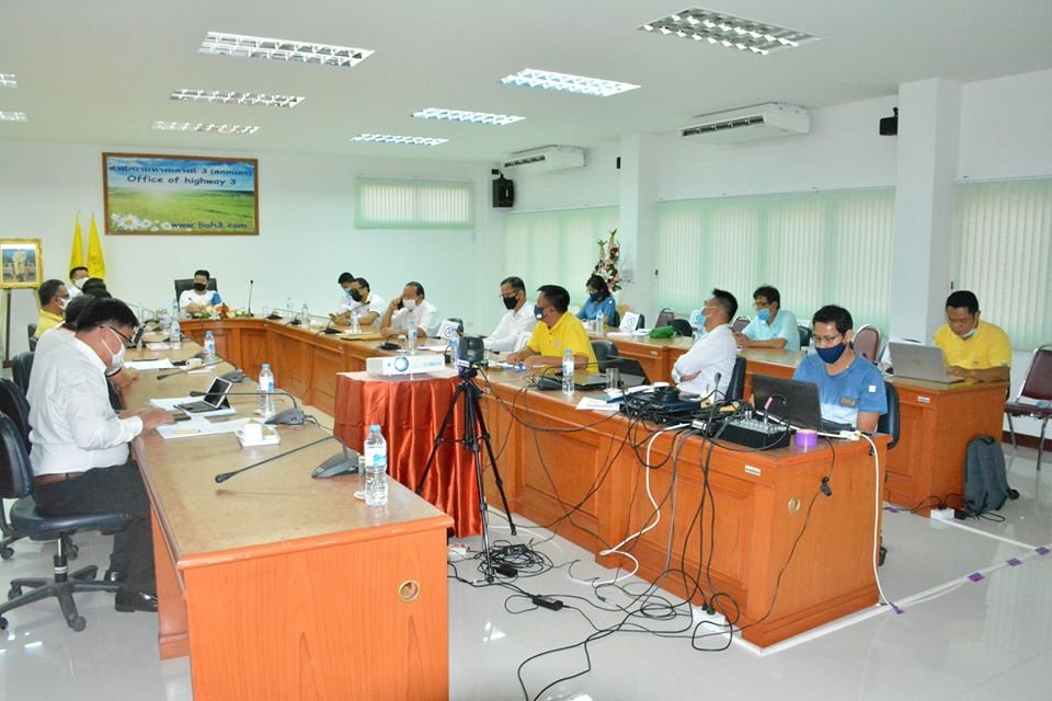 วันที่ 1 พฤษภาคม 2563 เวลา10.00น. - 12.00 น. ประชุมทางไกลผ่านระบบ Video Conference จากกรมทางหลวง กรุงเทพมหานคร ณ ห้องประชุมมนัส คอวนิช โดยมีนายสราวุธ ทรงศิวิไล อธิบดีกรมทางหลวง เป็นประธาน มีระเบียบวาระการประชุมดังนี้ 1.เรื่องที่ประธานแจ้งให้ที่ประชุมทราบ 2.เรื่องที่เสนอให้ทีประชุมทราบ 2.1.การเร่งรัดติดตามการเบิกจ่ายงบประมาณรายจ่ายประจำปี 2563 (กง.) 2.2.ติดตามผลการดำเนินงานก่อสร้าง (สท.1 สท.2 สส. ศูนย์สร้างทาง ศูนย์สร้างและบูรณะสะพาน) 2.3.การขออนุญาตดำเนินการในเขตทาง (สป. สทล.1-18) 3.เรื่องอื่น ๆ ในการประชุมครั้งนี้มีสำนักงานทางหลวงทั้ง 18 สำนักงานเข้าร่วมประชุมผ่านระบบ Video Conference สำนักงานทางหลวงที่ 3 (สกลนคร) นำโดย นายพันธุ์ศักดิ์ สัตยเทวา ผู้อำนวยการสำนักงานทางหลวงที่ 3 พร้อมด้วยนายณัฐพงษ์ ตรีวัชตรานนท์ รองผู้อำนวยการสำนักงานทางหลวงที่ 3 ตำแหน่งที่1,นายชัยธวัช พรหมวิชัย รองผู้อำนวยการสำนักงานทางหลวงที่ 3 ตำแหน่งที่2 ,ผู้อำนวยแขวงทางหลวงทุกแขวงในสังกัด และผู้อำนวยการส่วน/ฝ่าย/งาน ร่วมประชุมและรับฟังนโยบาย ณ ห้องประชุมสำนักงานทางหลวงที่ 3 (สกลนคร) (หลังใหม่) ในการร่วมประชุมและรับฟังนโยบายของกรมทางหลวงครั้งนี้แบบ Social distancing ตามนโยบายของกรมทางหลวง เป็นหนึ่งในมาตรการลดการระบาดของโรคโควิด-19