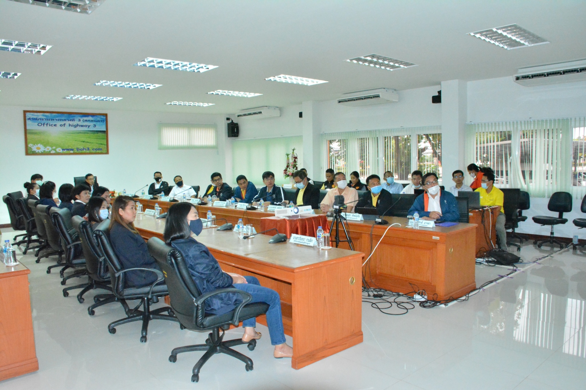 วันที่ 12 พฤศจิกายน 2563 เวลา 09.00 น. สำนักงานทางหลวงที่ 3 (สกลนคร) นำโดย นายพัลลภ จันทร์งามปภากูล ผู้อำนวยการสำนักงานทางหลวงที่ 3 ,นายณัฐพงษ์ ตรีวัชตรานนท์ รองผู้อำนวยการสำนักงานทางหลวงที่ 3 พร้อมด้วยผู้อำนวยการแขวงทางหลวงในสังกัด และเจ้าหน้าที่สำนักงานทางหลวงที่ 3 (สกลนคร) ร่วมต้อนรับ คณะติดตามผลงานโครงการก่อสร้างจากสำนักงบประมาณ กรมทางหลวง พร้อมรับฟังบรรยายสรุปติดามผลการดำเนินงานปีงบประมาณ 2563/2564 ณ ห้องประชุมอาคารหลังใหม่ มีหัวข้อนำเสนอดังนี้