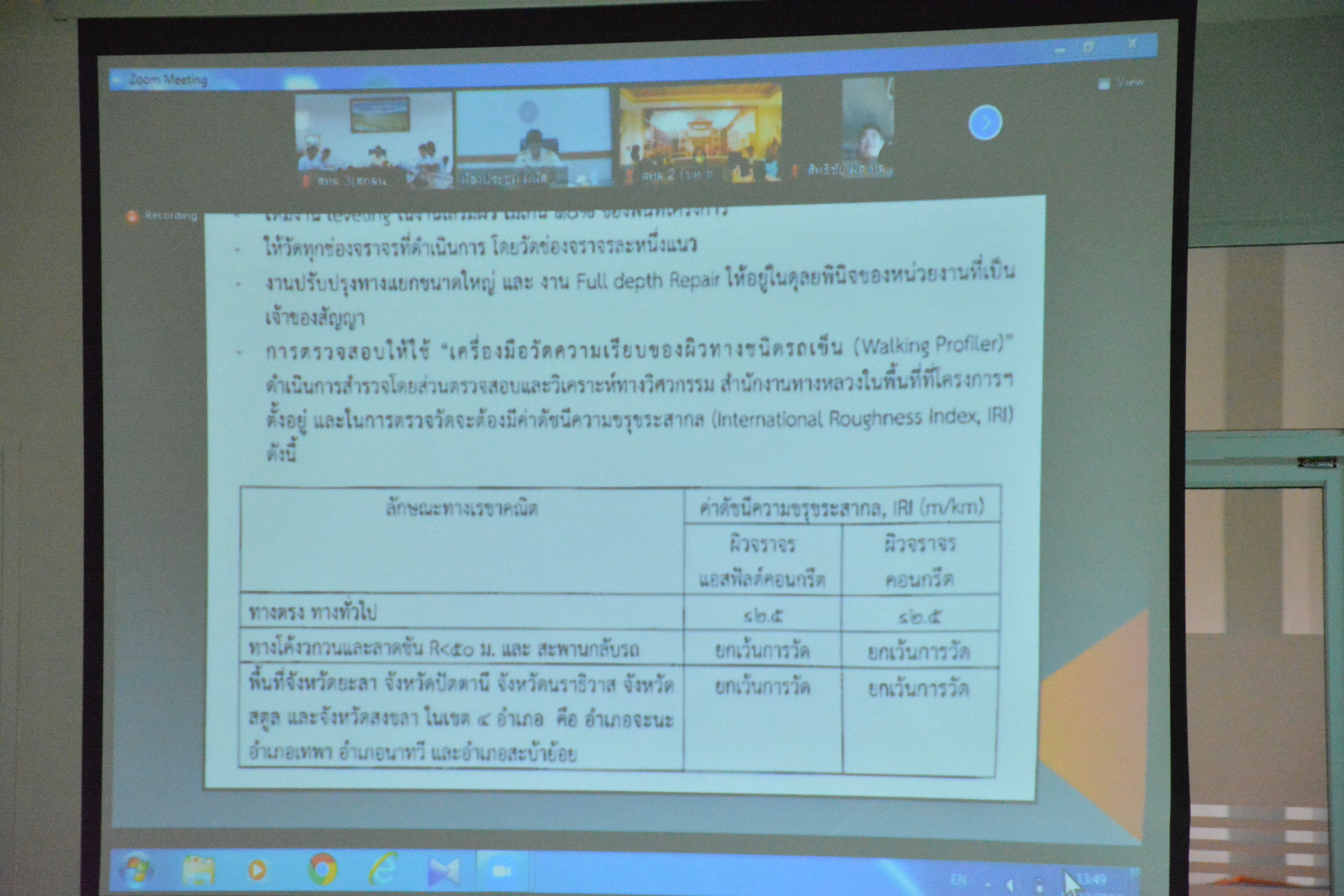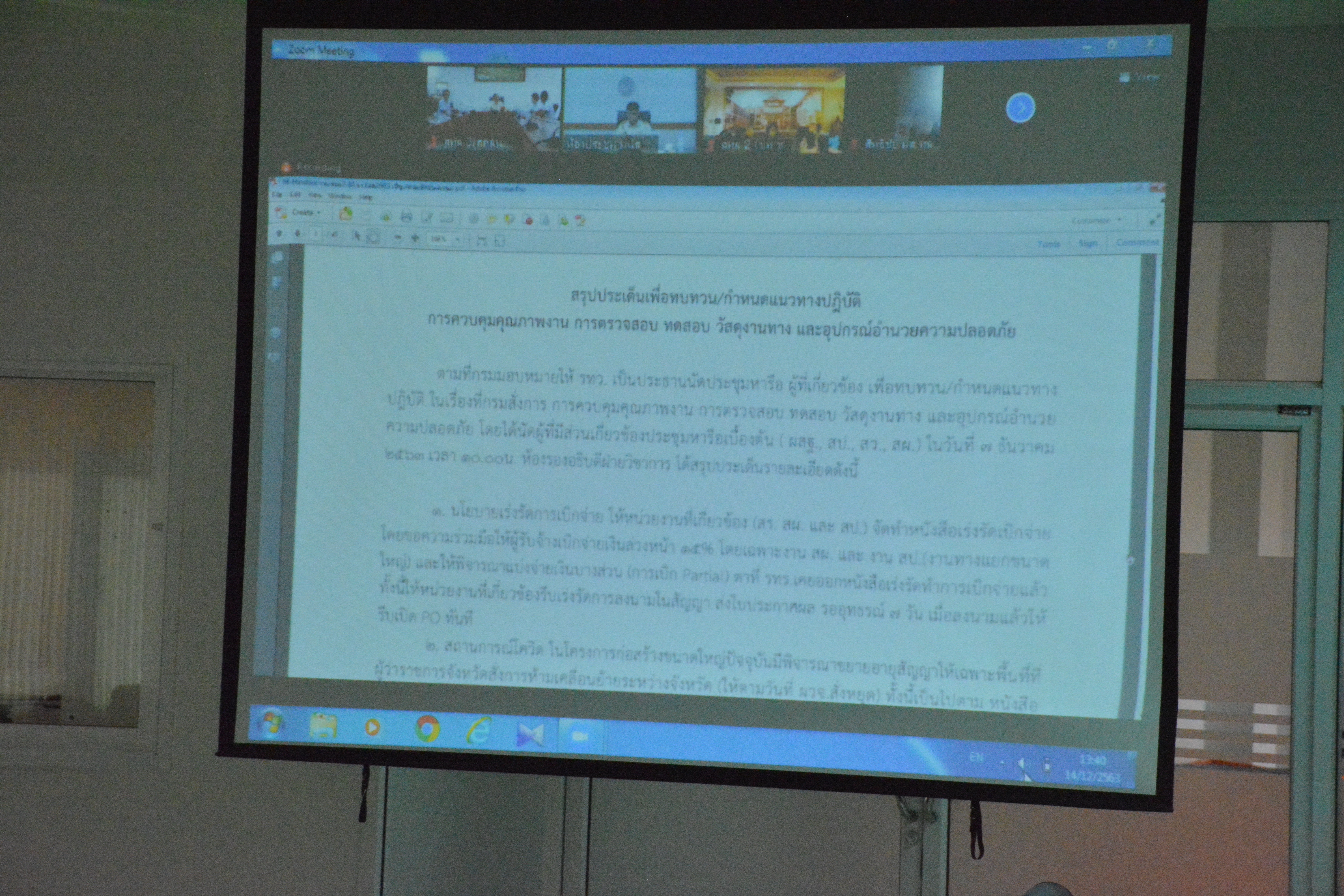 วันที่ 14 ธันวาคม 2563 ณ ห้องประชุมสำนักงานทางหลวงที่ 3 (สกลนคร) อาคารหลังใหม่ เวลา 13.30 น.นายพัลลภ จันทร์งามปภากูล ผู้อำนวยการสำนักงานทางหลวงที่ 3 พร้อมด้วยผู้อำนวยการส่วนควบคุมงานก่อสร้าง,ผู้อำนวยการส่วนตรวจสอบและวิเคราะห์ทางวิศวกรรม ,ผู้อำนวยการส่วนอำนวยความปลอดภัย และรองผู้อำนวยการส่วนตรวจสอบฯสำนักงานทางหลวงที่3(สกลนคร) ร่วมประชุมทางไกลโดยผ่านระบบ Zoom Meeting จากห้องประชุมมนัสคอวนิช ชั้น 2 อาคารพหลโยธิน กรมทางหลวง การประชุมเพื่อทบทวน/กำหนดแนวทางปฏิบัติ การควบคุมคุณภาพงาน การตรวจสอบ ทดสอบ วัสดุงานทาง และอุปกรณ์อำนวยความปลอดภัยสำหรับงบประมาณปี 2564 โดยมีนายอภิชาติ จันทรทรัพย์ รองอธิบดีกรมทางหลวงฝ่ายวิชาการ เป็นประธาน ในการประชุมครั้งนี้มีหน่วยงานในสังกัดกรมทางหลวง เข้าร่วมประชุมทางไกลโดยผ่านระบบ Zoom Meeting ทั้ง 18 สำนักงานทางหลวง