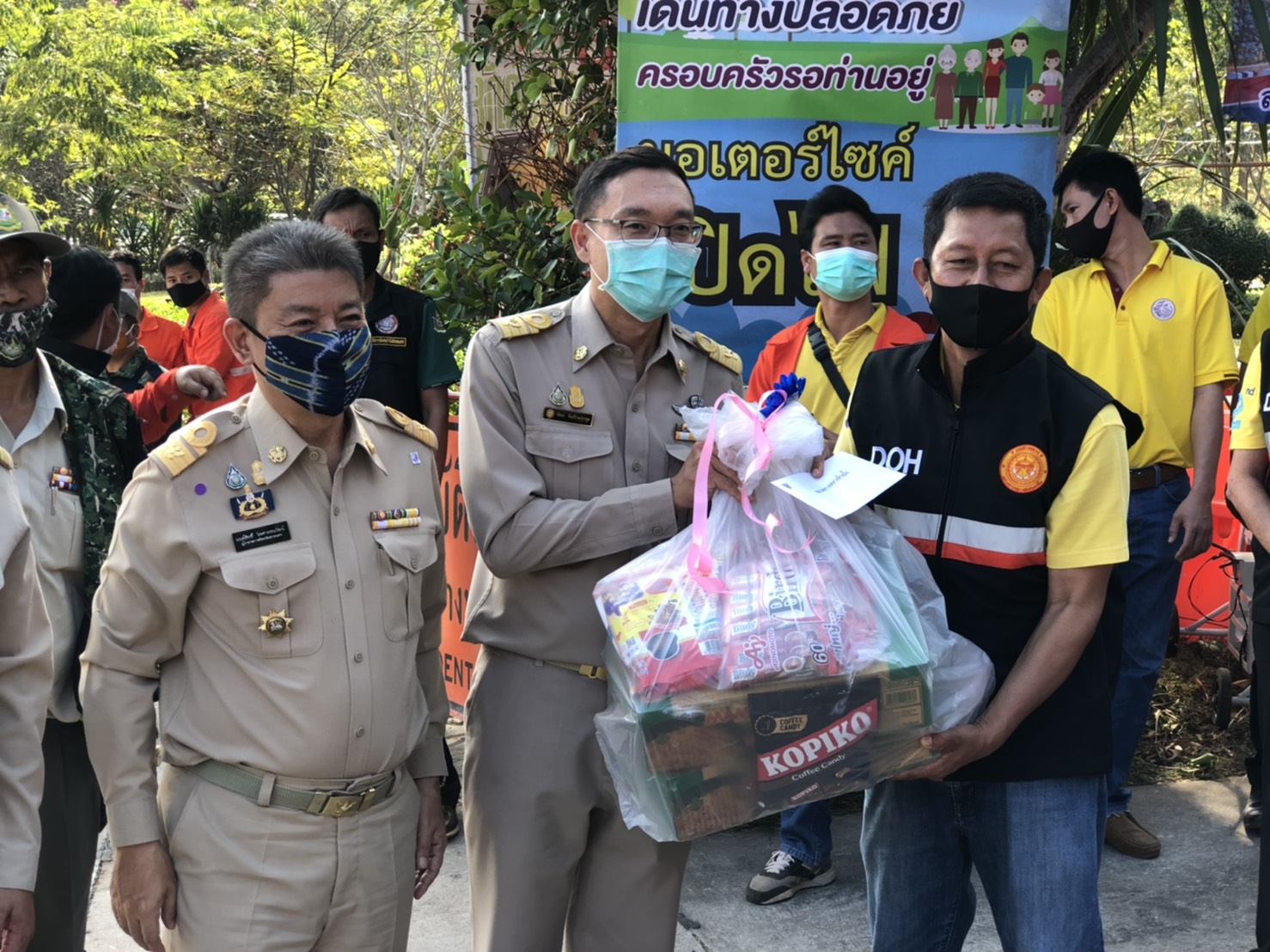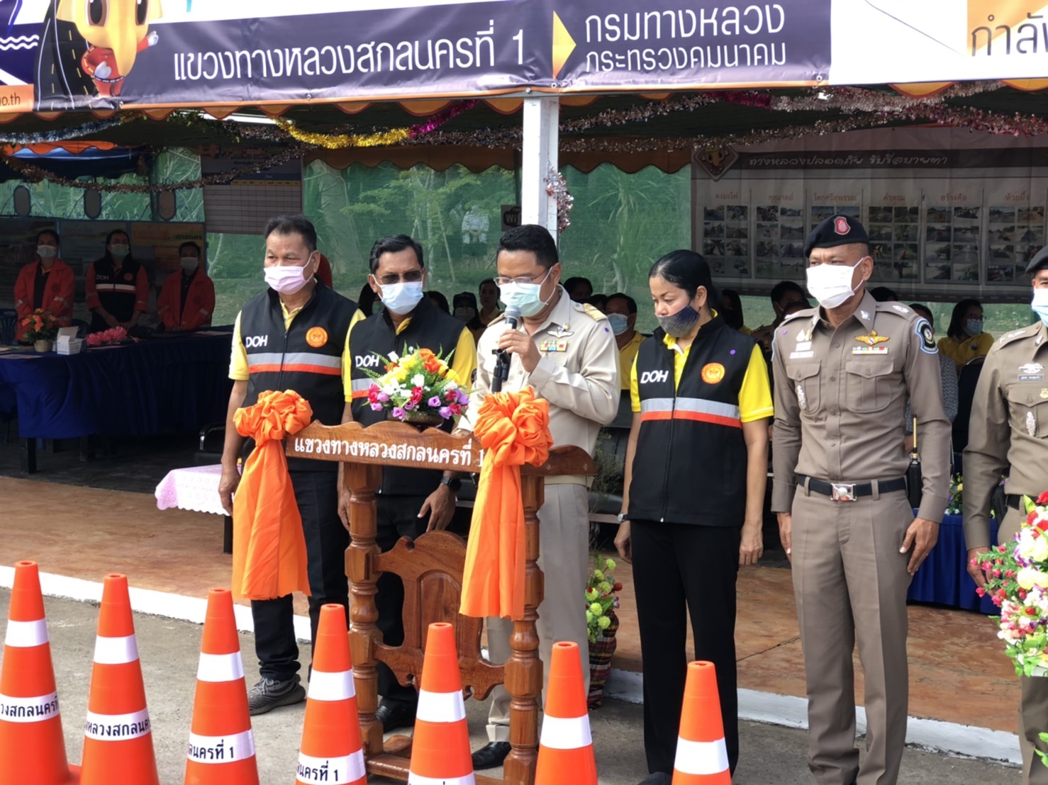 พิธีเปิดศูนย์อำนวยความสะดวกและปลอดภัยช่วงเทศกาลปีใหม่ 2564 บนทางหลวงหมายเลข 213 สายกาฬสินธุ์ – สกลนคร ที่ กม.155+650 ด้านซ้ายทาง(โค้งปิ้งงู)