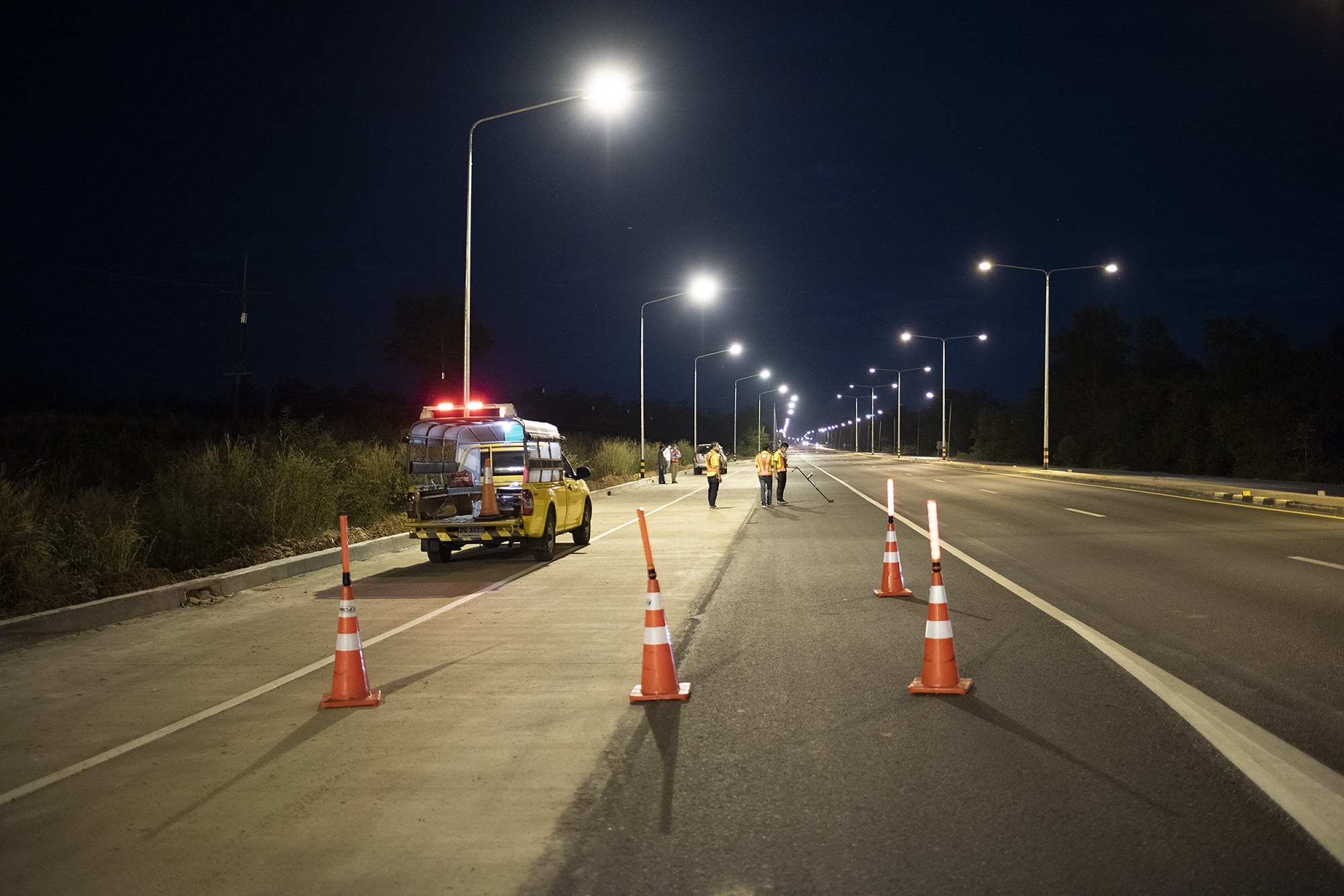 ส่วนไฟฟ้า สทล.3 ตรวจวัดความเข้มแสงสว่าง ของงานติดตั้งไฟฟ้าแสงสว่างบนทางหลวง ของโครงการก่อสร้างทางหลวงหมายเลข 22 สกลนคร - นครพนม ตอน 2 พร้อมจุดพักรถ ระหว่าง กม.197+676.000 - กม.223+073.635 ระยะทางยาว 25.398 กิโลเมตร โดยได้ตรวจวัดความเข้มแสงสว่างดังนี้