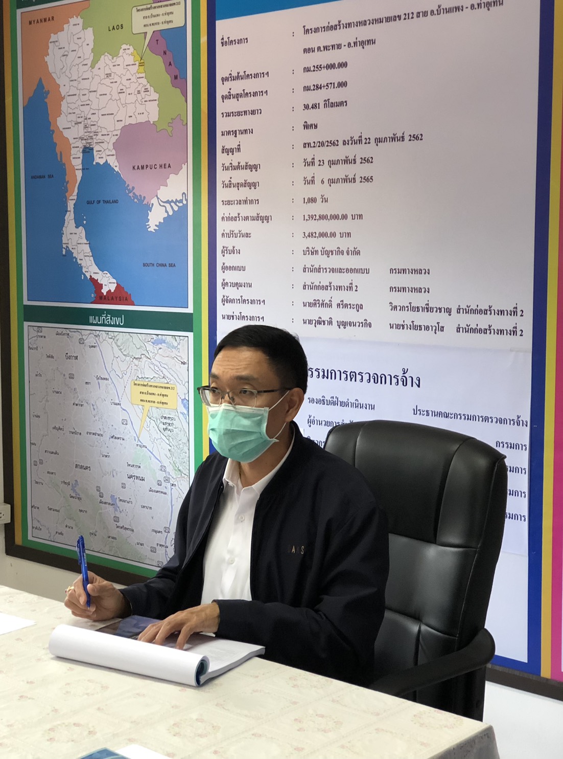 วันที่ 26 มกราคม 2564 เวลา 10.30น.นายพัลลภ จันทร์งามปภากูล ผู้อำนวยการสำนักงานทางหลวงที่ 3 กรรมการตรวจรับพัสดุ พร้อมด้วยคณะกรรมการตรวจรับพัสดุ ลงพื้นที่ตรวจงานโครงการก่อสร้างทางหลวง 212 สาย อ.บ้านแพง – อ.ท่าอุเทน ตอน ต.พะทาย – อ.ท่าอุเทน ระหว่าง กม.255+000– กม.284+571 ระยะทางรวม 30.481กม. วงเงินงบประมาณ 1,392,800,000 บาท พร้อมรับฟังบรรยายสรุปผลการดำเนินงานของโครงการก่อสร้างทางหลวง 212 สาย อ.บ้านแพง – อ.ท่าอุเทน ตอน ต.พะทาย – อ.ท่าอุเทน ณ ห้องประชุมโครงการฯ