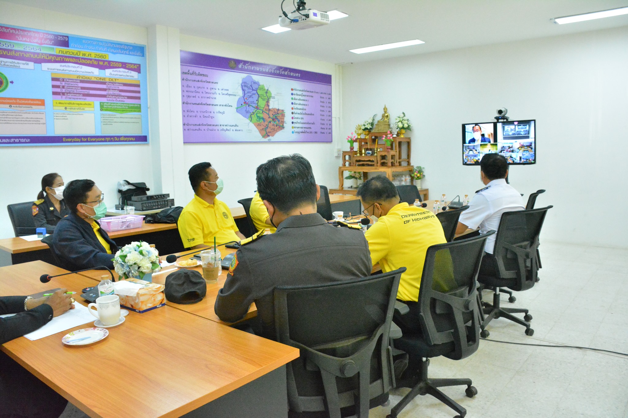 วันที่ 9 เมษายน 2564 เวลา 11.00 น. นายพัลลภ จันทร์งามปภากูล ผู้อำนวยการสำนักงานทางหลวงที่ 3 ,นายประวัติ เสวตวงษ์ รองผู้อำนวยการสำนักงานทางหลวงที่ 3 ,นายประสิทธิ์ สาขา ผู้อำนวยการแขวงทางหลวงสกลนครที่1 เข้าประชุมเรื่อง การมอบนโยบายเพื่อเตรียมความพร้อมในการอำนวยความสะดวกและปลอดภัยเพื่อรองรับการเดินทางของประชาชน ในช่วงเทศกาลสงกรานต์ พ.ศ.2564 โดยการประชุมทางไกลผ่าน (Video Conference) เป็นรายภาค ณ ห้องราชดำเนิน โดยมี นายสรพงศ์ ไพฑูรย์พงษ์ รองปลัดกระทรวงคมนาคม เป็นประธาน ในการประชุมครั้งนี้