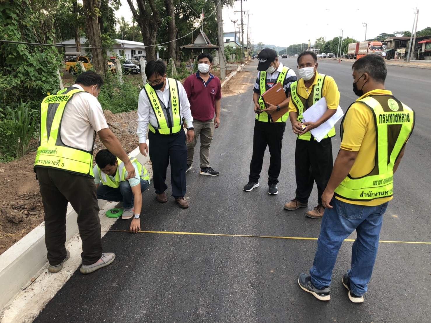 วันที่ 24 มิถุนายน 2564 เวลา14.45น. นายพัลลภ จันทร์งามปภากูล ผู้อำนวยการสำนักงานทางหลวงที่ 3 ประธานกรรมการตรวจรับพัสดุ พร้อมด้วยนายประสิทธิ์ สาขา ผู้อำนวยการแขวงทางหลวงสกลนครที่ 1 กรรมการตรวจรับพัสดุ และคณะกรรมการตรวจรับพัสดุ ลงพื้นที่ดูงานโครงการก่อสร้างทางหลวงสัญญาที่ สน.34/2564 งานจ้างเหมาทำการบูรณาการพัฒนาพื้นที่ระดับภาคทางหลวงหมายเลข 213 สาย สร้างค้อ – สกลนคร ระหว่าง กม.160+500 - กม.162+500 และกม.166+370-กม.167+995 ปริมาณงาน 1 แห่ง วงเงินงบประมาณ 68,506,000 บาท (ตรวจรับงานงวดที่2) เพื่อให้การดำเนินงานก่อสร้างทางหลวงแผ่นดินได้ตามแบบมาตรฐานของกรมทางหลวง กระทรวงคมนาคม โดยมีห้างหุ้นส่วน ศิริสินก่อสร้าง เป็นผู้รับจ้าง