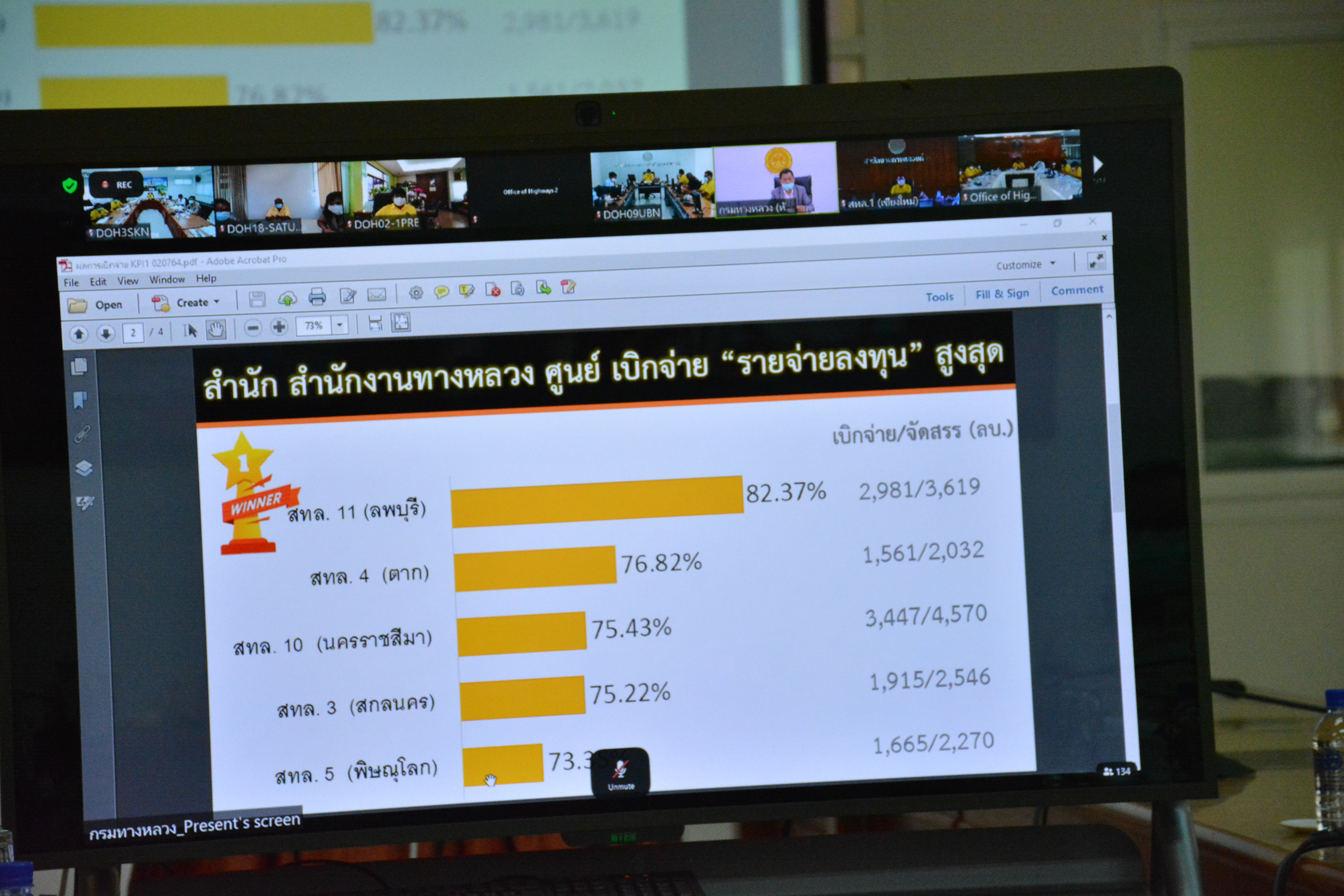 วันที่ 5 กรกฎาคม 2564 ณ ห้องประชุมสำนักงานทางหลวงที่ 3 (สกลนคร) อาคารหลังใหม่ เวลา 09.00 น.นายพัลลภ จันทร์งามปภากูล ผู้อำนวยการสำนักงานทางหลวงที่ 3 พร้อมด้วย นายวุฒิพงศ์ คำภูแสน รองผู้อำนวยการสำนักงานทางหลวงที่ 3 ตำแหน่งที่1 ,นายประวัติ เสวตวงษ์ รองผู้อำนวยการสำนักงานทางหลวงที่ 3 ตำแหน่งที่2 ,นายประสิทธิ์ สาขา ผู้อำนวยการแขวงทางหลวงสกลนครที่ 1 ,ผู้อำนวยการทุกส่วน/ฝ่าย ,วิศวกรส่วนแผนงาน เข้าร่วมประชุมติดตามผลการเบิกจ่ายงบประมาณประจำปี 2564 ของกรมทางหลวง โดยผ่านระบบ Zoom Meeting จากห้องประชุมมนัสคอวนิช ชั้น 2 อาคารพหลโยธิน กรมทางหลวง มีนายสราวุธ ทรงศิวิไล อธิบดีกรมทางหลวง เป็นประธาน ในการประชุมครั้งนี้มีหน่วยงานในสังกัดกรมทางหลวง เข้าร่วมประชุมทางไกลโดยผ่านระบบ Zoom Meeting ทั้ง 18 สำนักงานทางหลวง
