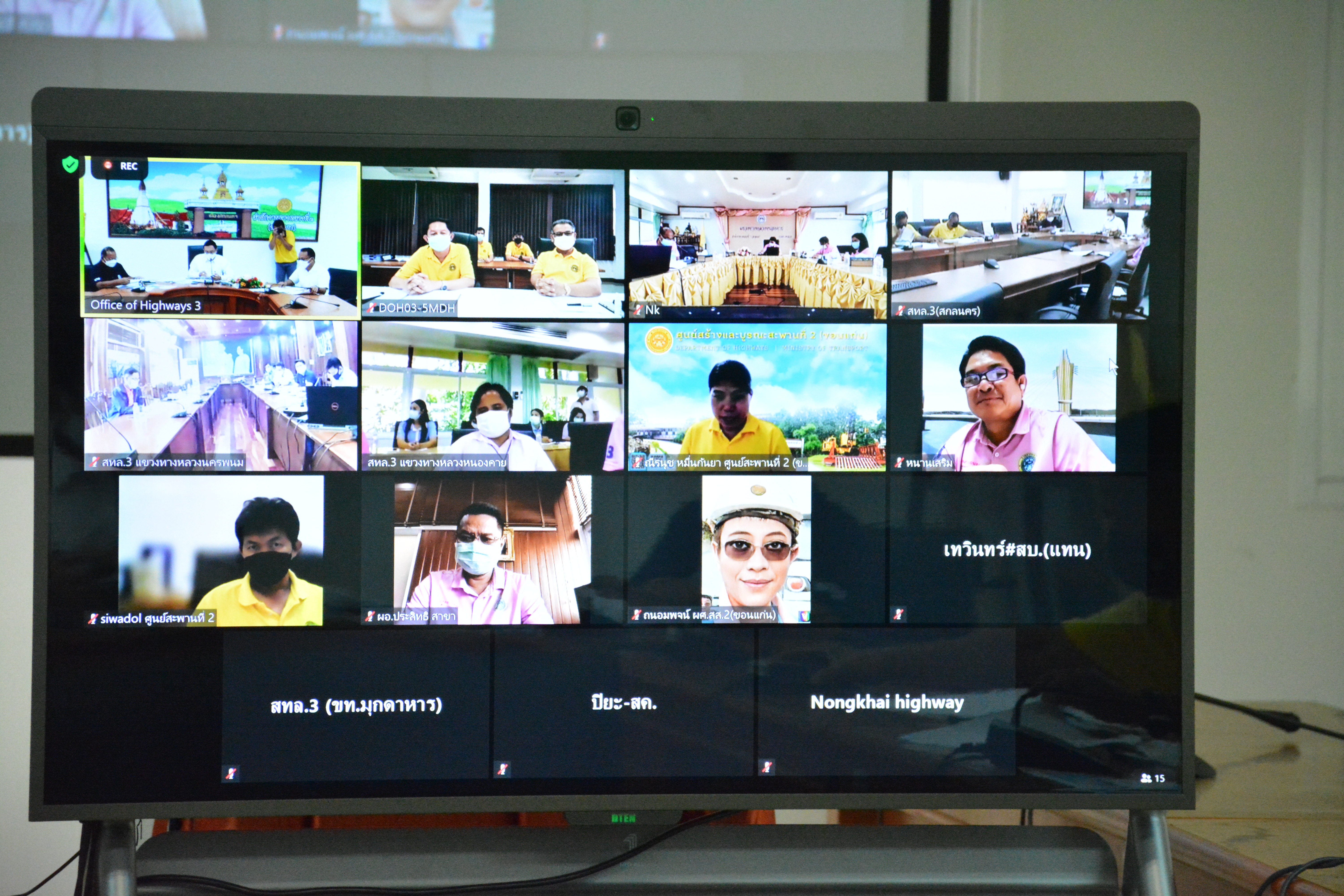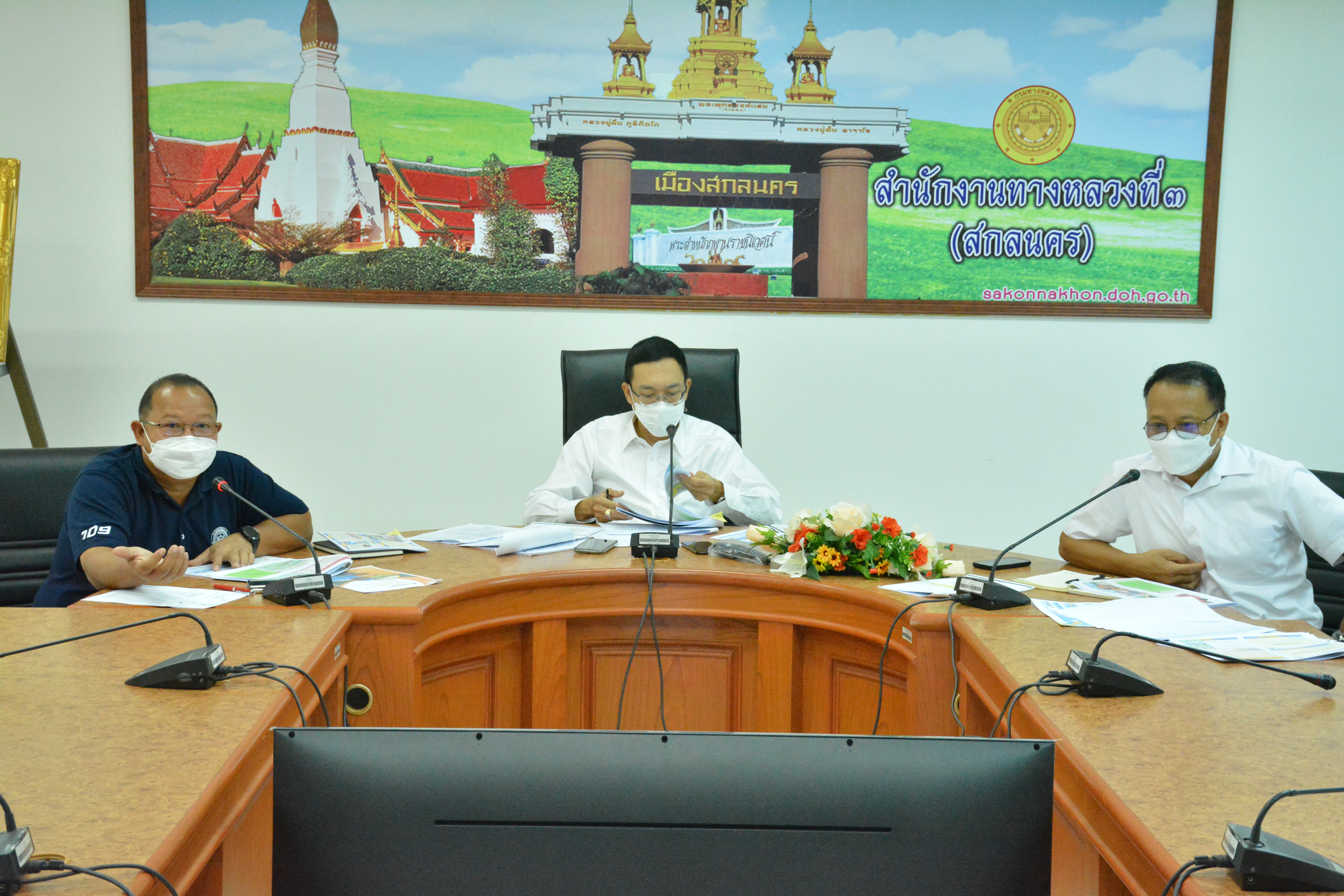 วันที่ 3 สิงหาคม 2564 ณ ห้องประชุมสำนักงานทางหลวงที่ 3 (สกลนคร) อาคารหลังใหม่ เวลา 09.30 น. นายพัลลภ จันทร์งามปภากูล ผู้อำนวยการสำนักงานทางหลวงที่ 3 พร้อมด้วย นายวุฒิพงศ์ คำภูแสน รองผู้อำนวยการสำนักงานทางหลวงที่ 3 ตำแหน่งที่1 ,นายประวัติ เสวตวงษ์ รองผู้อำนวยการสำนักงานทางหลวงที่ 3 ตำแหน่งที่2 ,นายพงษ์ศักดิ์ อาจลา ผู้อำนวยการส่วนสำรวจและออกแบบ ,นายชัยยง ก่อทอง นิติกรชำนาญการ ,เจ้าหน้าที่ส่วนแผนงาน และเจ้าหน้าที่ส่วนสำรวจและออกแบบ ร่วมประชุมคณะกรรมการบริหารด่านสะพานมิตรภาพไทย – ลาว ทั้ง 3 แห่ง โดยผ่านระบบ Zoom Meeting โดยแขวงทางหลวงหนองคาย นครพนม มุกดาหาร ได้นำเสนอแผนรายประมาณการบำรุงรักษาด่านสะพานมิตรภาพไทย – ลาว ปีงบประมาณ 2565 ให้คณะกรรมการบริหารด่านสะพานมิตรภาพไทย – ลาว เพื่อพิจารณาและนำเสนอต่อคณะกรรมาธิการสะพานมิตรภาพไทย – ลาว ต่อไป