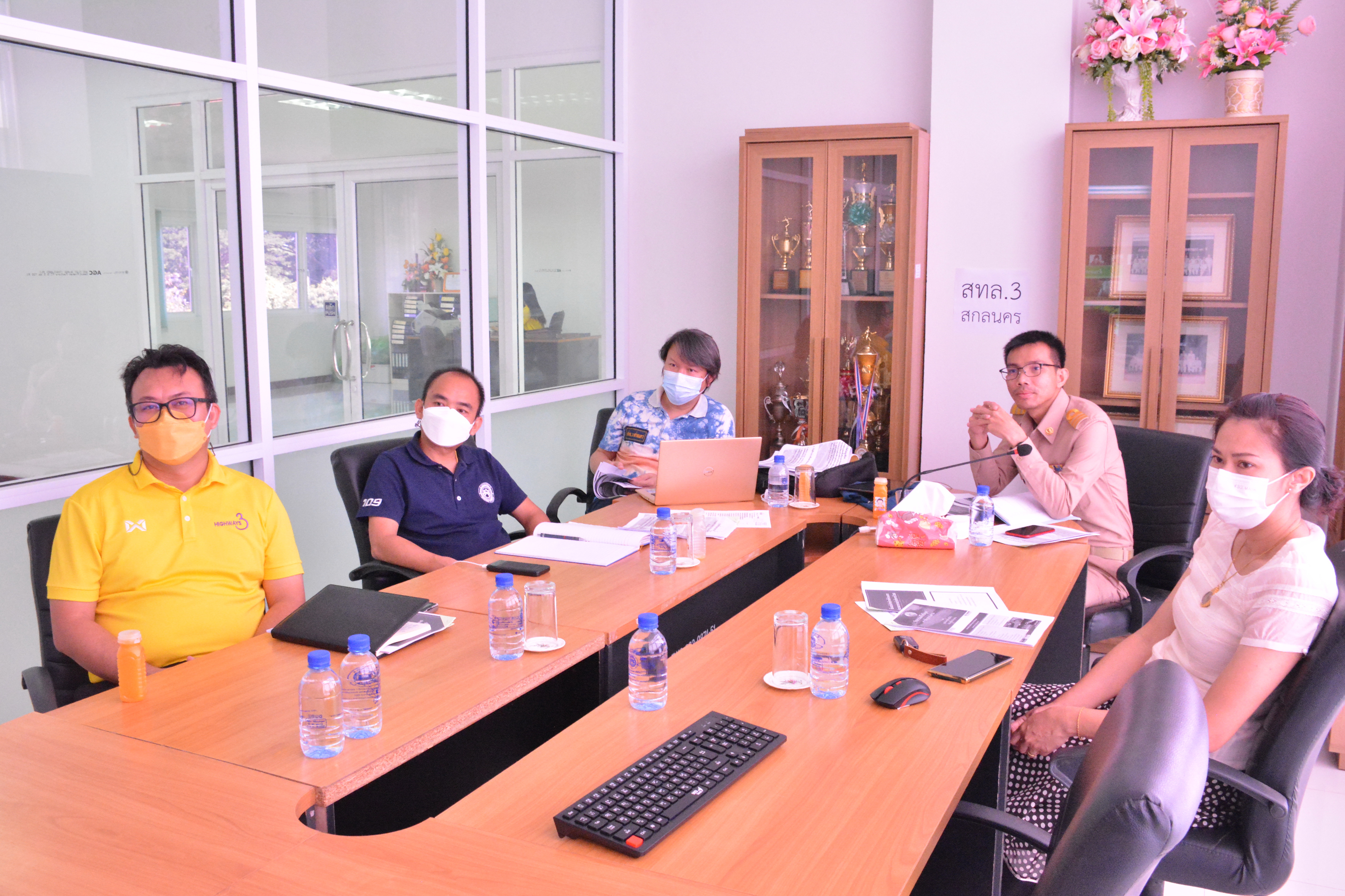 วันที่ 9 สิงหาคม 2564 ณ ห้องประชุมชั้น 2 สำนักงานทางหลวงที่ 3 (สกลนคร) อาคารหลังใหม่เวลา 09.00 วิศวกรโยธาและนายช่างโยธา ส่วนแผนงานสำนักงานทางหลวงที่ 3 (สกลนคร) เข้าร่วมอบรมหลักสูตรการคำนวณราคากลางงานก่อสร้างและงานบำรุงทางหลวง ของกรมทางหลวง ระหว่างวันที่ 9-11 สิงหาคม 2564 โดยผ่านระบบ Zoom Meeting