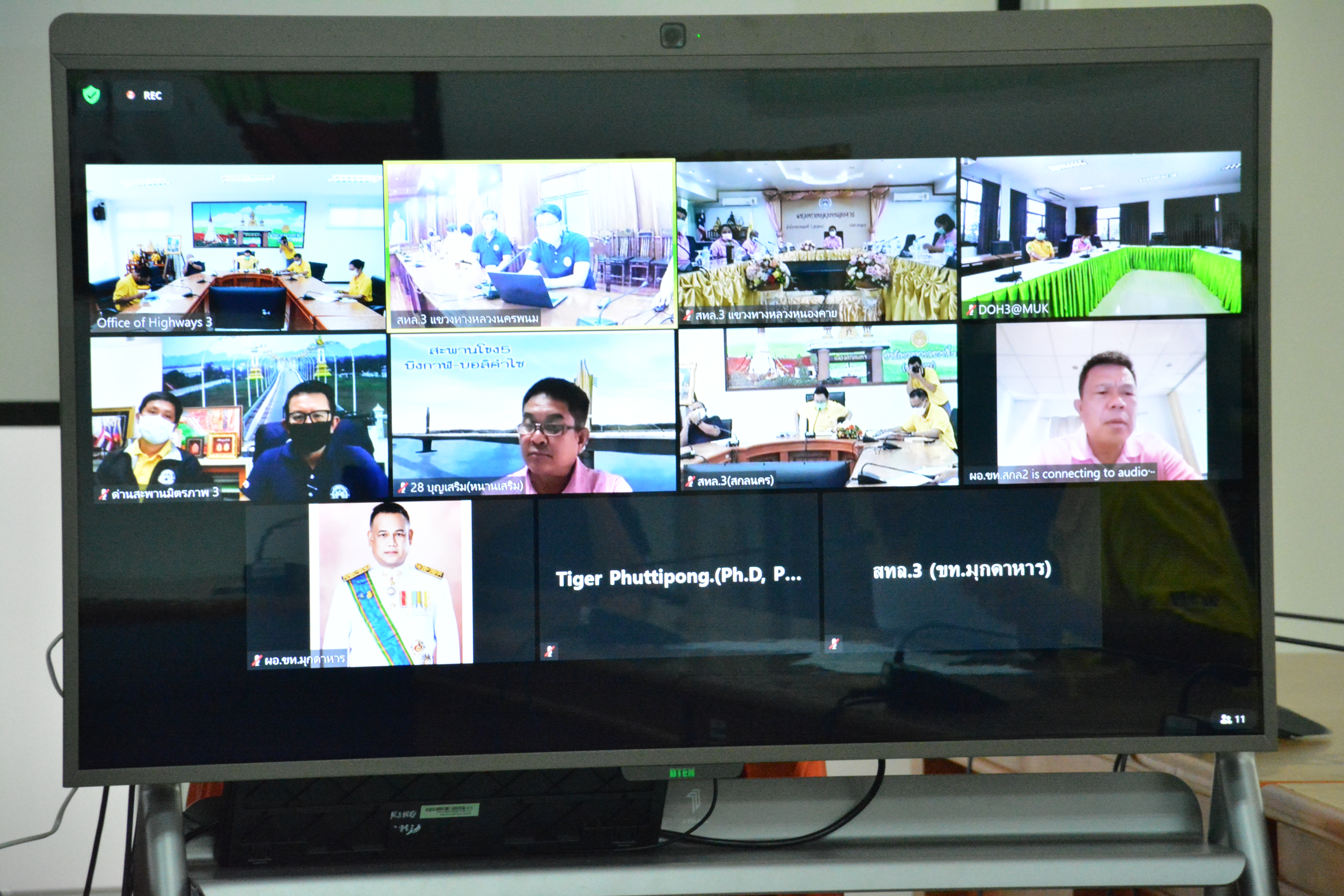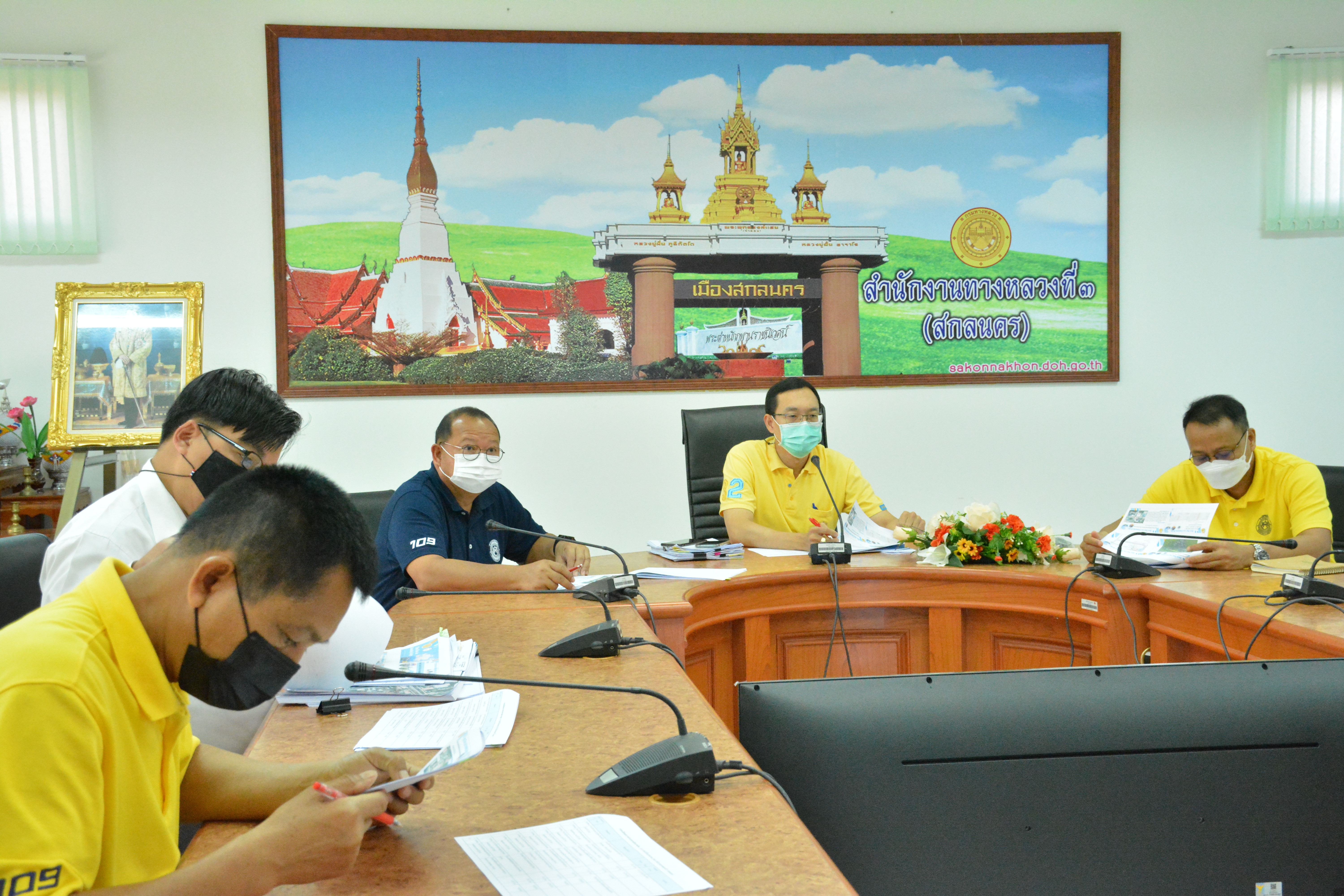 วันที่ 17 สิงหาคม 2564 ณ ห้องประชุมสำนักงานทางหลวงที่ 3 (สกลนคร) อาคารหลังใหม่ เวลา 09.30 น. นายพัลลภ จันทร์งามปภากูล ผู้อำนวยการสำนักงานทางหลวงที่ 3 พร้อมด้วย นายวุฒิพงศ์ คำภูแสน รองผู้อำนวยการสำนักงานทางหลวงที่ 3 ตำแหน่งที่1 ,นายประวัติ เสวตวงษ์ รองผู้อำนวยการสำนักงานทางหลวงที่ 3 ตำแหน่งที่2 ,นายพงษ์ศักดิ์ อาจลา ผู้อำนวยการส่วนสำรวจและออกแบบ ,นายชัยยง ก่อทอง นิติกรชำนาญการ ,เจ้าหน้าที่ส่วนแผนงาน ร่วมประชุมคณะกรรมการบริหารด่านสะพานมิตรภาพไทย – ลาว ทั้ง 3 แห่ง โดยผ่านระบบ Zoom Meeting โดยแขวงทางหลวงหนองคาย นครพนม มุกดาหาร ได้นำเสนอแผนรายประมาณการบำรุงรักษาด่านสะพานมิตรภาพไทย – ลาว ปีงบประมาณ 2556 ให้คณะกรรมการบริหารด่านสะพานมิตรภาพไทย – ลาว เพื่อพิจารณาและนำเสนอต่อคณะกรรมาธิการสะพานมิตรภาพไทย – ลาว ต่อไป