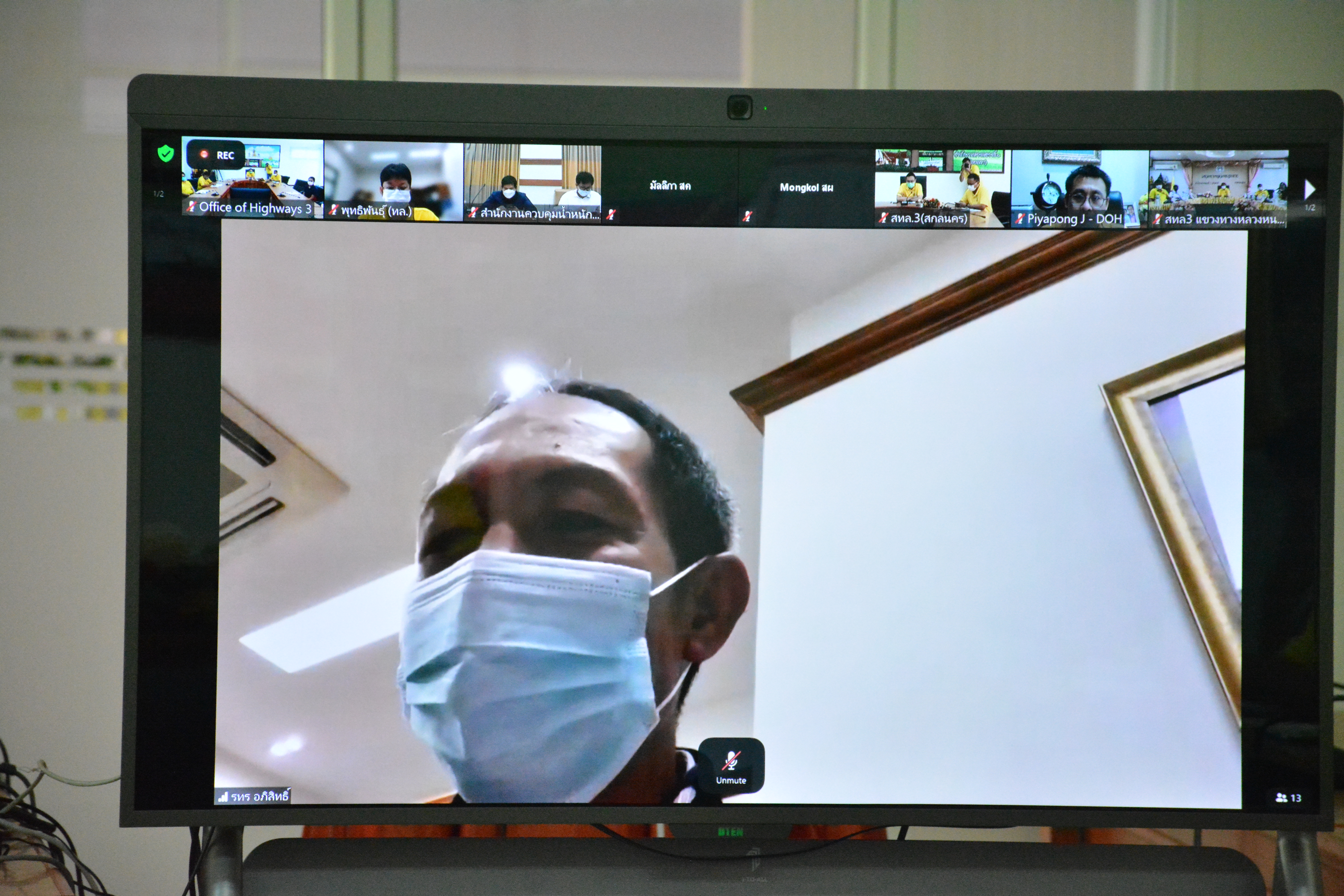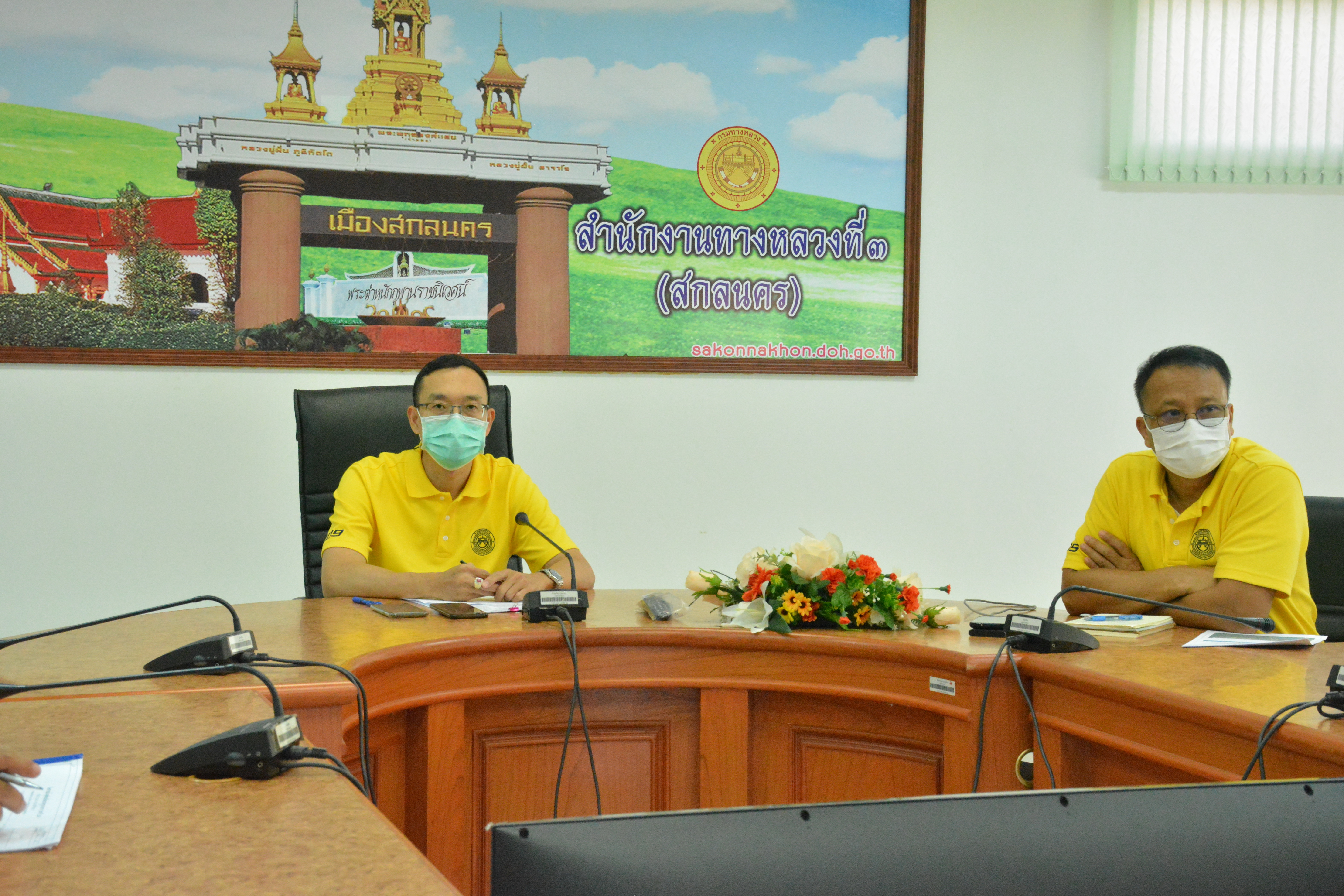 วันที่ 30 สิงหาคม 2564 ณ ห้องประชุมสำนักงานทางหลวงที่ 3 (สกลนคร) อาคารหลังใหม่ เวลา 14.30 นายพัลลภ จันทร์งามปภากูล ผู้อำนวยการสำนักงานทางหลวงที่ 3 พร้อมด้วย นายประวัติ เสวตวงษ์ รองผู้อำนวยการสำนักงานทางหลวงที่ 3 ,นายพงษ์ศักดิ์ อาจลา ผู้อำนวยการส่วนสำรวจและออกแบบ และวิศวกรโยธา/นายช่างโยธา ส่วนแผนงาน ร่วมประชุมเร่งรัดการดำเนินการพัฒนาพื้นที่จุดจอดพักรถบรรทุกบริเวณหนองสองห้องตามกรอบแนวทางการเตรียมความพร้อมรองรับการเปิดให้บริการรถไฟสายสาธารณรัฐประชาชนจีนและสาธารณรัฐประชาธิปไตยประชาชนลาว ในระยะเร่งด่วนครั้งที่ 2/2564 โดยผ่านระบบ Zoom Cloud Meeting มีนายอภิสิทธิ์ พรหมเสน รองอธิบดีกรมทางหลวง เป็นประธาน