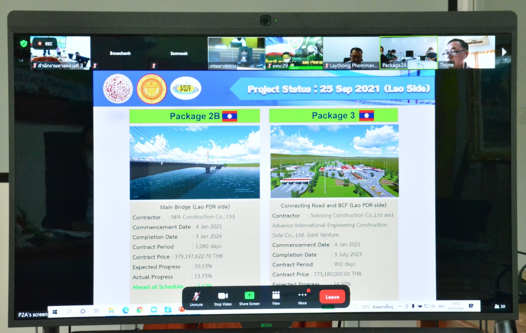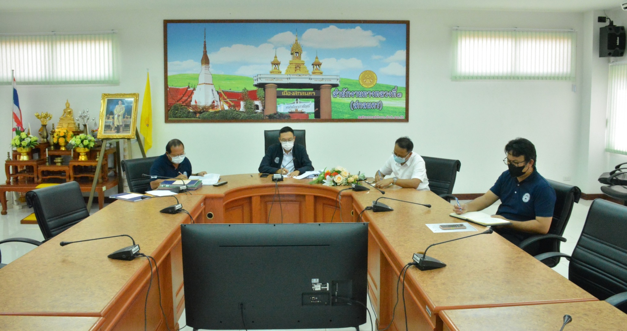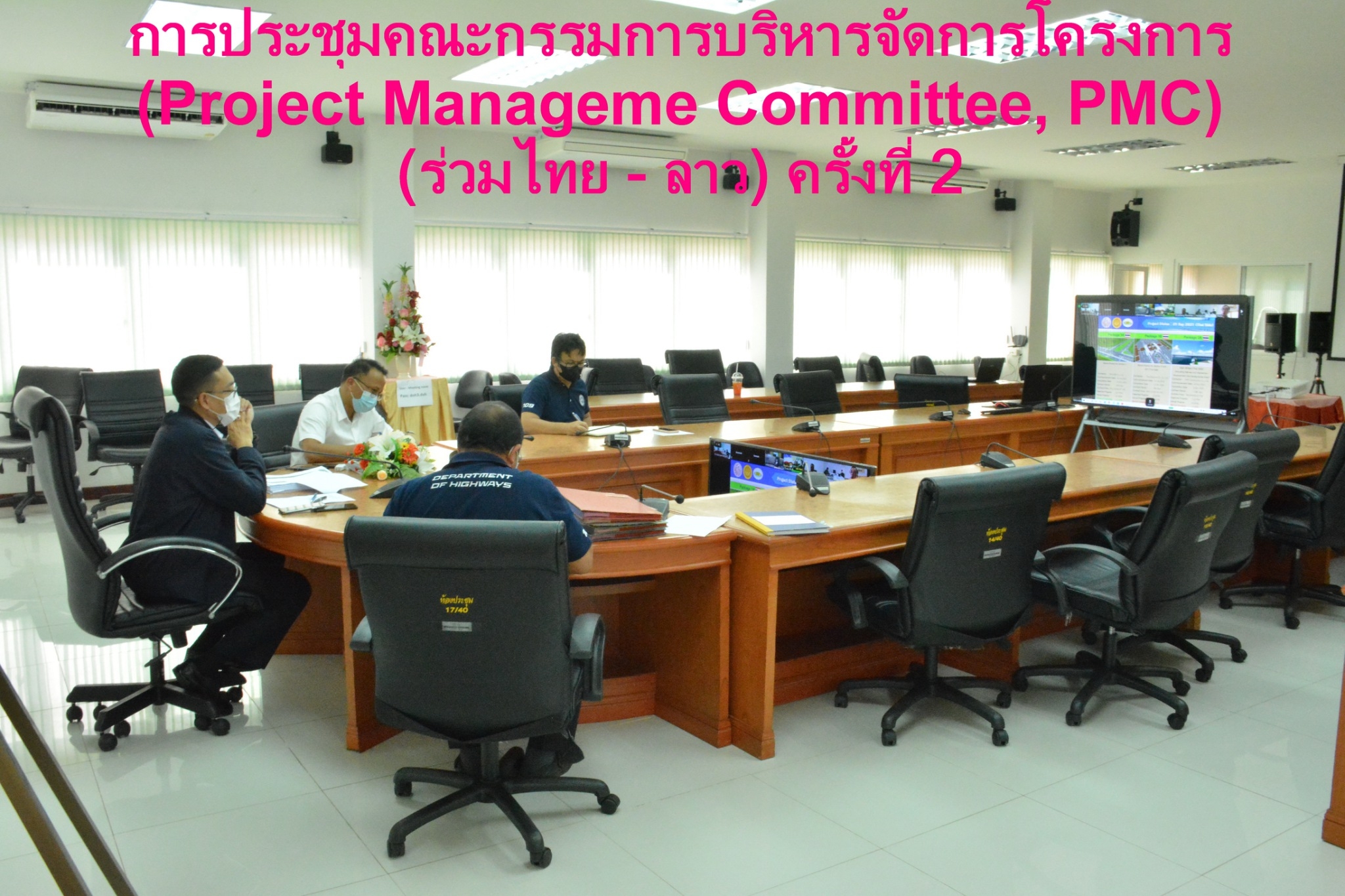 วันที่ 8 ตุลาคม 2564 ณ ห้องประชุมสำนักงานทางหลวงที่ 3 (สกลนคร) อาคารหลังใหม่ เวลา 13.00 น. นายพัลลภ จันทร์งามปภากูล ผู้อำนวยการสำนักงานทางหลวงที่ 3 พร้อมด้วย นายวุฒิพงศ์ คำภูแสน รองผู้อำนวยการสำนักงานทางหลวงที่ 3 ตำแหน่งที่1 ,นายประวัติ เสวตวงษ์ รองผู้อำนวยการสำนักงานทางหลวงที่ 3 ตำแหน่งที่2 ,นายผดุง ศรีโคตา วิศวกรโยธาส่วนแผนงาน ร่วมประชุมกรรมาธิการบริหารจัดการโครงการ (Project Management Committee, PMC) (ร่วมไทย - ลาว) โครงการก่อสร้างสะพานมิตรภาพไทย - ลาว แห่งที่ 5 (บึงกาฬ – บอลิคำไซ) ครั้งที่ 2 โดยผ่านระบบ Zoom Cloud Meeting จากห้องประชุมสวัดิ์วรวิถี ชั้น 2 อาคารพหลโยธิน กรมทางหลวง มีนายมนตรี เดชาสกุลสม รองอธิบดีกรมทางหลวง เป็นประธาน