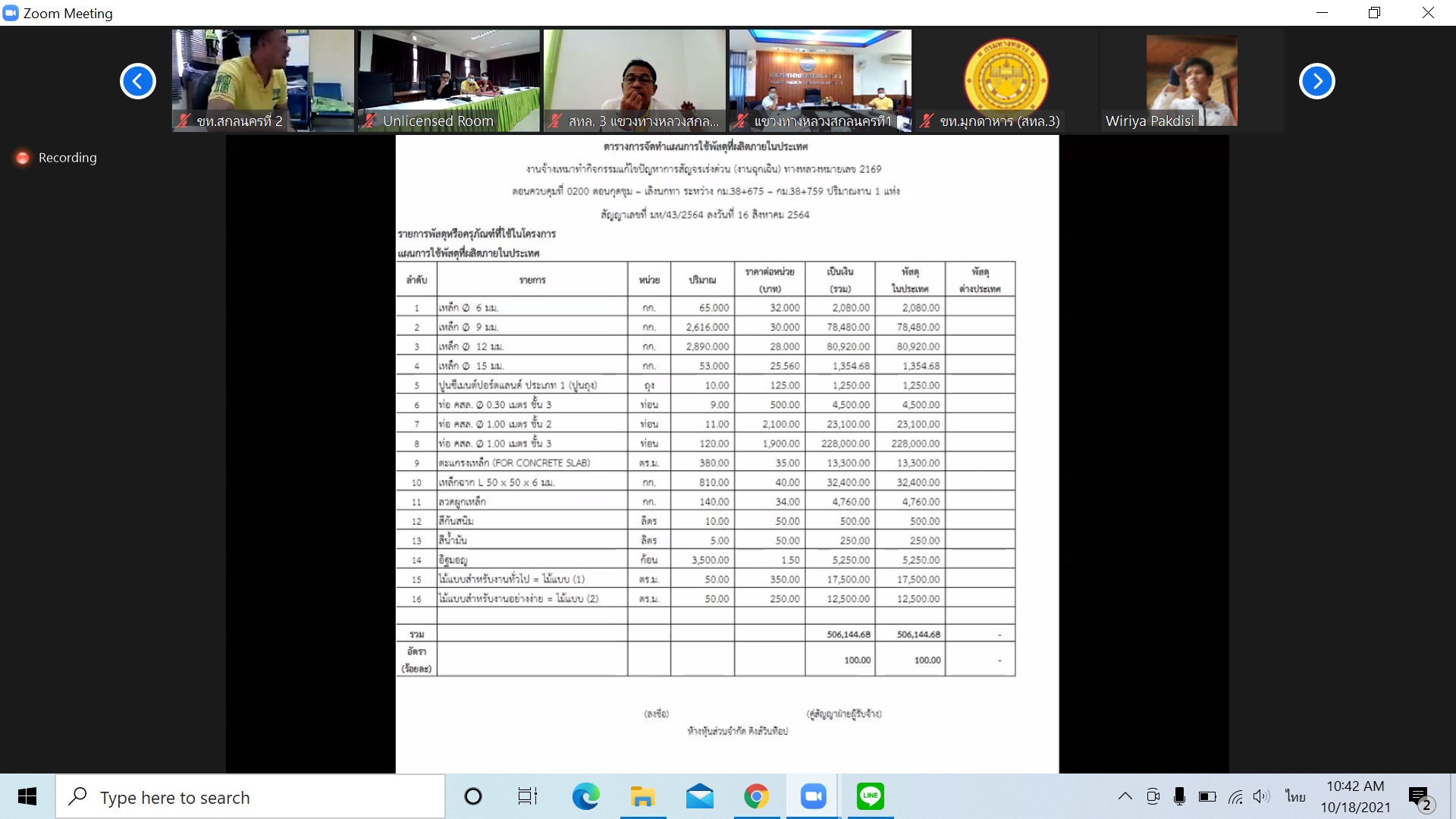 วันที่ 18 ตุลาคม 2564 ณ ห้องประชุมสำนักงานทางหลวงที่ 3 (สกลนคร) อาคารหลังใหม่ เวลา 10.00น.นายประวัติ เสวตวงษ์ รองผู้อำนวยการสำนักงานทางหลวงที่ 3 พร้อมด้วย,วิศวกรโยธา นายช่างโยธา ส่วนแผนงาน และส่วนควบุคมงานก่อสร้าง ร่วมประชุมเตรียมความพร้อมแนวทางการดำเนินงานจัดทำแผนพัสดุ(MIT)ปี 2565 โดยผ่านระบบ Zoom Cloud Meeting กับแขวงทางหลวงในสังกัดสำนักงานทางหลวงที่ 3(สกลนคร)