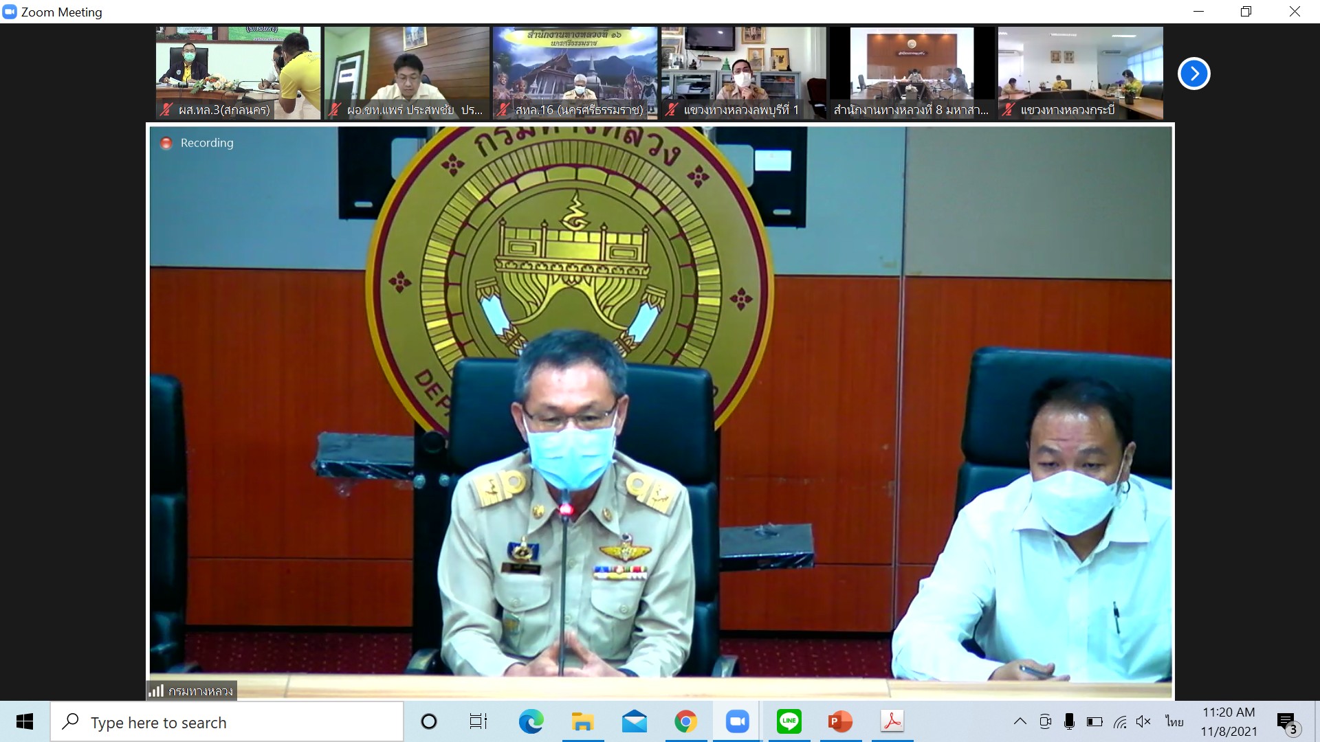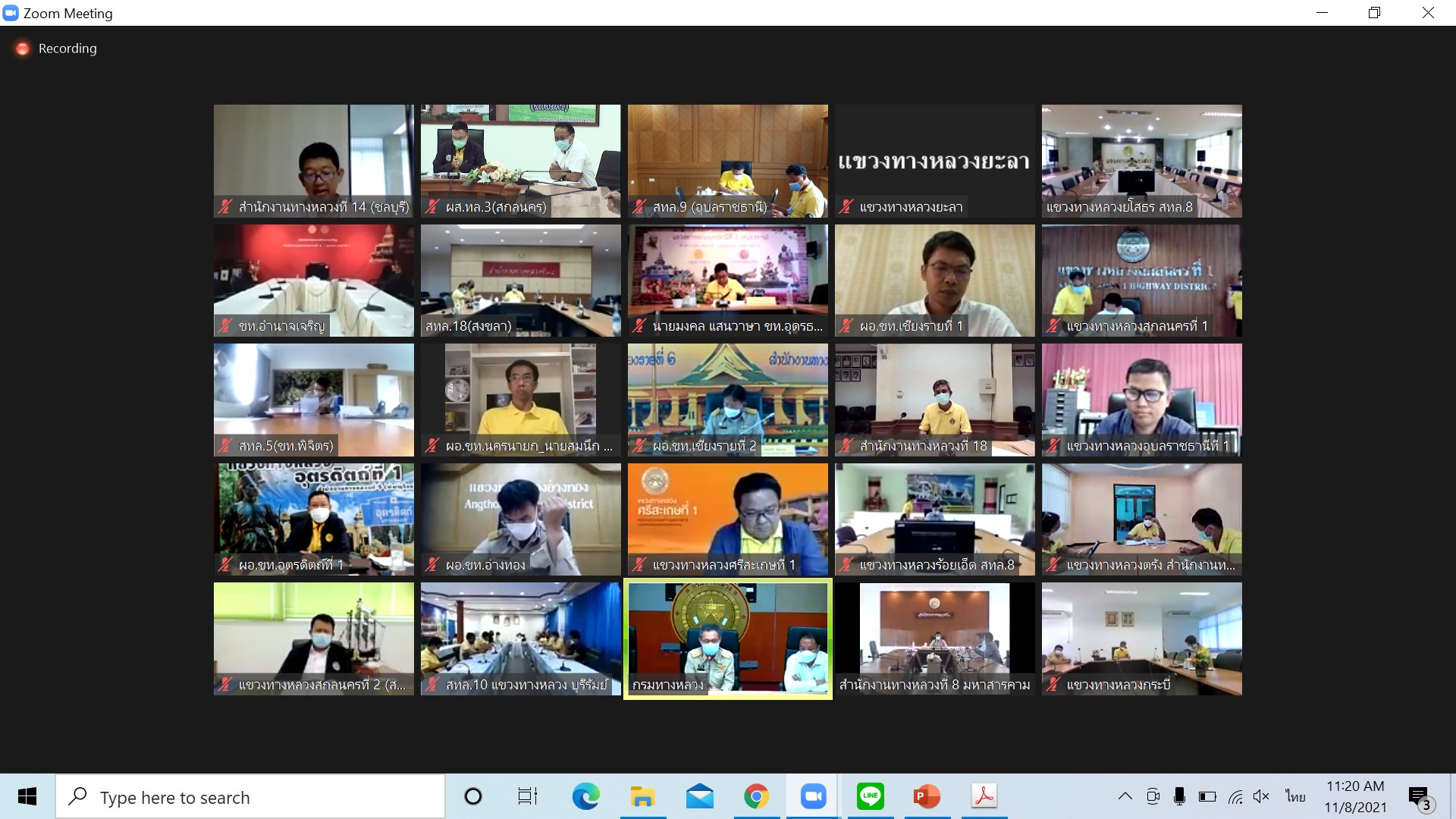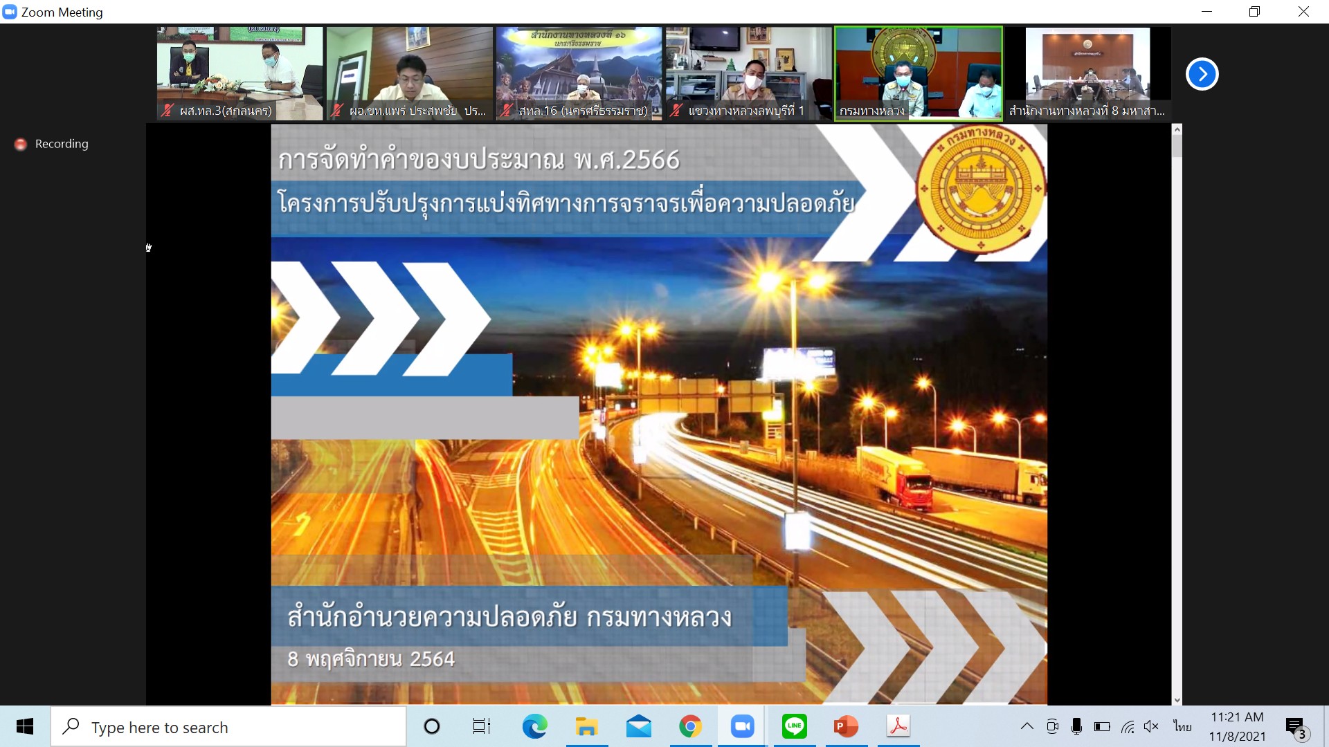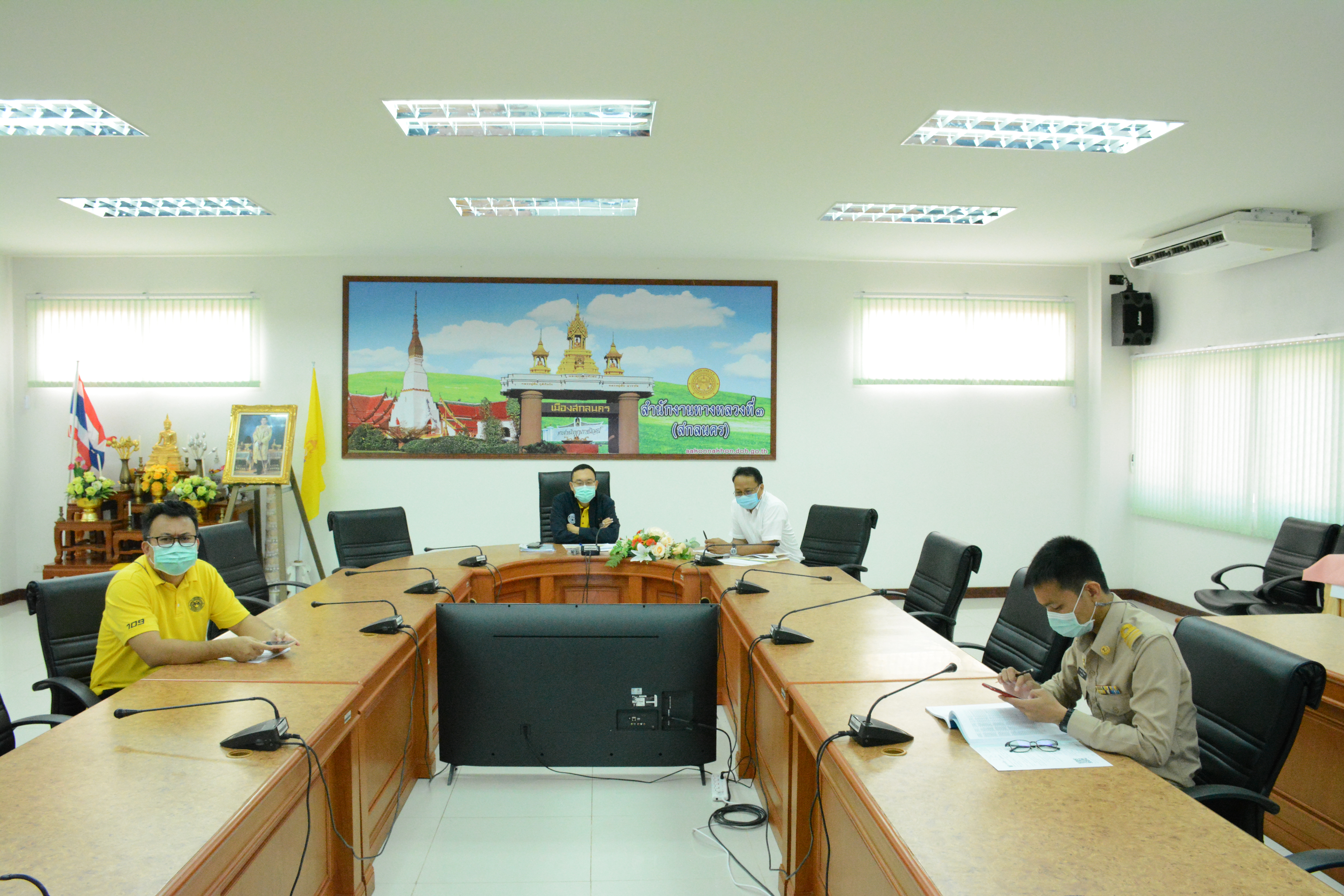 วันที่ 8 พฤศจิกายน 2564 ณ ห้องประชุมสำนักงานทางหลวงที่ 3 (สกลนคร) อาคารหลังใหม่ เวลา 11.00 น. นายพัลลภ จันทร์งามปภากูล ผู้อำนวยการสำนักงานทางหลวงที่ 3 พร้อมด้วยนายประวัติ เสวตวงษ์ รองผู้อำนวยการสำนักงานทางหลวงที่ 3 และ วิศวกรส่วนแผนงาน เข้าร่วมประชุมการเตรียมการจัดทำขอรับจัดสรรงบประมาณประจำปีงบประมาณ 2566 ครั้งที่ 2 ของกรมทางหลวง กระทรวงคมนาคม โดยผ่านระบบ Zoom Cloud Meeting จากห้องประชุมมนัส คอวนิช กรมทางหลวง มีนายมนตรี เดชาสกุลสม รองอธิบดีกรมทางหลวง ฝ่ายวิชาการ เป็นประธาน ในการประชุมครั้งนี้มีหน่วยงานในสังกัดกรมทางหลวง เข้าร่วมประชุมทางไกลโดยผ่านระบบ Zoom Cloud Meeting ทั้ง 18 สำนักงานทางหลวง