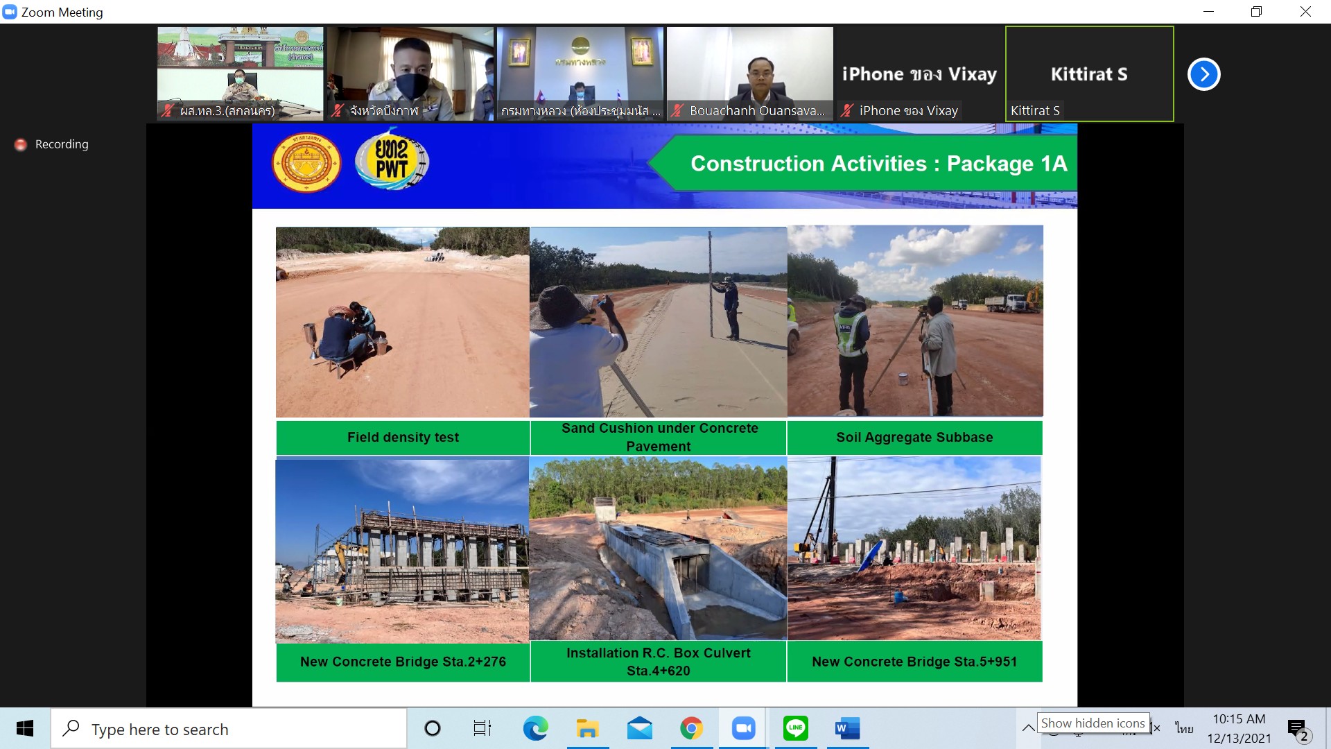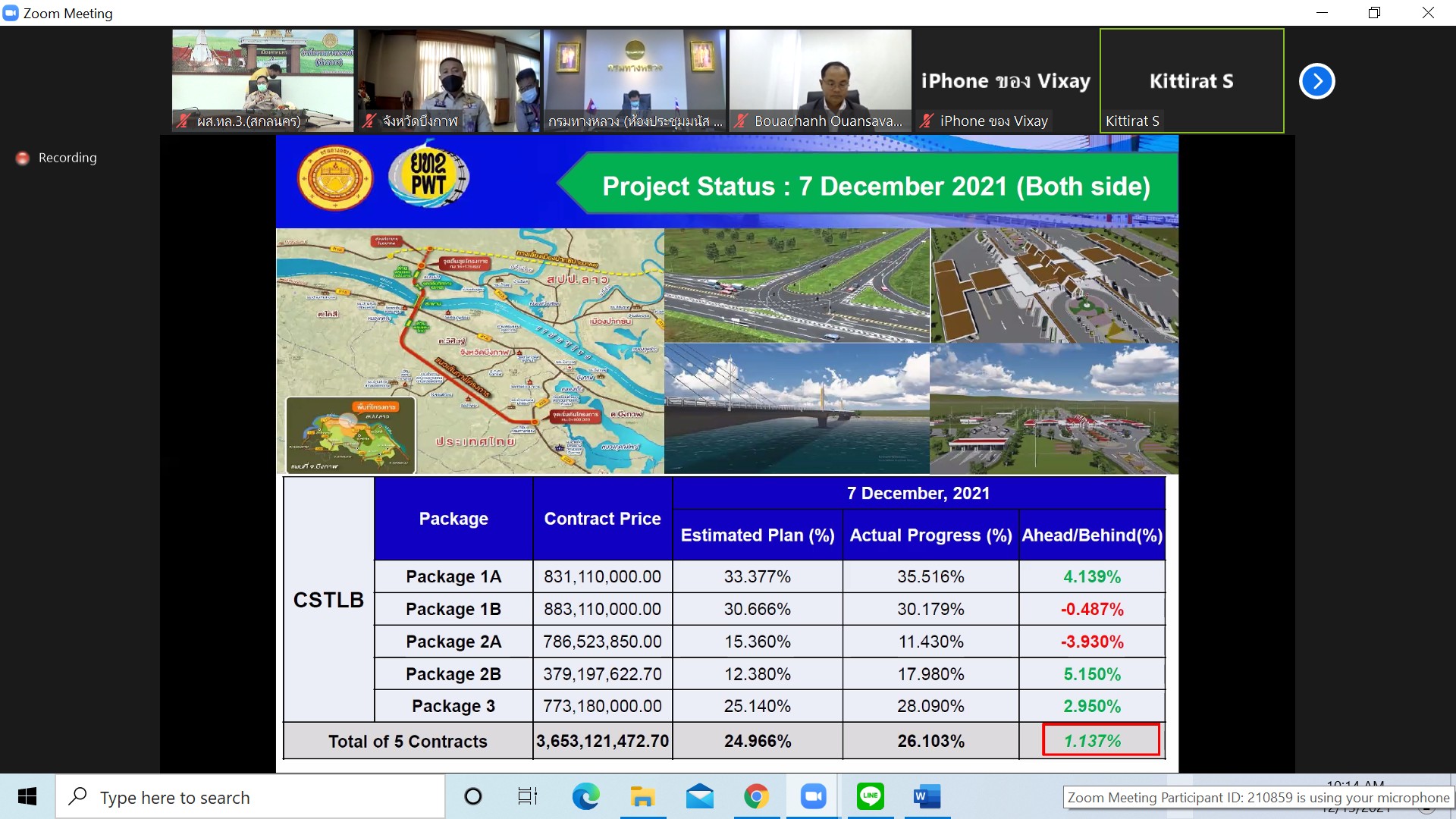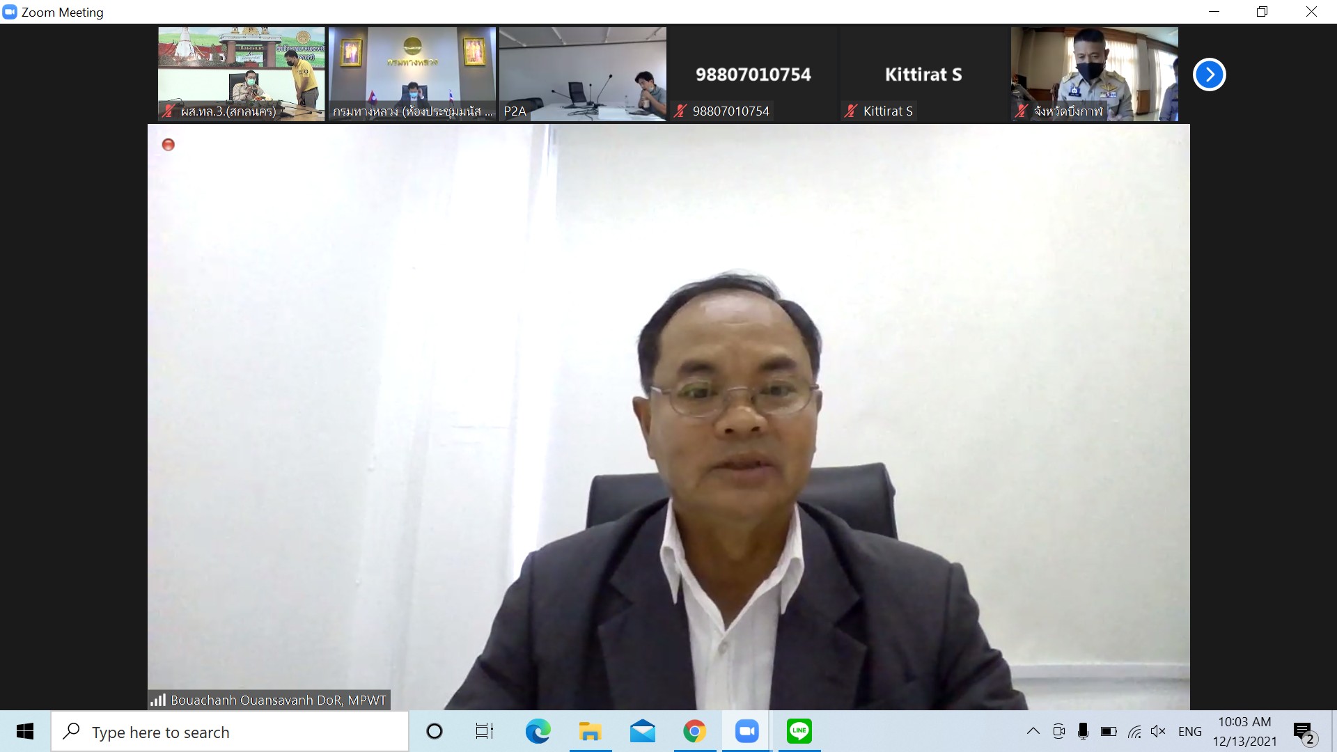 วันที่ 13 ธันวาคม 2564 ณ ห้องประชุมสำนักงานทางหลวงที่ 3 (สกลนคร) อาคารหลังใหม่ เวลา 09.30 น. นายพัลลภ จันทร์งามปภากูล ผู้อำนวยการสำนักงานทางหลวงที่ 3 พร้อมด้วย นางนภาพิศ สุวรรณศรี ผู้อำนวยการส่วนบริหารงานทั่วไป และนายผดุง ศรีโคตา วิศวกรโยธาปฏิบัติการ เข้าร่วมประชุมคณะกรรมการPCC สะพานมิตรภาพไทย-ลาว แห่งที่5 (บึงกาฬ-บอลิคำไซ) (ร่วมไทย-ลาว) ครั้งที่ 3 โดยผ่านระบบ Zoom Cloud Meeting จากห้องประชุมสวัสดิ์วรวิถี อาคารพหลโยธิน ชั้น 2 กรมทางหลวง เขตราชเทวี มีนายสราวุธ ทรงศิวิไล อธิบดีกรมทางหลวง เป็นประธานร่วมฝั่งไทย พร้อมรับฟังบรรยายสรุปผลการดำเนินงานโครงการก่อสร้างสะพานมิตรภาพไทย-ลาว แห่งที่5 (บึงกาฬ-บอลิคำไซ) ทั้ง 3 ตอน