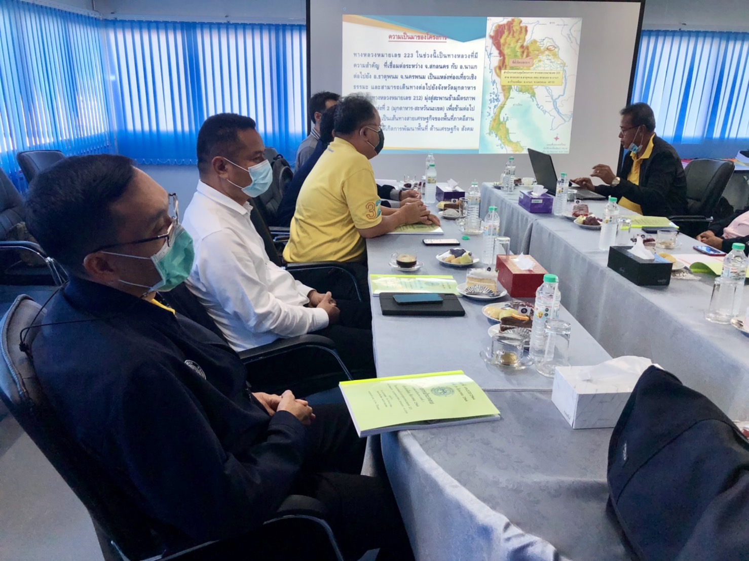 วันที่ 21 ธันวาคม 2564 เวลา10.00น. นายนรินทร์ ศรีสมพันธุ์ วิศวกรใหญ่ด้านวางแผนและวางโครงการก่อสร้าง ประธานกรรมการตรวจรับพัสดุ พร้อมด้วยนายพัลลภ จันทร์งามปภากูล ผู้อำนวยการสำนักงานทางหลวงที่ 3 กรรมการตรวจรับพัสดุ และคณะกรรมการตรวจรับพัสดุ ลงพื้นที่ดูงานโครงการก่อสร้างทางหลวงหมายเลข 223 สาย สกลนคร – อ.นาแก ตอน สกลนคร – อ.นาแก ระหว่าง กม.26+250-กม.39+817,กม.50+981-กม.53+164 ระยะทาง 15.750 กม. วงเงินงบประมาณ 599,292,000 บาท (ตรวจรับงวดที่ 1 ) เพื่อให้การดำเนินงานก่อสร้างทางหลวงแผ่นดินได้ตามแบบมาตรฐานของกรมทางหลวง กระทรวงคมนาคม โดยมี บริษัท ซอย์ซัพพอร์ติ้ง จำกัด เป็นผู้รับจ้าง พร้อมรับฟังบรรยายสรุปผลการดำเนินงานของโครงการฯ ณ ห้องประชุมสำนักงานชั่วคราวของโครงการฯ ควบคุมงานก่อสร้างโดยสำนักก่อสร้างทางที่ 3 กรมทางหลวง กระทรวงคมนาคม