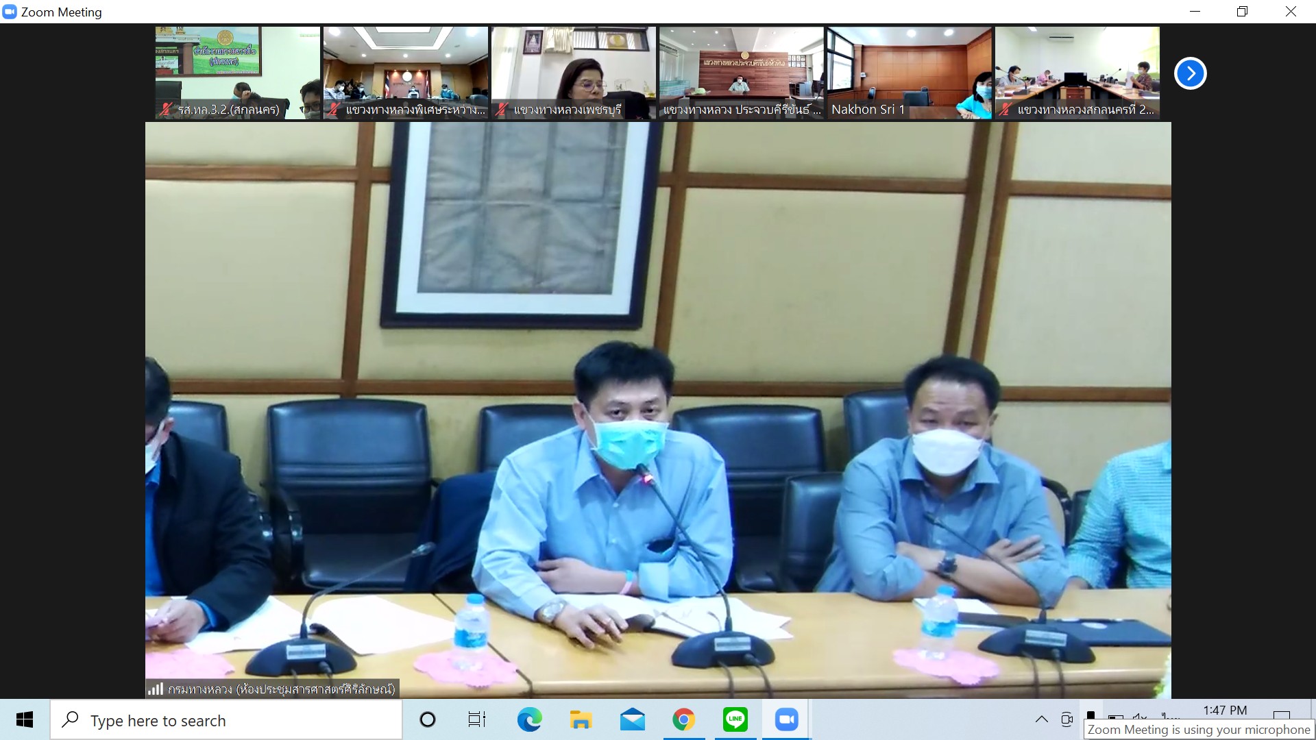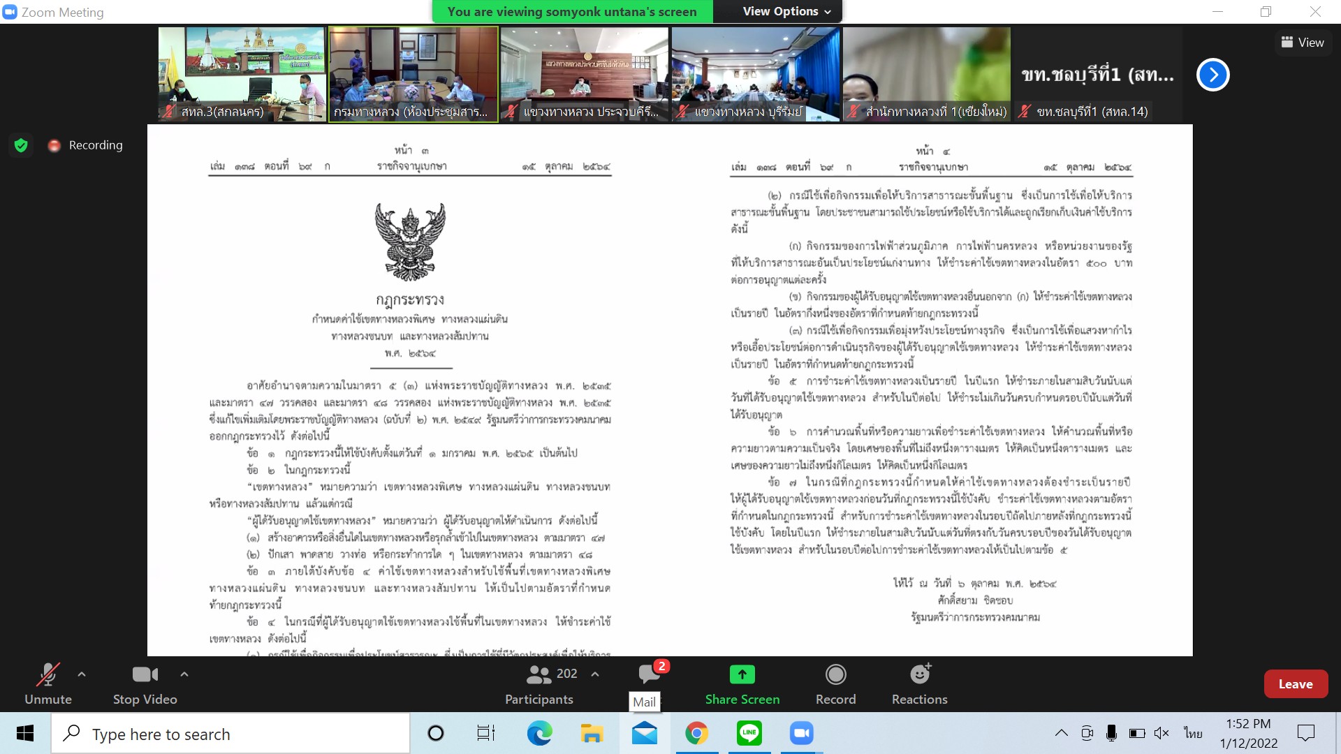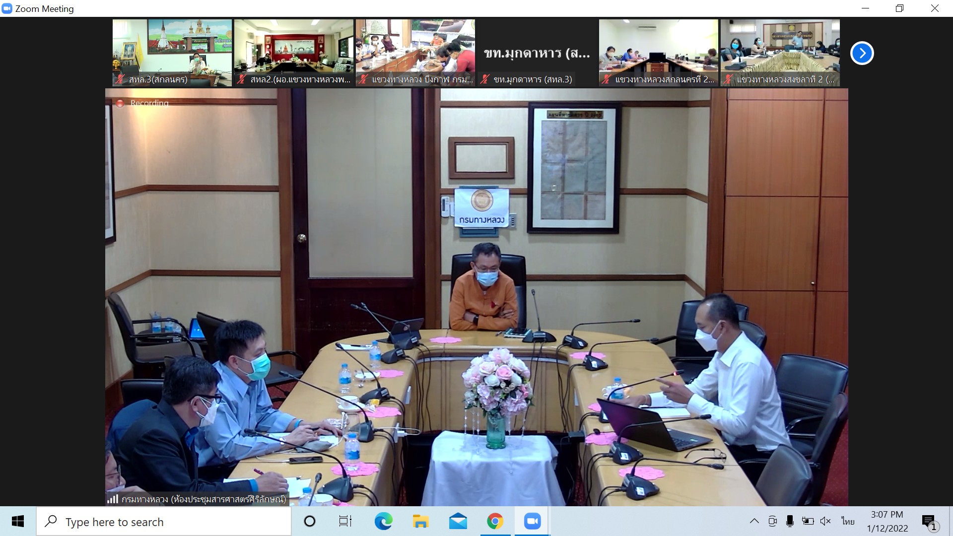 วันที่ 12 มกราคม 2564 ณ ห้องประชุมสำนักงานทางหลวงที่ 3 (สกลนคร) อาคารหลังใหม่ เวลา 13.30 น. นายพัลลภ จันทร์งามปภากูล ผู้อำนวยการสำนักงานทางหลวงที่ 3 พร้อมด้วย นายวุฒิพงศ์ คำภูแสน รองผู้อำนวยการสำนักงานทางหลวงที่ 3 ตำแหน่งที่1 นายประวัติ เสวตวงษ์ รองผู้อำนวยการสำนักงานทางหลวงที่ 3 ตำแหน่งที่2 นายพัฒนา ไตรโยธี ผู้อำนวยส่วนอำนวยความปลอดภัย นายหนูกาญ เจริญไชย ผู้อำนวยส่วนกฎหมายและกรรมสิทธิ์ที่ดิน นายผดุง ศรีโคตา วิศวกรโยธาส่วนแผนงาน เจ้าหน้าที่ส่วนอำนวยความปลอดภัย และเจ้าหน้าที่ส่วนกฎหมายและกรรมสิทธิ์ที่ดิน เข้าร่วมประชุมแนวทางปฏิบัติติตามกฎกระทรวงค่าใช้เขตทางหลวงพิเศษ ทางหลวงแผ่นดิน ทางหลวงชนบท และทางหลวงสัมปทาน 2564 โดยผ่านระบบ Zoom Cloud Meeting จากห้องประชุมสารศาสตร์ศิริลักษณ์ อาคารพลหโยธิน กรมทางหลวง มีนายมนตรี เดชาสกุลสม รองอธิบดีกรมทางหลวง เป็นประธาน