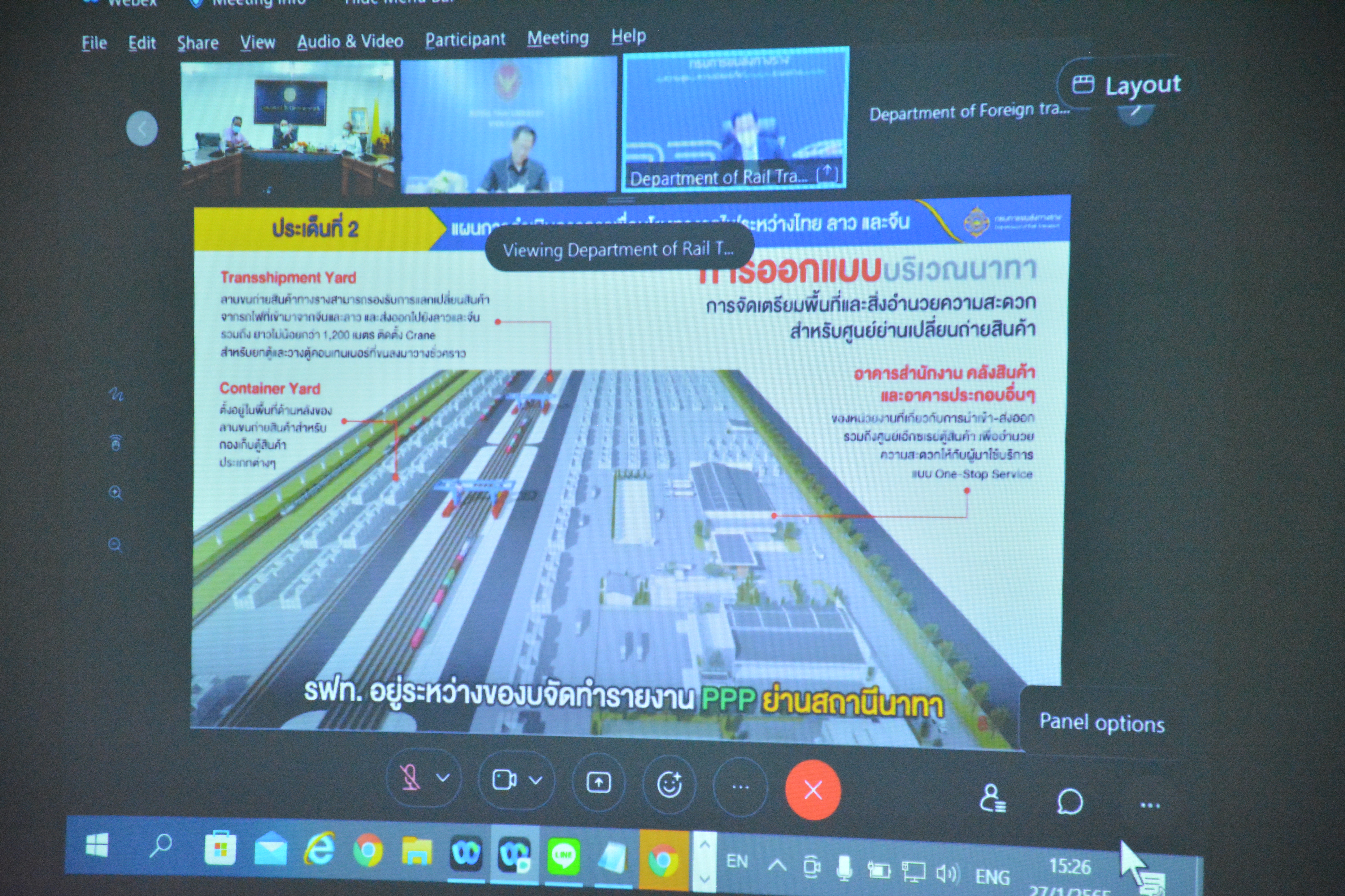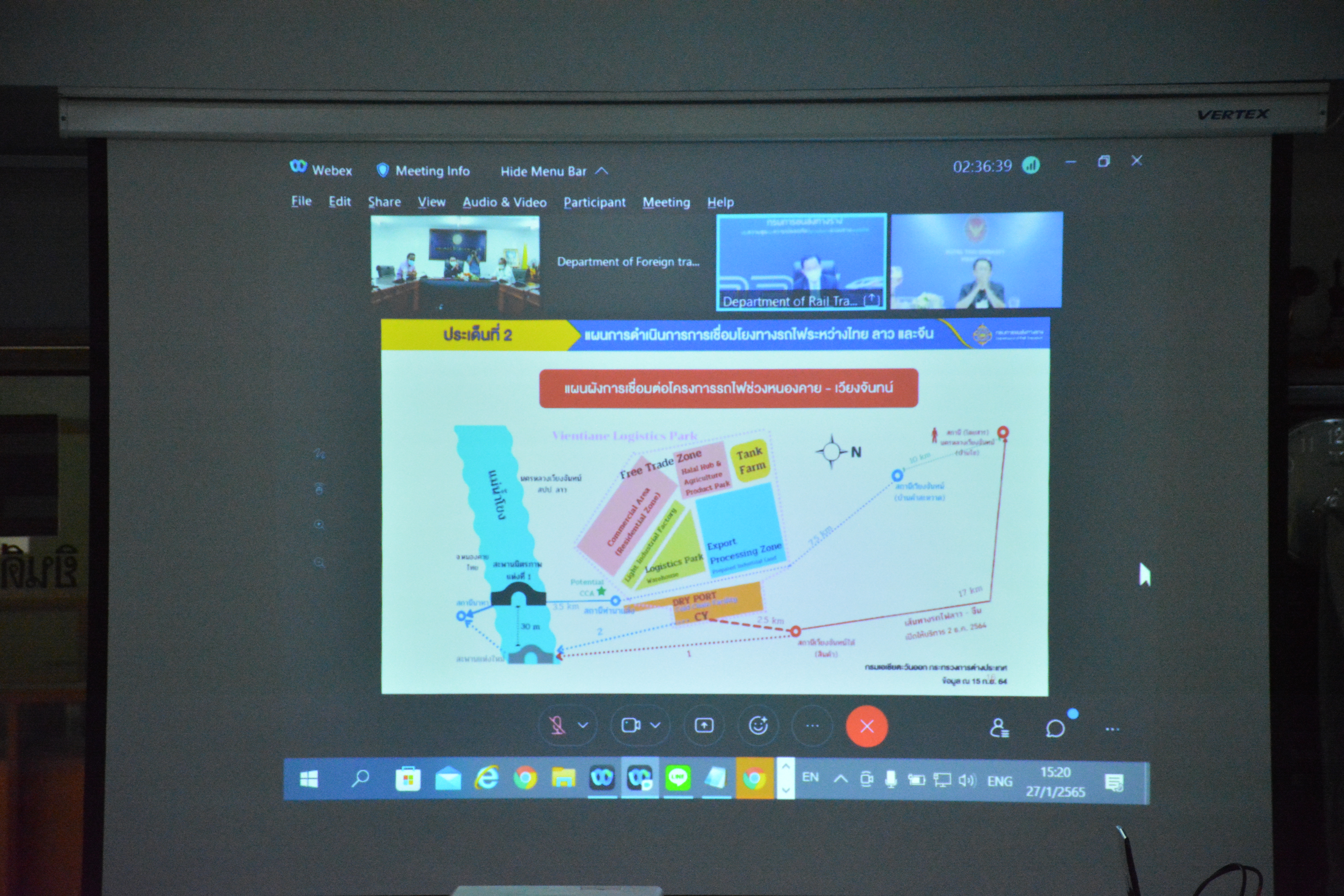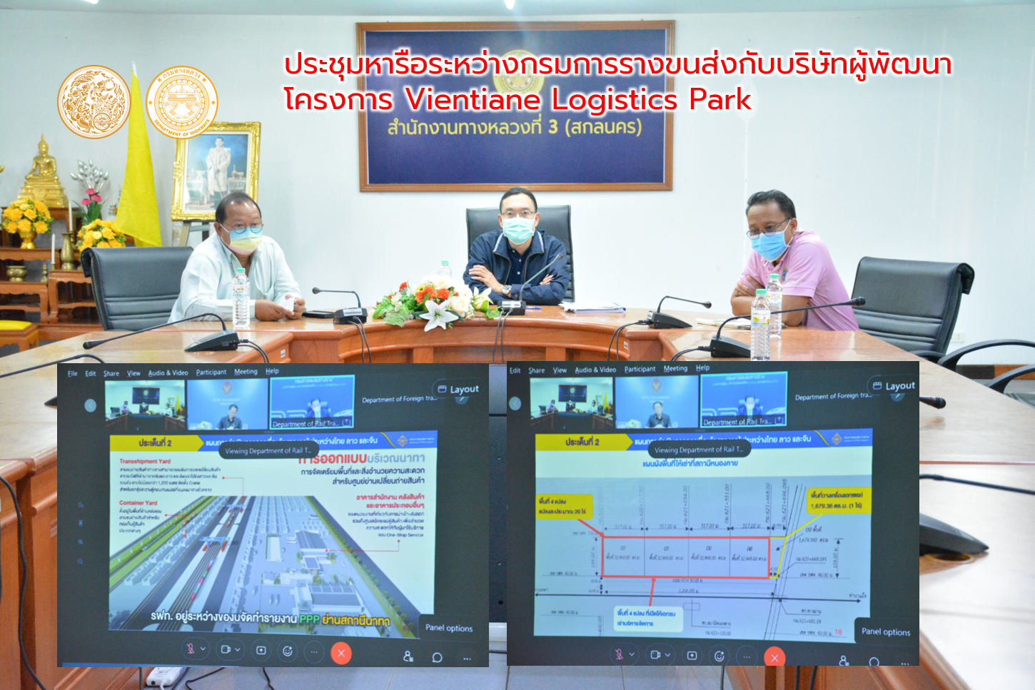 วันที่ 27 มกราคม 2565 ณ ห้องประชุมทวีพัฒน์ ตินะมาส สำนักงานทางหลวงที่ 3 (สกลนคร) เวลา 15.00 นายพัลลภ จันทร์งามปภากูล ผู้อำนวยการสำนักงานทางหลวงที่ 3 พร้อมด้วยนายวุฒิพงศ์ คำภูแสน รองผู้อำนวยการสำนักงานทางหลวงที่ 3 ตำแหน่งที่1 นายประวัติ เสวตวงษ์ รองผู้อำนวยการสำนักงานทางหลวงที่ 3 ตำแหน่งที่2 นายกษิดิศ สินโน วิศวกรโยธาปฏิบัติการ ส่วนสำรวจและออกแบบ และนายธนพนธ์ กิตติธรรม นายช่างโยธาชำนาญงาน ส่วนแผนงาน ร่วมประชุมหารือระหว่างกรมการรางขนส่งกับบริษัทผู้พัฒนาโครงการ Vientiane Logistics Park เพื่อรวบรวมและแลกเปลี่ยนข้อมูลการเชื่อมต่อรถไฟลาว-จีน โดยผ่านระบบ Cisco Webex Meetings