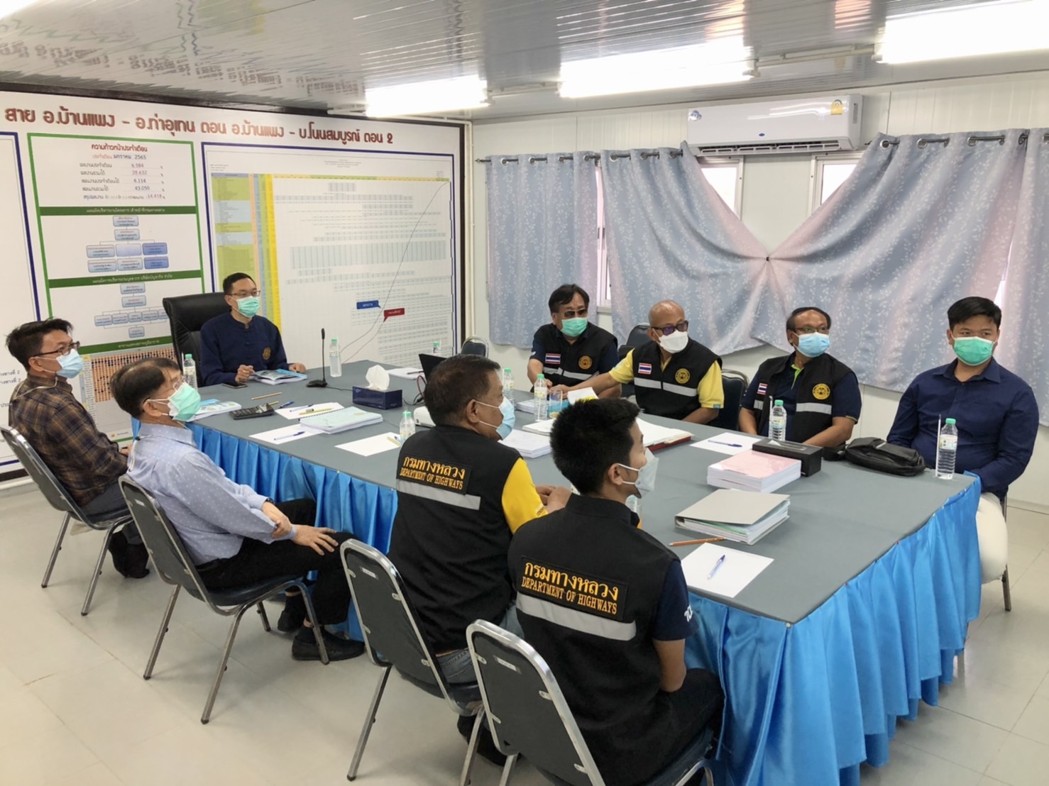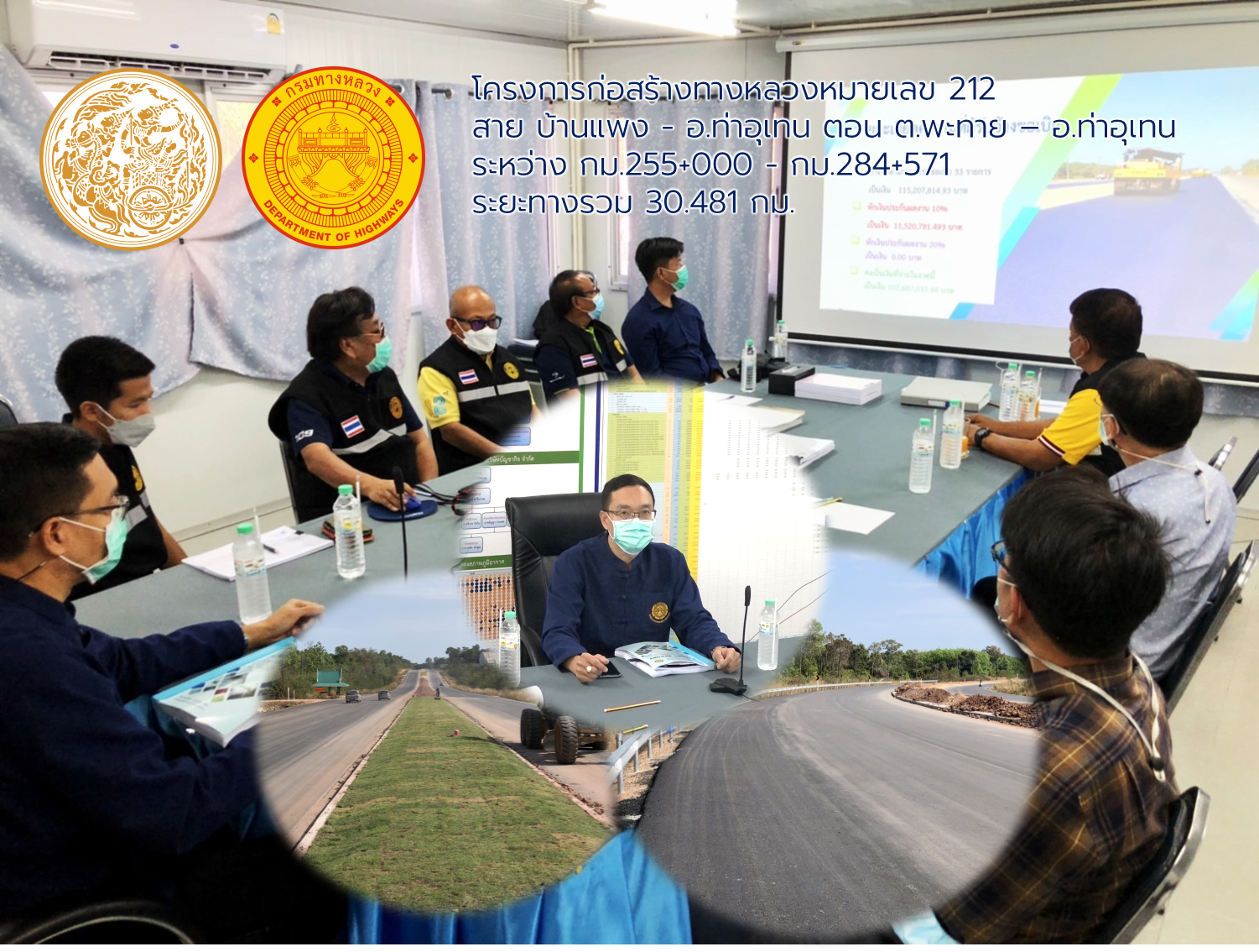 วันที่ 4 กุมภาพันธ์ 2565 เวลา14.00น. นายอภิชาติ จันทรทรัพย์ รองอธิบดีกรมทางหลวง ประธานกรรมการตรวจรับพัสดุ มอบหมายให้นายพัลลภ จันทร์งามปภากูล ผู้อำนวยการสำนักงานทางหลวงที่ 3 กรรมการตรวจรับพัสดุ และคณะกรรมการตรวจรับพัสดุ ลงพื้นที่ดูงานโครงการก่อสร้างทางหลวงหมายเลข 212สาย บ้านแพง - อ.ท่าอุเทน ตอน ต.พะทาย – อ.ท่าอุเทน ระหว่าง กม.255+000 - กม.284+571 ระยะทางรวม 30.481 กม. วงเงินงบประมาณ 1,392,800,000 บาท (ตรวจรับงานงวดที่ 14 ) เพื่อให้การดำเนินงานก่อสร้างทางหลวงแผ่นดินได้ตามแบบมาตรฐานของกรมทางหลวง โดยมี บริษัท บัญชากิจ จำกัด เป็นผู้รับจ้าง พร้อมรับฟังบรรยายสรุปผลการดำเนินงานของโครงการฯ ณ ห้องประชุมสำนักงานชั่วคราวของโครงการฯ ควบคุมการก่อสร้างโดยสำนักก่อสร้างที่ 2 กรมทางหลวง กระทรวงคมนาคม