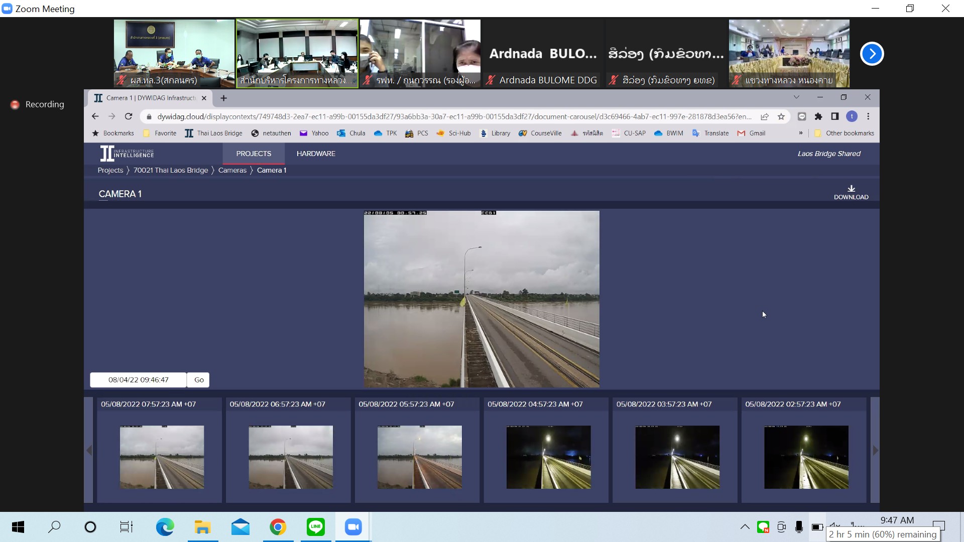 วันที่ 5 สิงหาคม 2565 ณ ห้องประชุมทวีพัฒน์ ตินะมาส สำนักงานทางหลวงที่ 3 (สกลนคร) เวลา 09.30 น.นายพัลลภ จันทร์งามปภากูล ผู้อำนวยการสำนักงานทางหลวงที่ 3 พร้อมด้วยนายวุฒิพงศ์ คำภูแสน รองผู้อำนวยการสำนักงานทางหลวงที่ 3 ตำแหน่งที่1 นายประวัติ เสวตวงษ์ รองผู้อำนวยการสำนักงานทางหลวงที่ 3 ตำแหน่งที่2 นายพงษ์ศักดิ์ อาจลา ผู้อำนวยการส่วนสำรวจและออกแบบ นายอำนาจ สาไชยันต์ ผู้อำนวยการส่วนเทคโนโลยีสารสนเทศ และนายธนพนธ์ กิตติธรรม นายช่างโยธาชำนาญงาน เข้าร่วมประชุมคณะกรรมการกำกับโครงการ งานจ้างที่ปรึกษาโครงการตรวจสอบ ประเมิน ติดตามและจัดทำแผนงานบูรณะสะพานมิตรภาพไทย-ลาว (หนองคาย-เวียงจันทน์) ระยะที่1(เร่งด่วน) ครั้งที่ 2/2565 โดยผ่านระบบ Zoom Cloud Meeting จากห้องประชุมชั้น 5 สำนักบริหารโครงการทางหลวงระหว่างประเทศ กรมทางหลวง ในการประชุมครั้งนี้มีคณะกรรมการฯจากสาธารณรัฐประชาธิปไตยประชาชนลาว เข้าร่วมประชุมด้วย