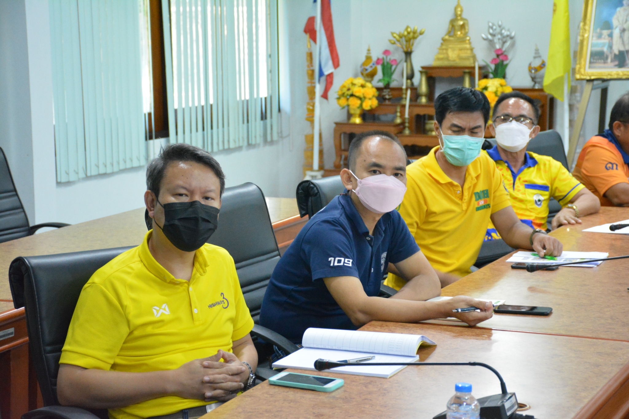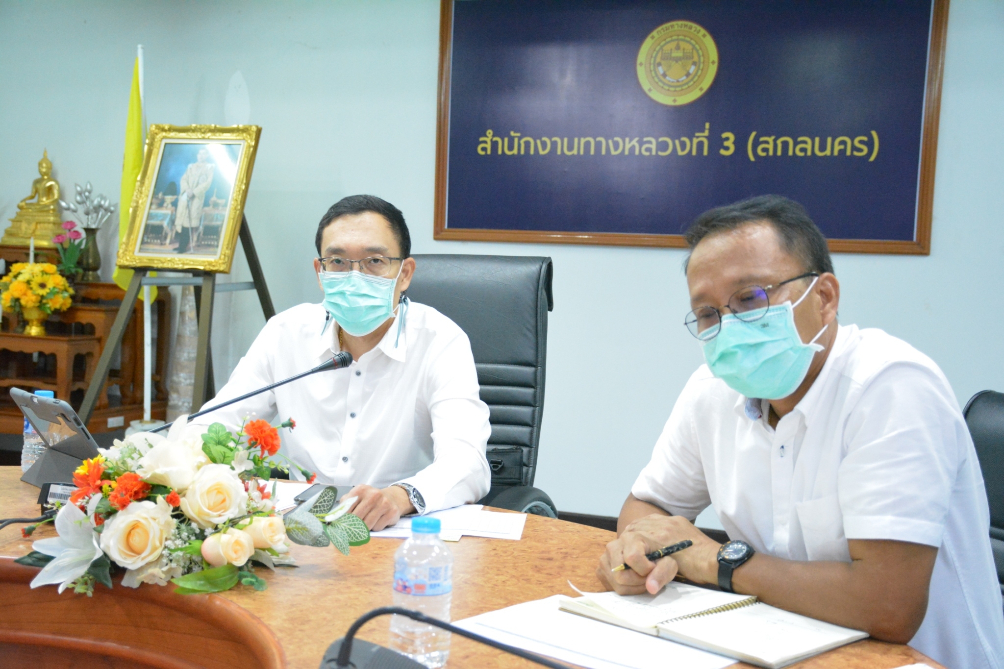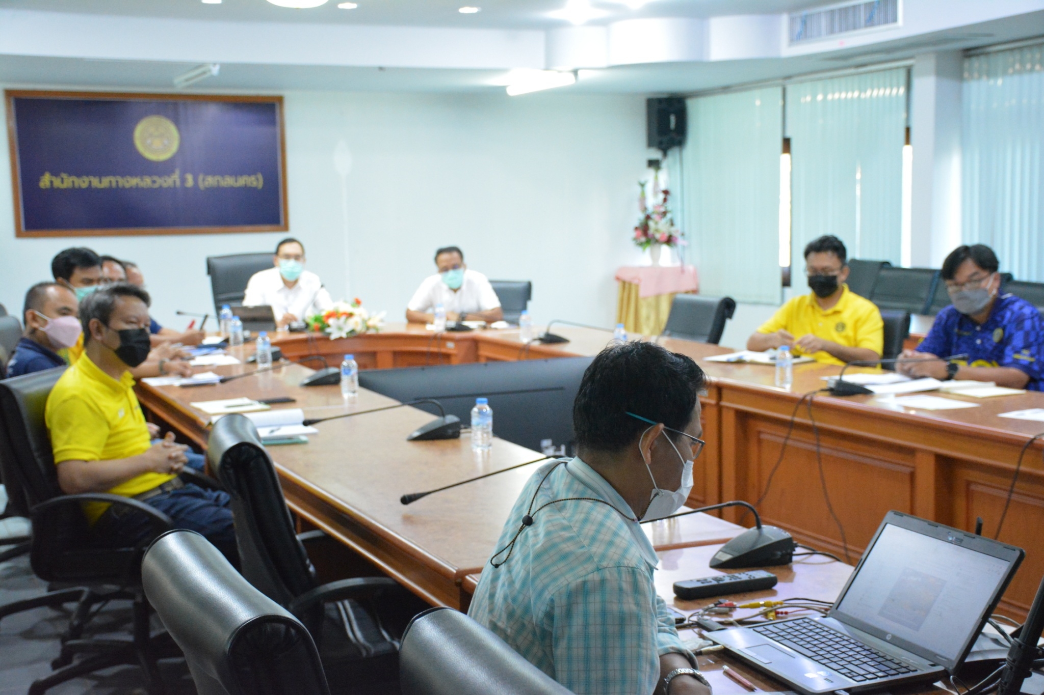 วันที่ 29 สิงหาคม 2565 เวลา 16.00 น. นายพัลลภ จันทร์งามปภากูล ผู้อำนวยการสำนักงานทางหลวงที่ 3 พร้อมด้วยนายวุฒิพงศ์ คำภูแสน รองผู้อำนวยการสำนักงานทางหลวงที่ 3 ตำแหน่งที 1 นายประวัติ เสวตวงษ์ รองผู้อำนวยการสำนักงานทางหลวงที่ 3 ตำแหน่งที่ 2 นายชินชพัทธ์ มุลทาทอง ผู้อำนวยการส่วนแผนงาน นายรณฤทธิ์ ภูผิวเดือน ผู้อำนวยการส่วนควบคุมงานก่อสร้าง นายพงษ์ศักดิ์ อาจลา ผู้อำนวยการส่วนสำรวจและออกแบบ และวิศวกรโยธา นายช่างโยธา ส่วนแผนงาน ร่วมประชุมรับฟังนโยบายของกรมทางหลวง โดยผ่านระบบ Zoom Cloud Meeting จากห้องประชุมมนัส คอวนิช กรมทางหลวง มีนายสราวุธ ทรงศิวิไล อธิบดีกรมทางหลวง เป็นประธาน การประชุมในครั้งนี้มีหน่วยสังกัดกรมทางหลวงทั้ง 18 สำนักงานทางหลวงเข้าร่วมประชุม