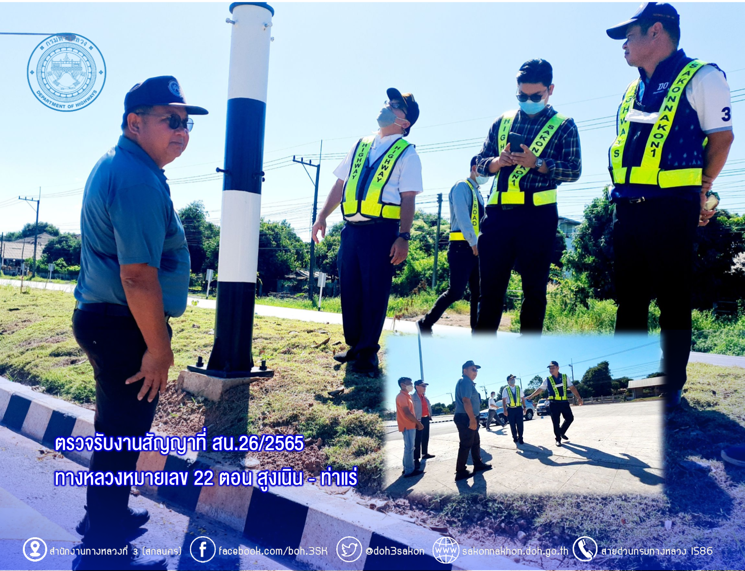 นายวุฒิพงศ์ คำภูแสน รองผู้อำนวยการสำนักงานทางหลวงที่ 3 ตำแหน่งที่ 1 เป็นประธานคณะกรรมการตรวจรับพัสดุ พร้อมด้วยนาย ประสิทธิ์ สาขา ผู้อำนวยการแขวงทางหลวงสกลนครที่ 1กรรมการตรวจรับพัสดุ และคณะกรรมการตรวจรับพัสดุ ลงพื้นที่ตรวจรับงาน สัญญาที่ สน.26 /65 งานจ้างเหมาทำการปรับปรุงจุดเสี่ยงและบริเวณอันตรายบนทางหลวง ทางหลวงหมายเลข 22 ตอน สูงเนิน-ท่าแร่ กม.152+600-กม.153+200 โดยมีกิจการร่วมค้า เอสเฮซ-เอ็นเอสซี เป็นผู้รับจ้างเพื่อให้การดำเนินงานก่อสร้างทางหลวงแผ่นดินได้ตามแบบมาตรฐานของกรมทางหลวง กระทรวงคมนาคม