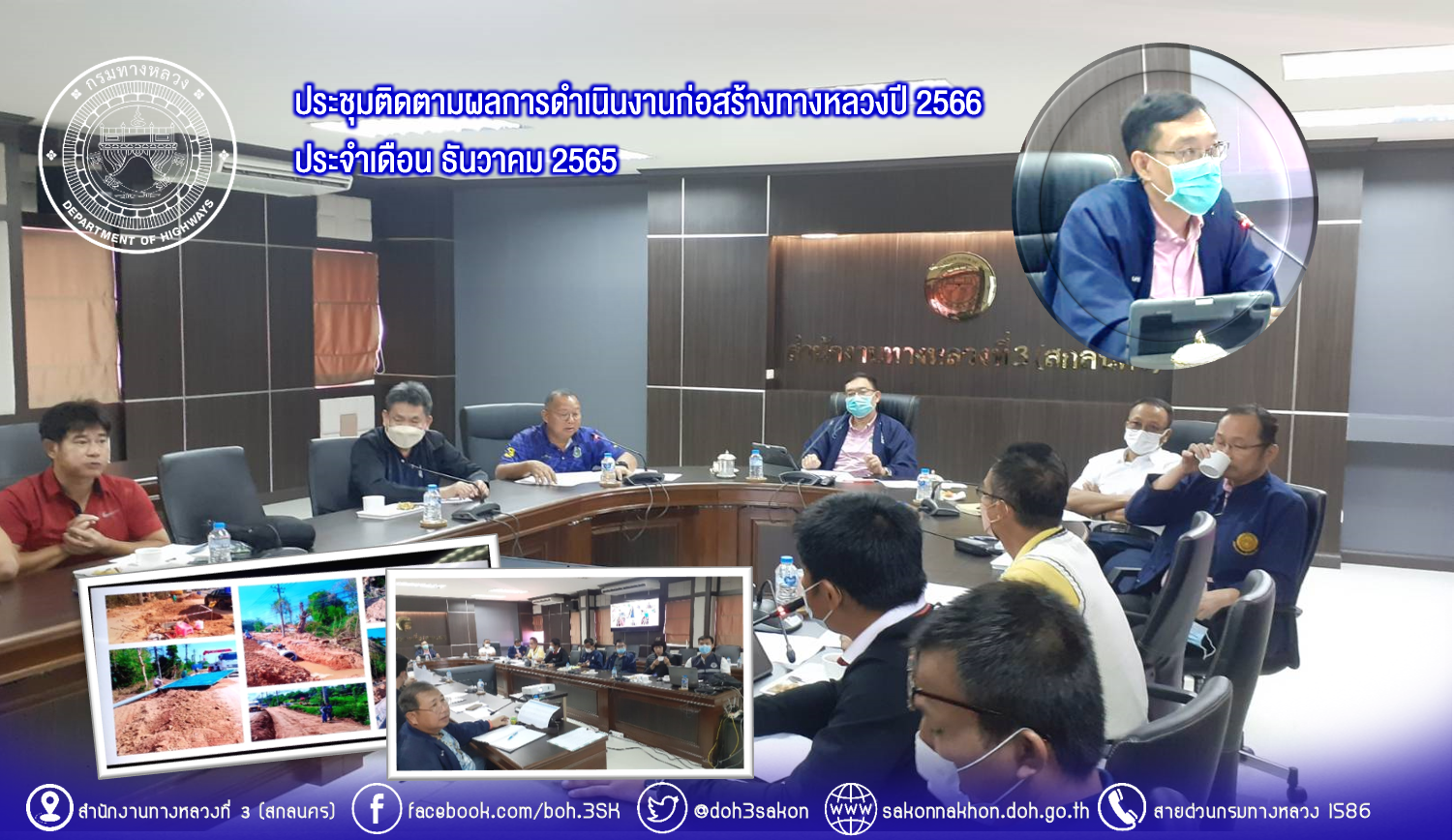 นายพัลลภ จันทร์งามปภากูล ผู้อำนวยการสำนักงานทางหลวงที่ 3 เป็นประธาน ประชุมติดตามผลการดำเนินงานก่อสร้างทางหลวงปี 2566 ของส่วนควบคุมงานก่อสร้างและส่วนตรวจสอบและวิเคราะห์ทางวิศวกรรม ประจำเดือน ธันวาคม 2565