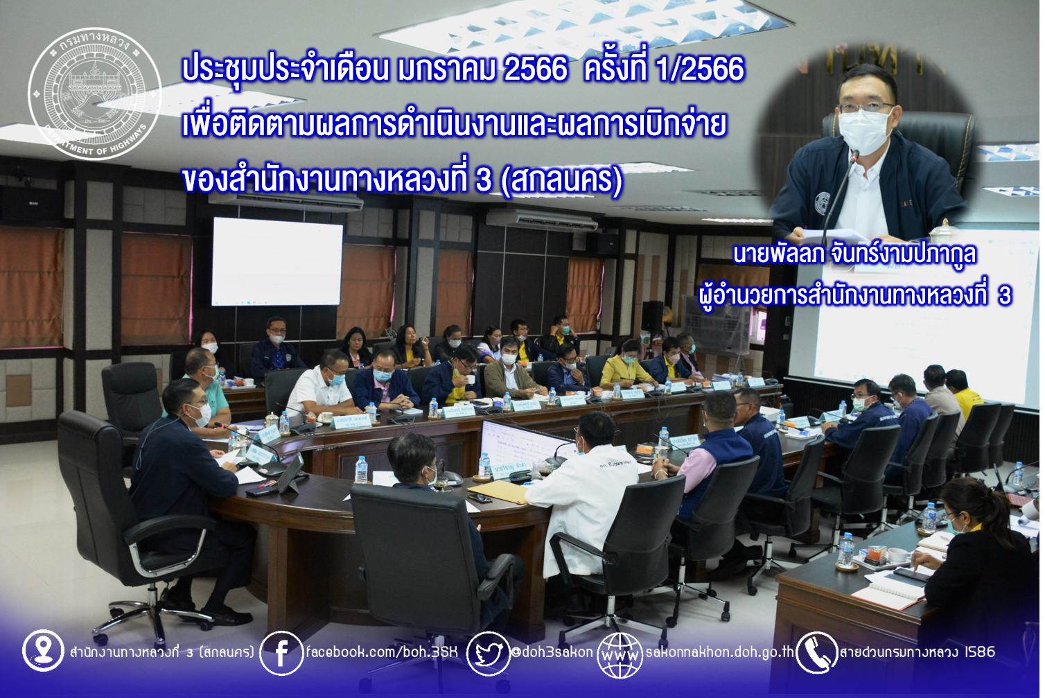 นายพัลลภ จันทร์งามปภากูล ผู้อำนวยการสำนักงานทางหลวงที่ 3 เป็นประธาน ประชุมประจำเดือน มกราคม 2566 ครั้งที่ 1/2566