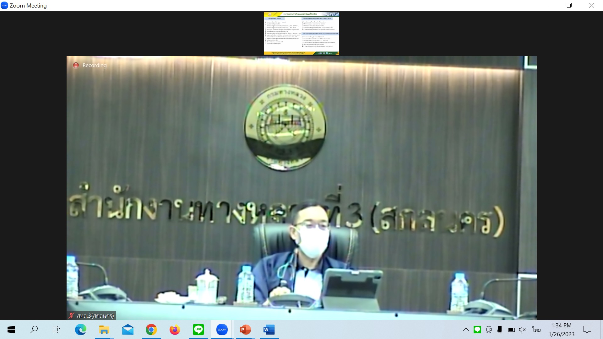 สำนักงานทางหลวงที่ 3(สกลนคร) นายพัลลภ จันทร์งามปภากูล ผู้อำนวยการสำนักงานทางหลวงที่ 3 พร้อมด้วยนายชินนพัทธ์ มุลทาทอง ผู้อำนวยการส่วนแผนงาน นายพงษ์ศักดิ์ อาจลา ผู้อำนวยการส่วนสำรวจและออกแบบ นายกษิดิศ สินโน วิศวโยธาปฎิบัติการ และนายธนพนธ์ กิตติธรรม นายช่างโยธาชำนาญงาน ร่วมประชุมผ่านระบบ Zoom Meeting ณ ห้องประชุมทวีพัฒน์ ตินะมาส ชั้น 3 อาคารหลังใหม่