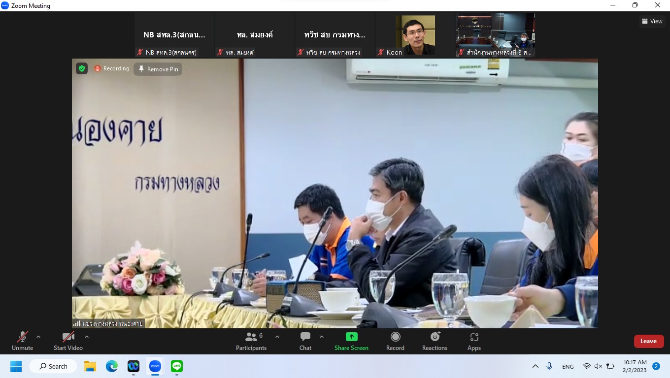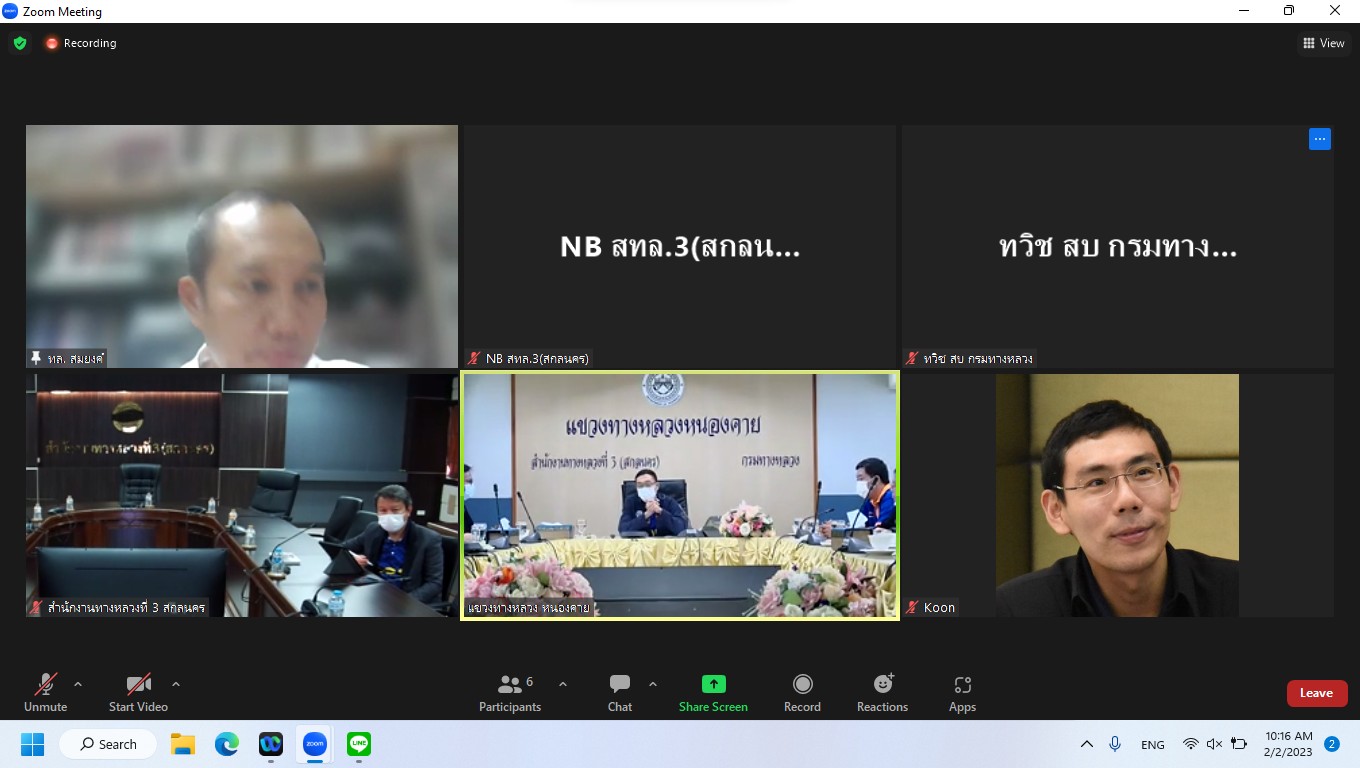 สำนักงานทางหลวงที่ 3 (สกลนคร) มีนายธนพนธ์ กิตติธรรม นายช่างโยธาชำนาญงาน ส่วนแผนงาน เข้าร่วมประชุมผ่านระบบ Zoom Cloud Meeting ณ ห้องประชุมทวีพัฒน ตินะมาส ชั้น 3 อาคารหลังใหม่