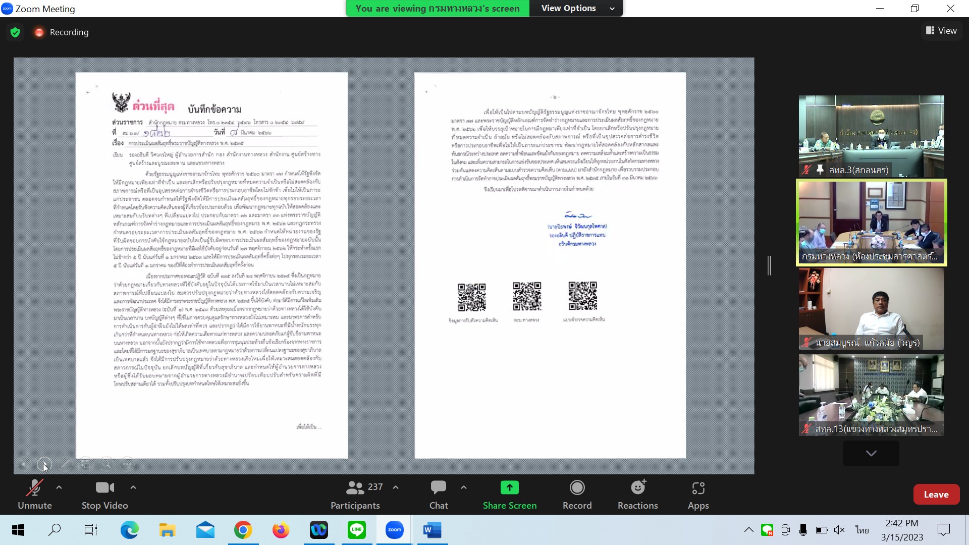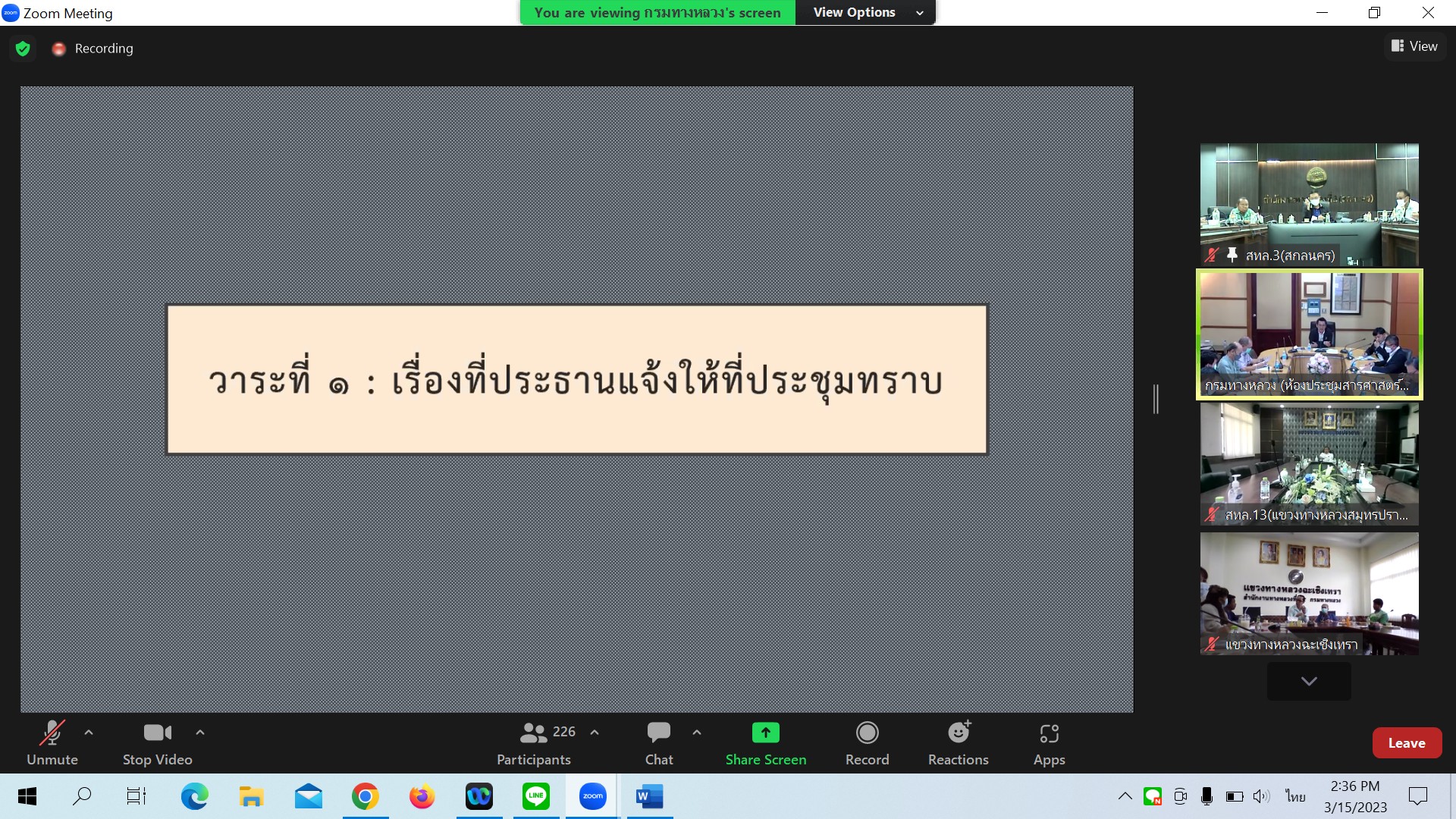 ในการประชุมครั้งนี้มี หน่วยงานสังกัดกรมทางหลวง เข้าร่วมประชุมผ่านระบบ Zoom Cloud Meeting พร้อมกันทั้ง 18 สำนักงานทางหลวง