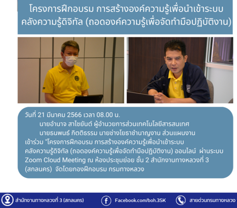 โครงการฝึกอบรมการสร้างองค์ความรู้เพื่อนำเข้าระบบคลังความรู้ดิจิทัล (ถอดองค์ความรู้เพื่อจัดทำมือปฎิบัติงาน)