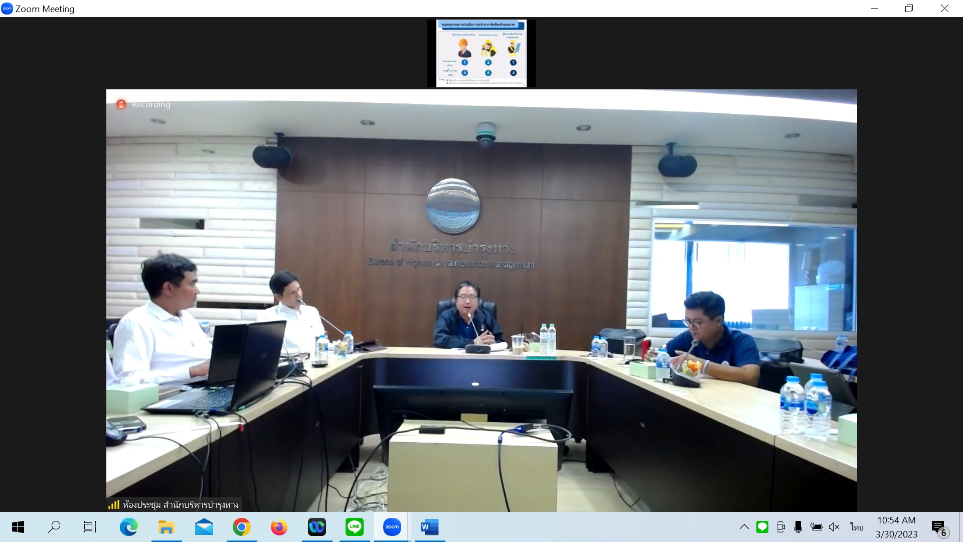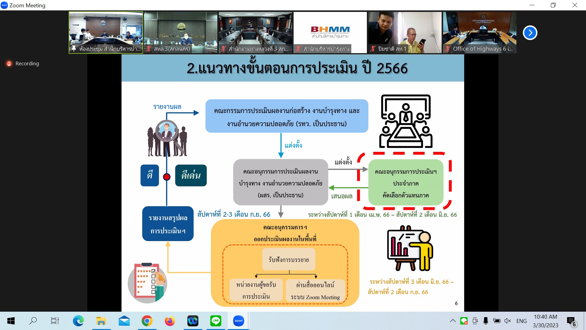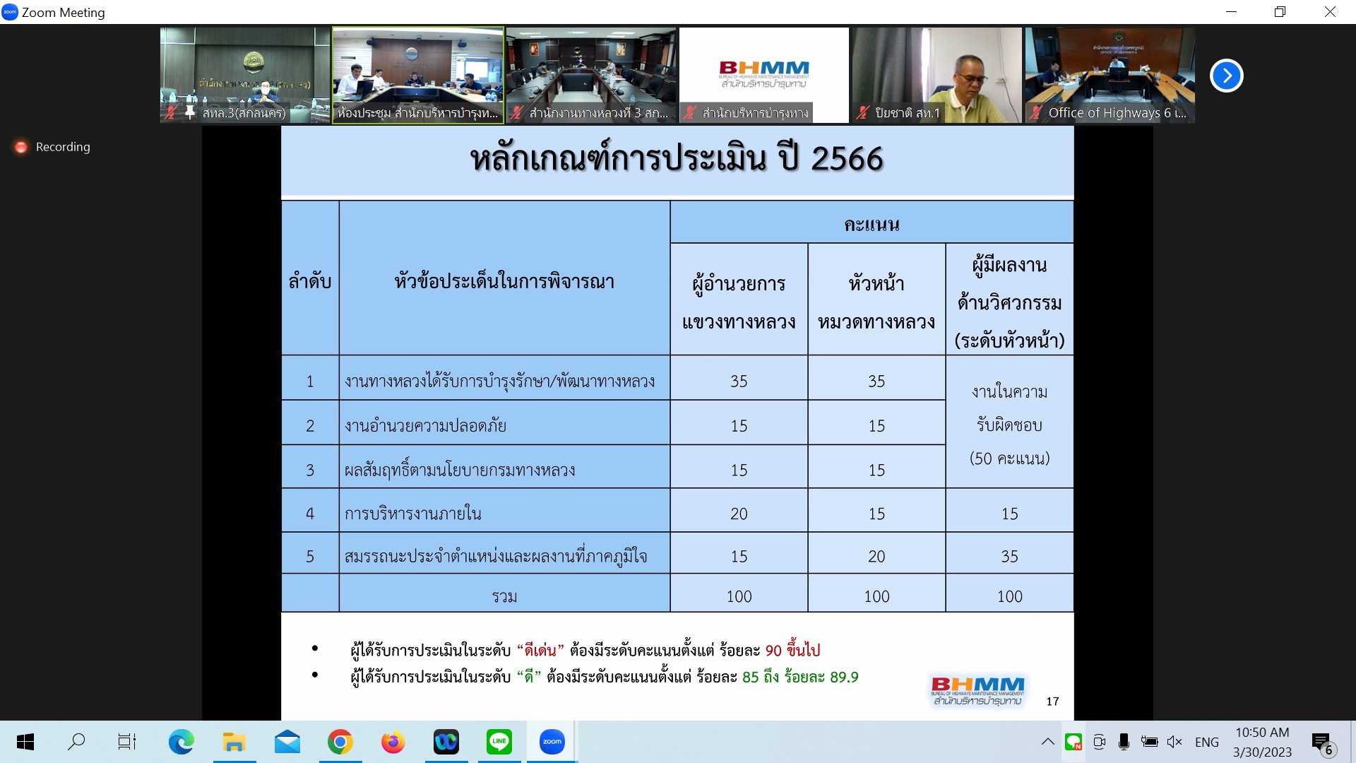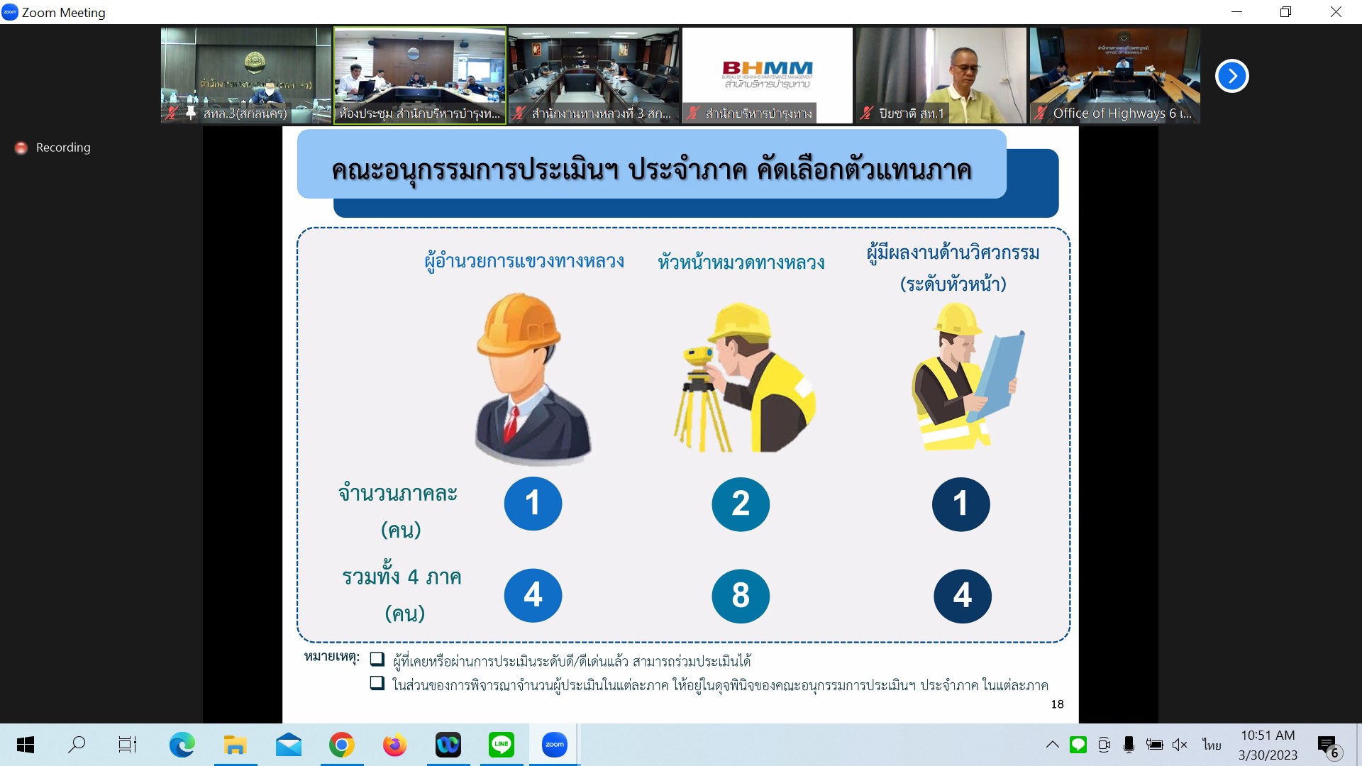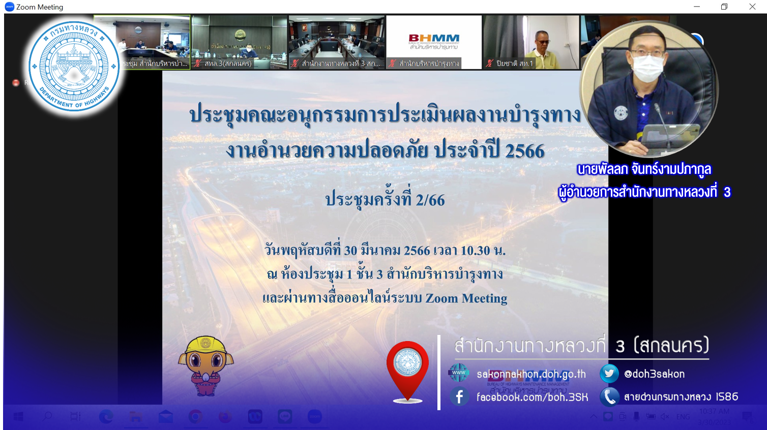 ในการประชุมครั้งนี้มีหน่วยงานสังกัดกรมทางหลวง ทั้ง 18 สำนักงานทางหลวง เข้าร่วมประชุมพร้อมกันโดยผ่านระบบ Zoom Cloud Meeting ของกรมทางหลวง