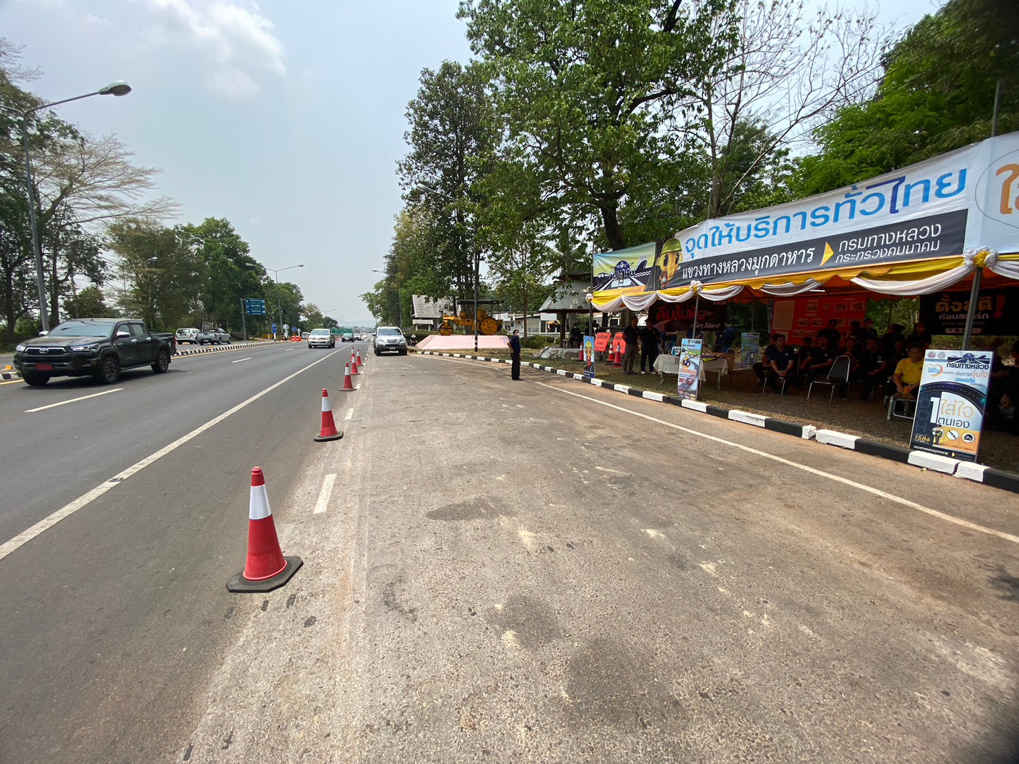 วันที่12 เมษายน 2566 นายพัลลภ จันทร์งามปภากูล ผู้อำนวยการสำนักงานทางหลวงที่ 3 พร้อมด้วยนายพัฒนา ไตรโยธี ผู้อำนวยการส่วนอำนวยความปลอดภัย ลงพื้นที่ตรวจเยี่ยมศูนย์อำนวยความและปลอดภัยช่วงเทศกาลเทศกาลสงกรานต์ปี 2566 ณ จุดบริการประชาชน ของแขวงทางหลวงมุกดาหาร จังหวัดมุกดาหาร นายพัลลภ จันทร์งามปภากูล ผู้อำนวยการสำนักงานทางหลวงที่ 3 ได้กล่าวเน้นย้ำให้ช่วยกันดูแลสร้างการรับรู้ประชาชนผู้ใช้รถใช้ถนนปฏิบัติตามวินัยจราจรอย่างเคร่งครัด เพื่อความปลอดภัยของทุกคน และมอบสิ่งของให้เจ้าหน้าเพื่อเป็นขวัญและกำลังใจให้เจ้าหน้าที่ในการปฏิบัติหน้าที่ประจำศูนย์ฯ ซึ่งศูนย์อำนวยความสะดวกและปลอดภัยในการเดินทางของประชาชนช่วงเทศกาลปีใหม่ 2566 ของกรมทางหลวงกำหนดให้มีระหว่างวันที่ 12 – 18 เมษายน 2566 (7 วันอันตราย)