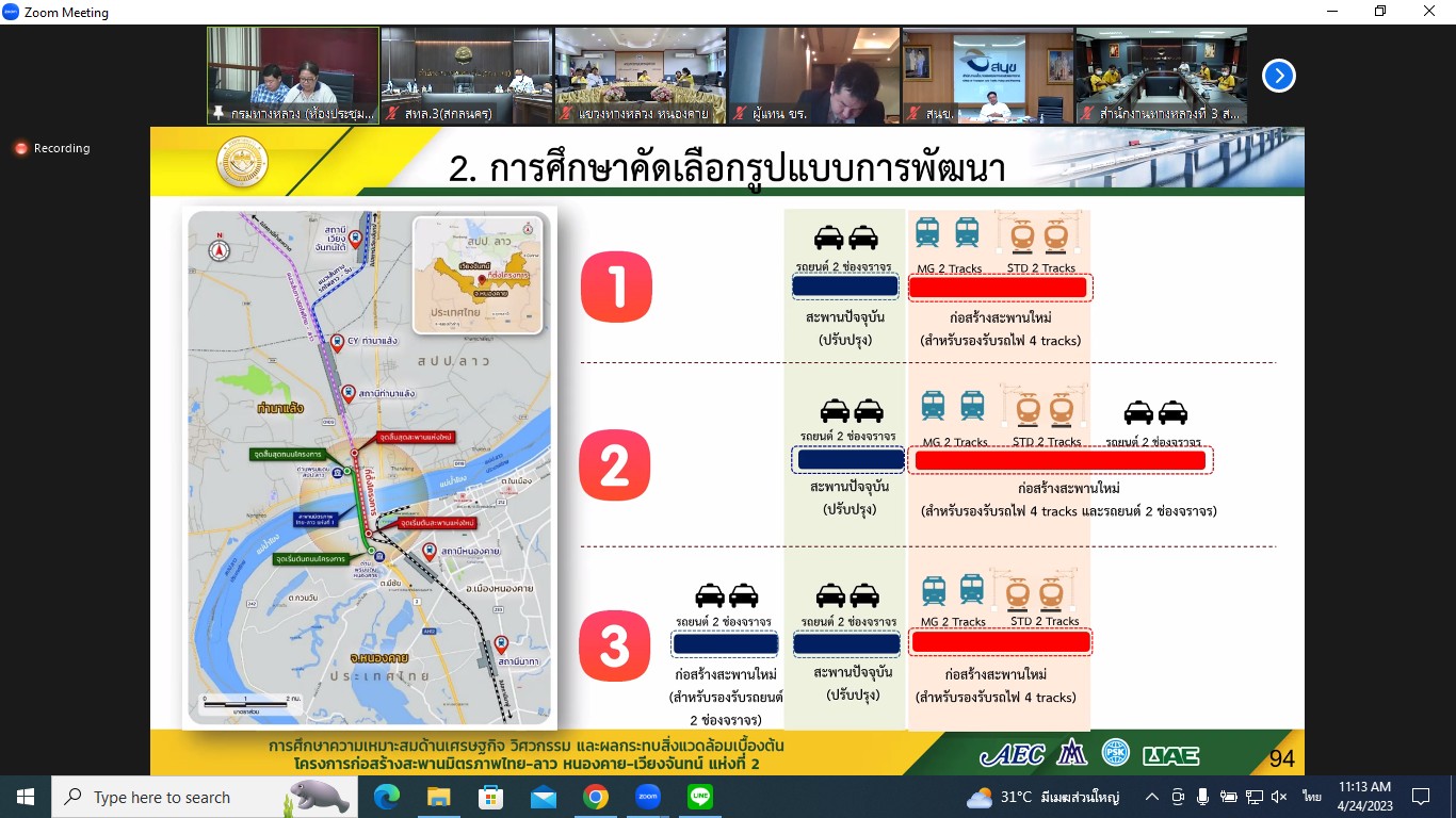 นายปิยพงษ์ จิวัฒนกุลไพศาล รองอธิบดีกรมทางหลวง ฝ่ายบริหารเป็นประธาน ประชุมพิจารณารายงานความก้าวหน้าฉบับที่ 2 (Progress Report 2) การศึกษาความเหมาะสมด้านเศรษฐกิจ วิศวกรรม และผลกระทบสิ่งแวดล้อมเบื้องต้น โครงการก่อสร้างสะพานมิตรภาพไทย-ลาว(หนองคาย-เวียงจันทน์ แห่งที่ 2 ผ่านระบบ Zoom Cloud Meetingจากห้องประชุมสวัสดิ์วรวิถี ชั้น2 อาคารพหลโยธิน กรมทางหลวง
